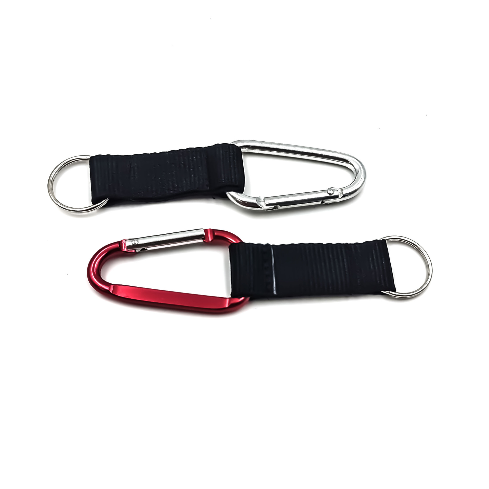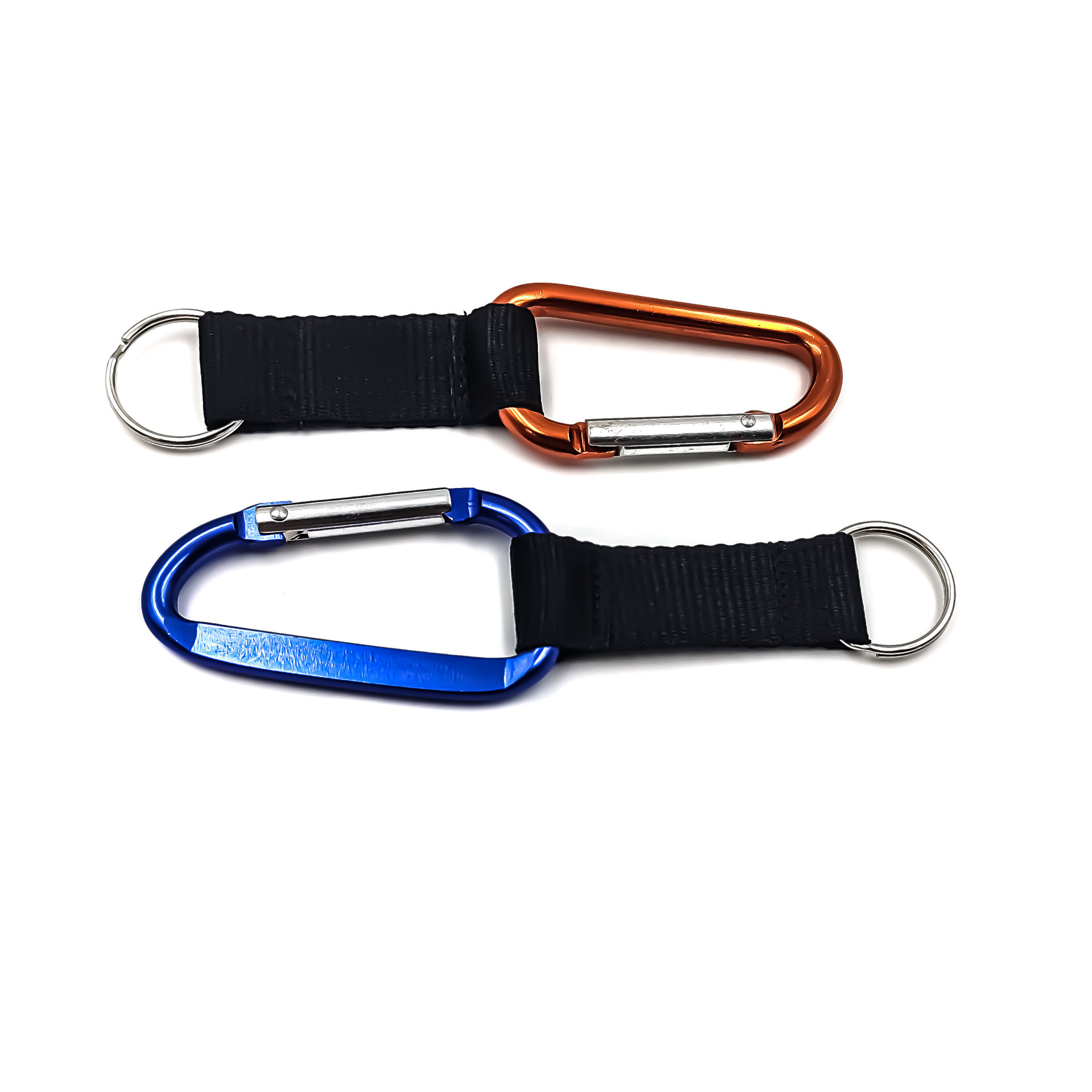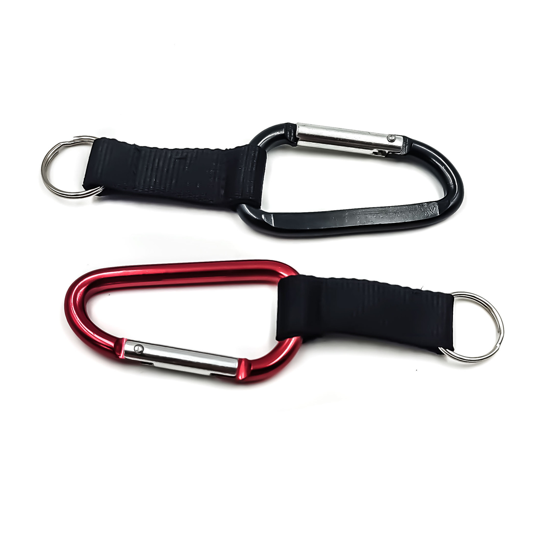 다양한 색상의 워터컵 걸이 버클이 있는 웨빙이 있는 D형 플랫 알루미늄 합금 카라비너 ​​5, 6, 7, 8개 재고 있음