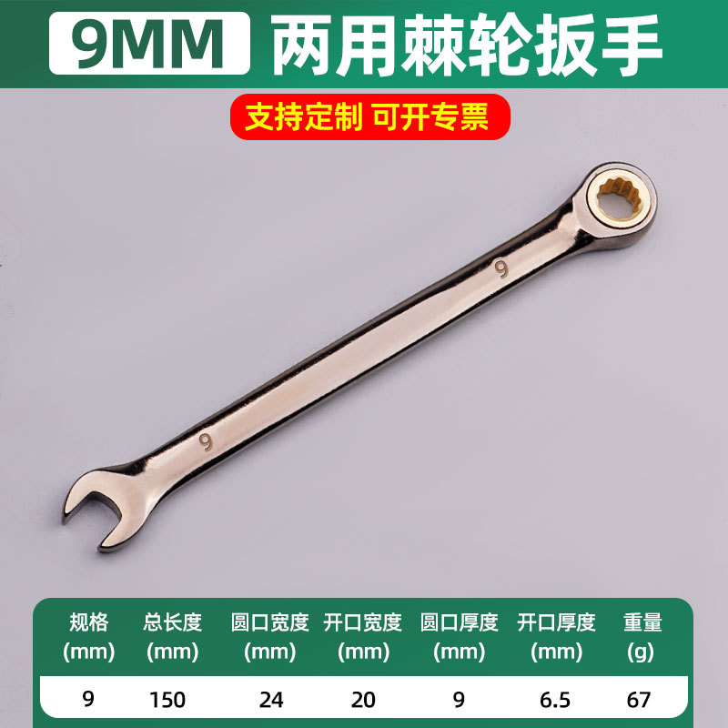 • 1066, 검정색 니켈 이중 목적 래칫 렌치 9mm, 0.07kg