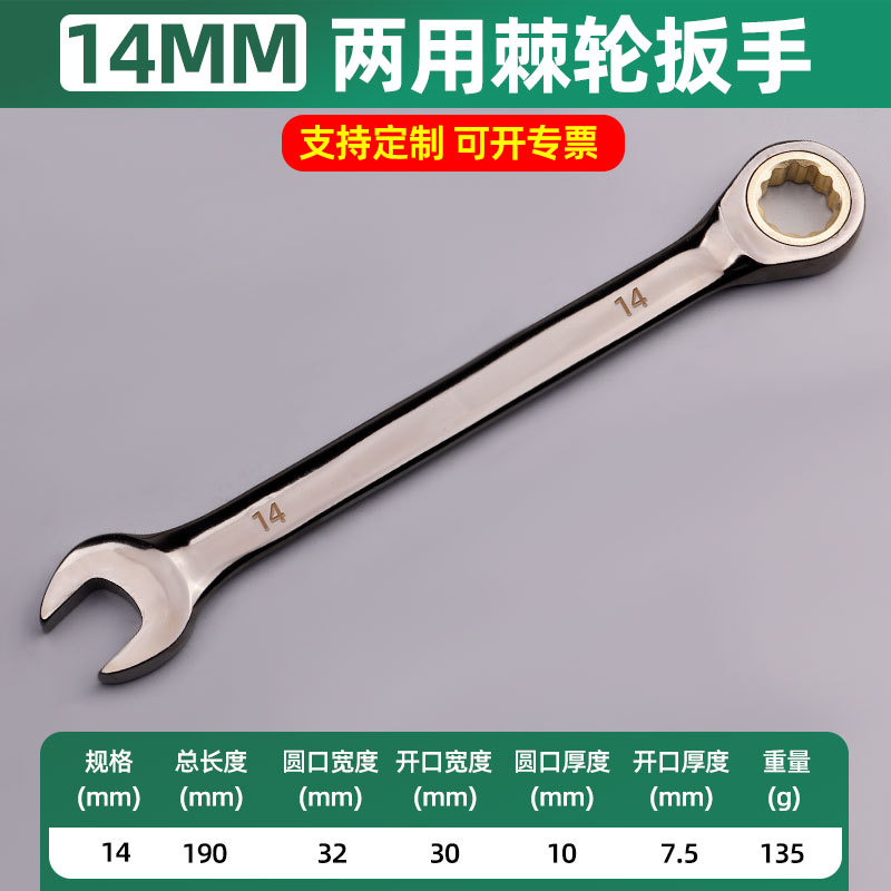 • 1071, 검정색 니켈 이중 목적 래칫 렌치 14mm, 0.14kg
