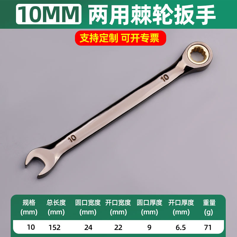 • 1067, 검정색 니켈 이중 목적 래칫 렌치 10mm, 0.07kg