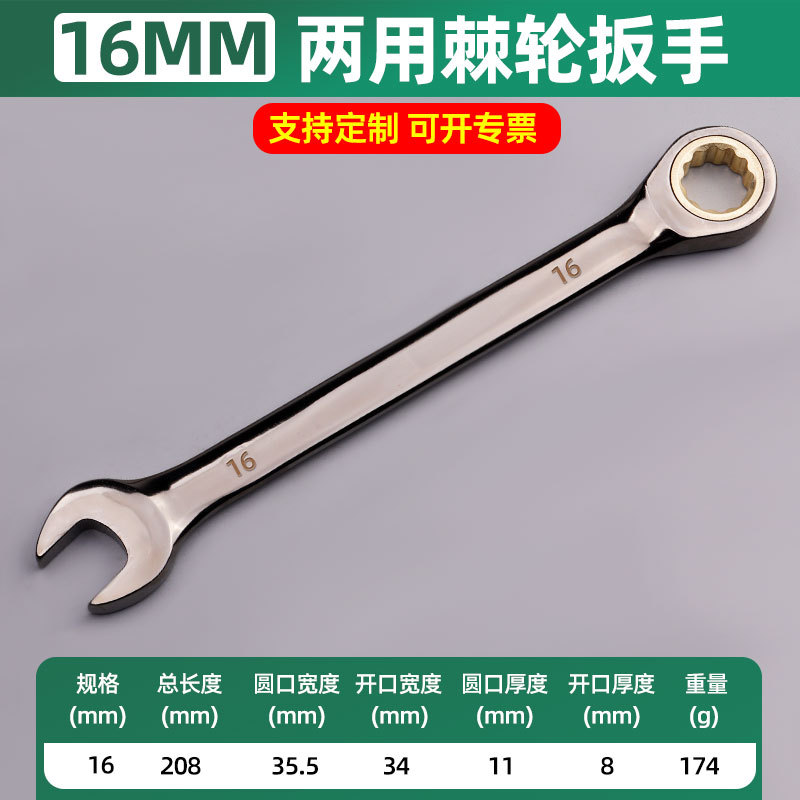• 1073, 검정색 니켈 이중 목적 래칫 렌치 16mm, 0.17kg
