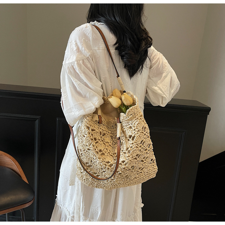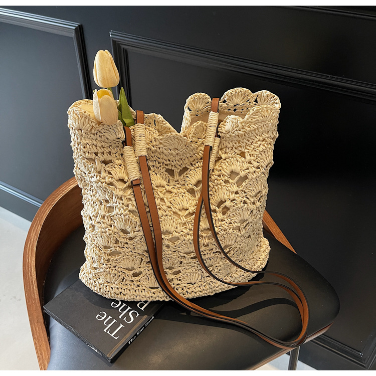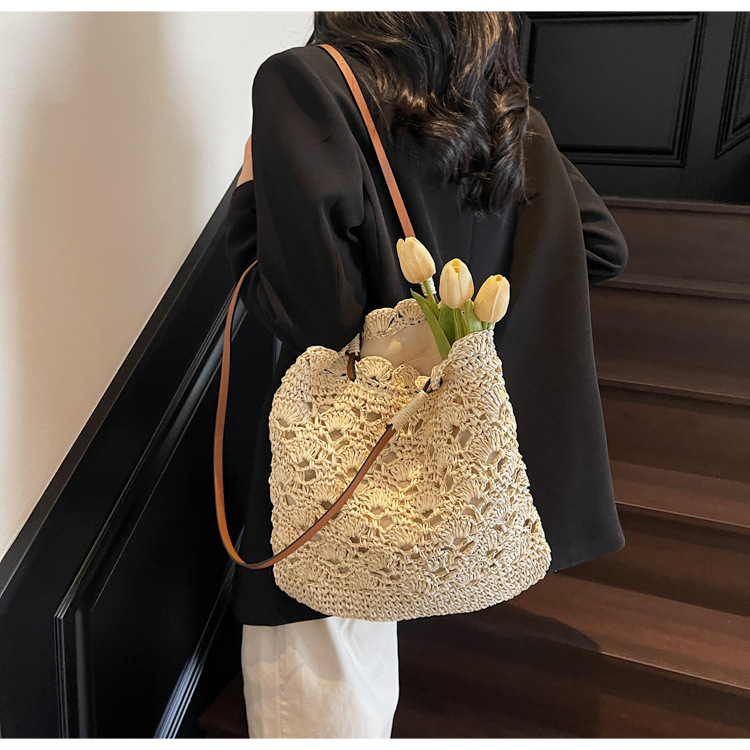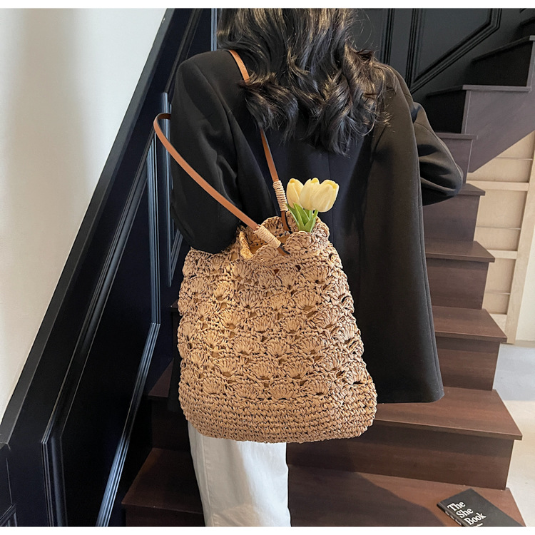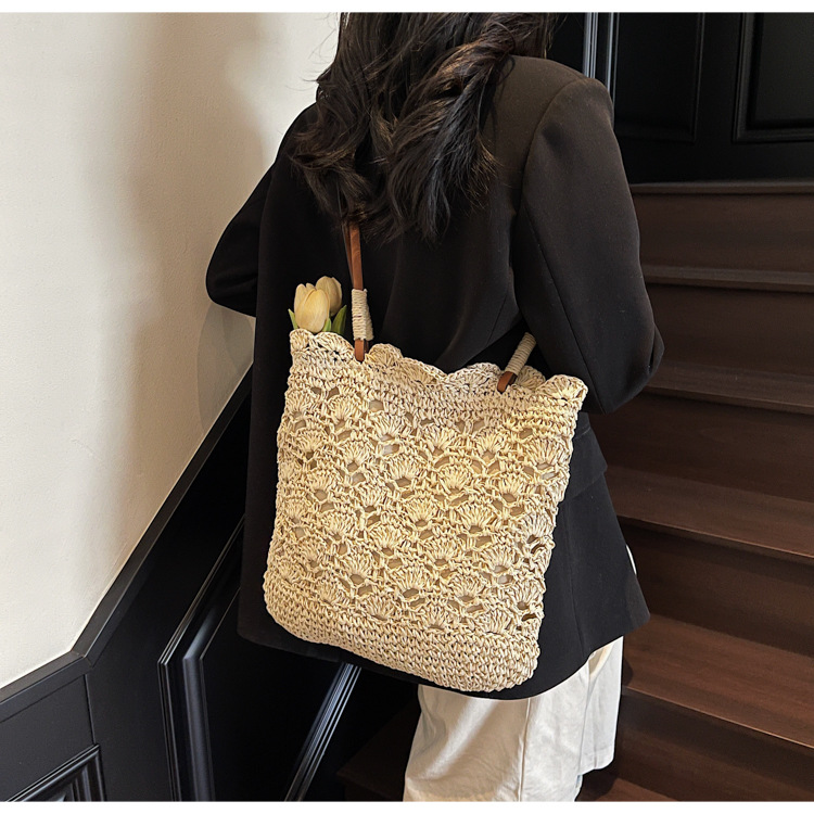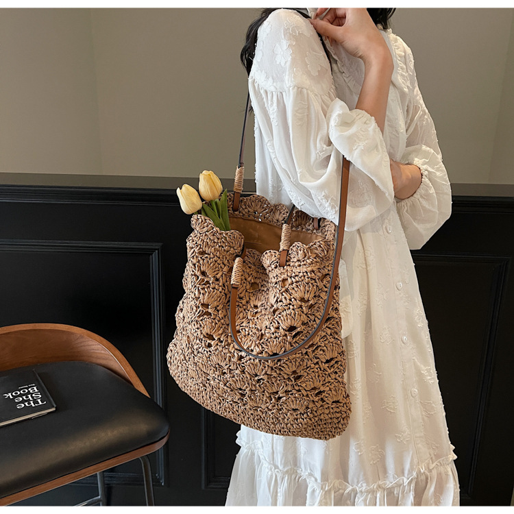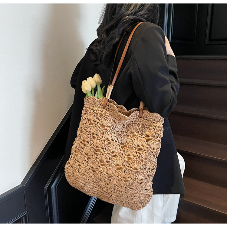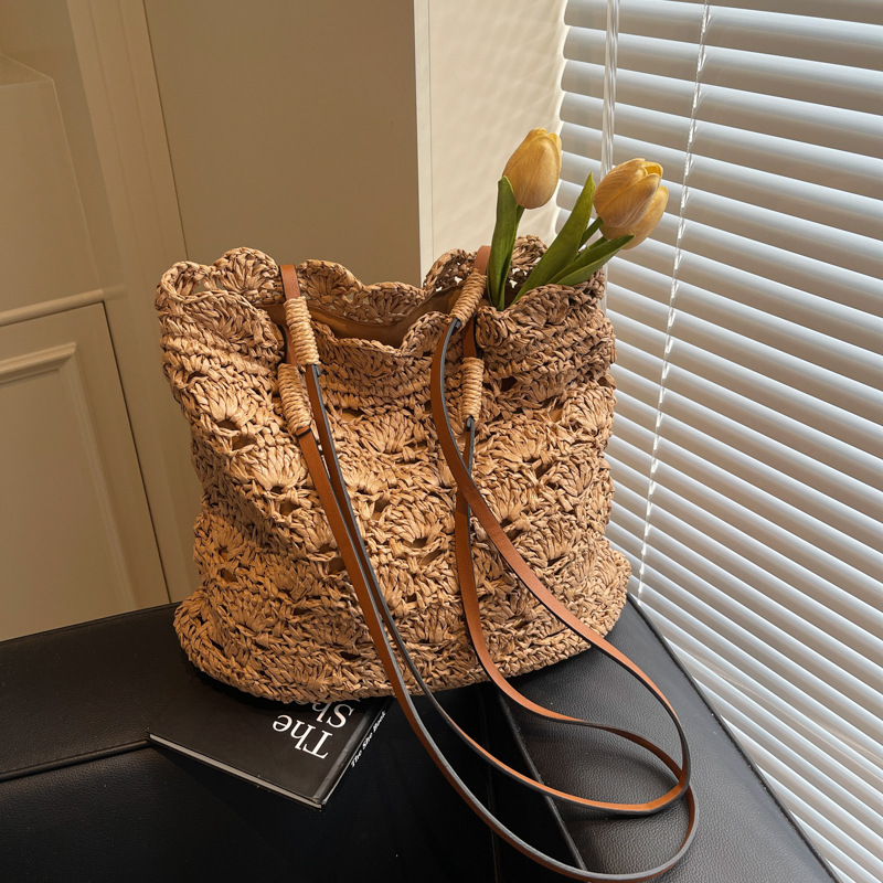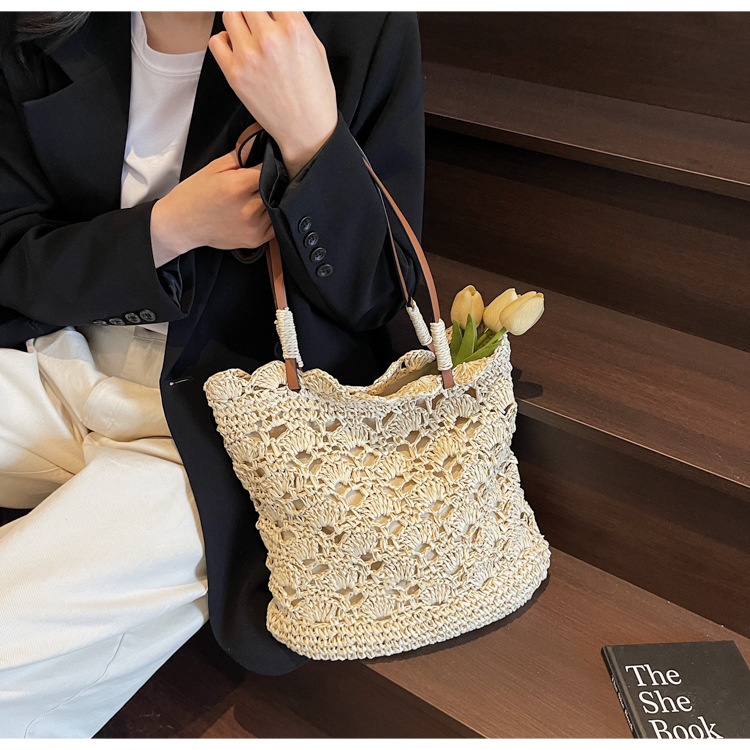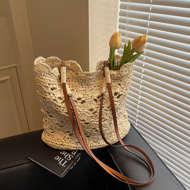 2025 새로운 모리 크로 셰 뜨개질 어깨 짠 가방 여성 예술 청소년 핸드백 해변 해변 가방