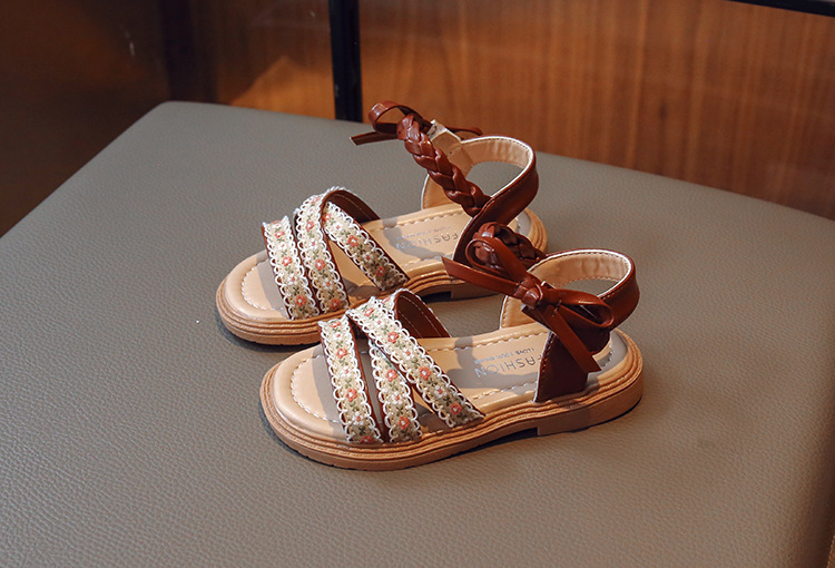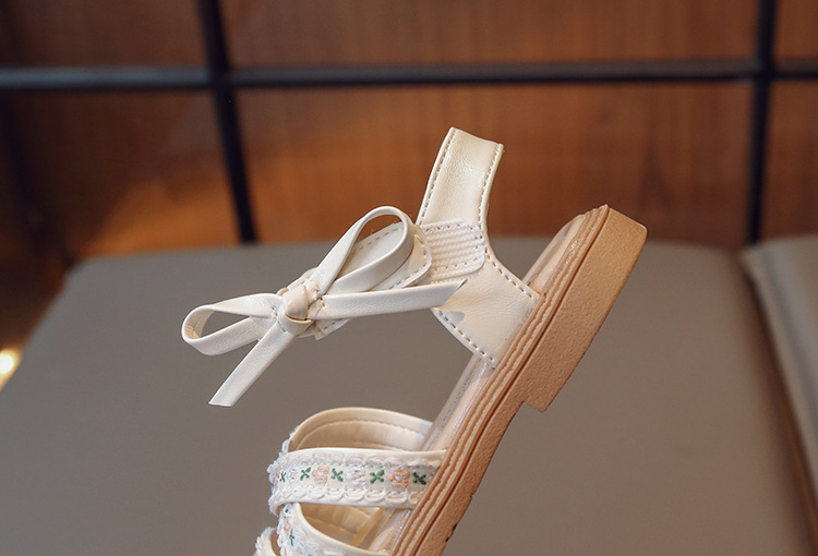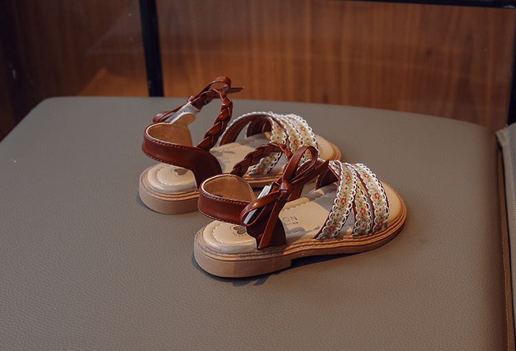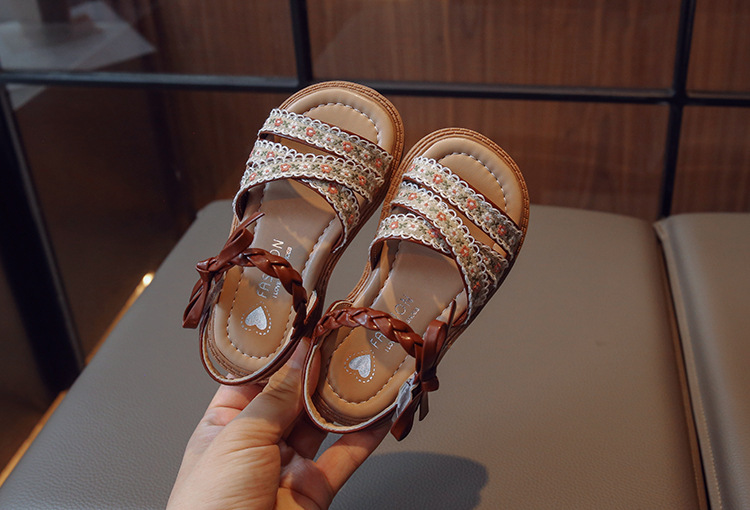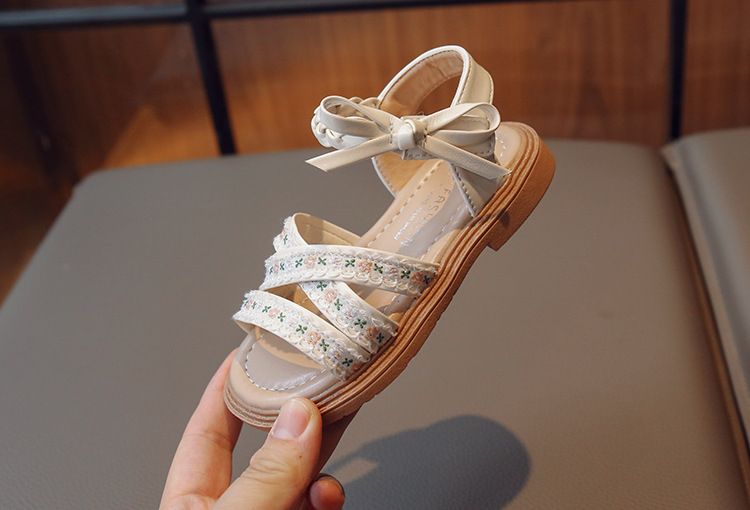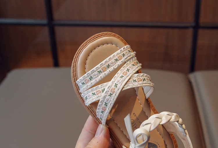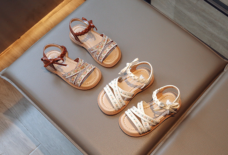 어린이 여름 2025 소년 소녀 샌들 소녀 어린이 신발 7-12 공주 신발 한국 스타일 활 쇠고기 편평한 바닥