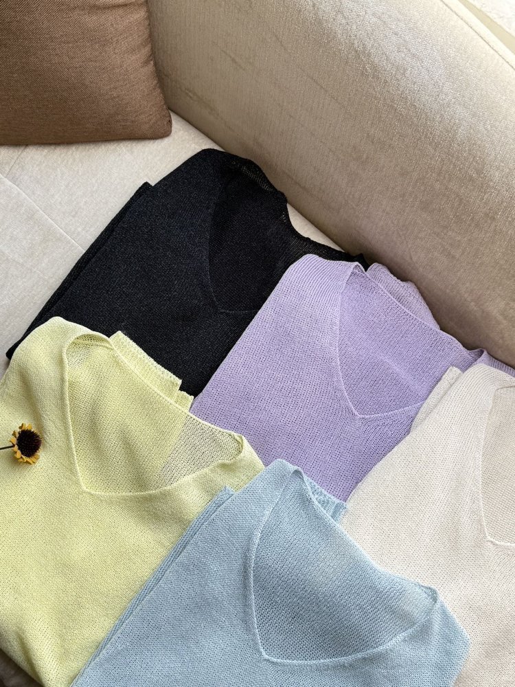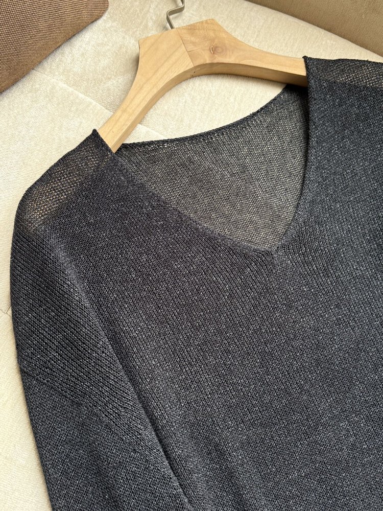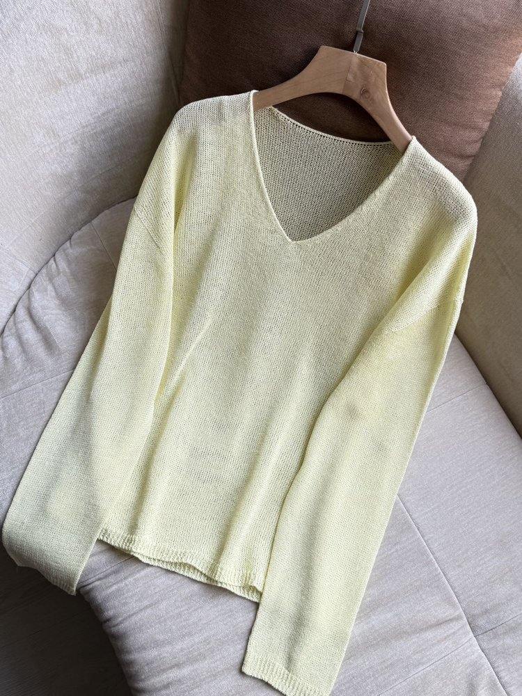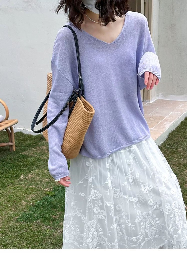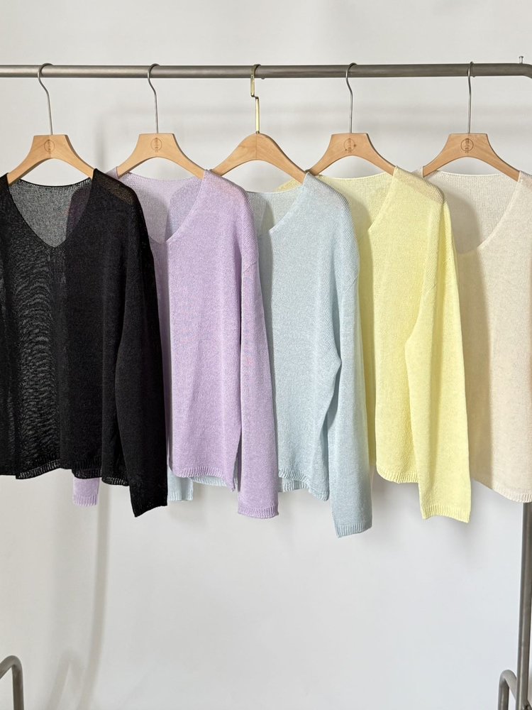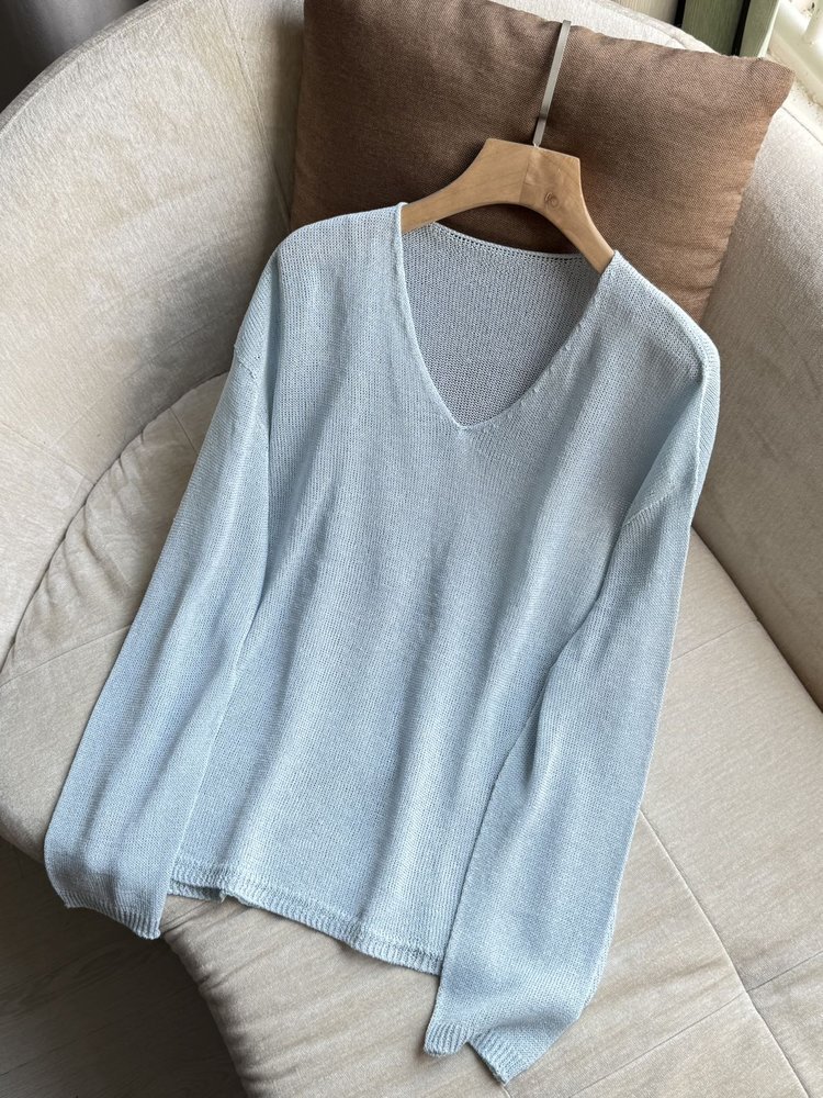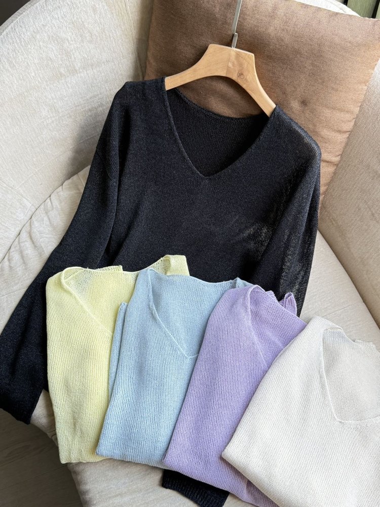 섬 진쿠와 종이 원사 크루 넥 V 넥 스웨터 여성의 얇은 느슨한 스키니 선 스크린 블라우스 풀러베이스 셔츠스토어 가기