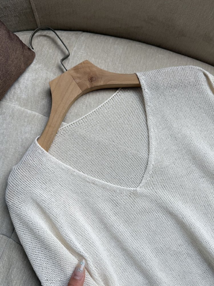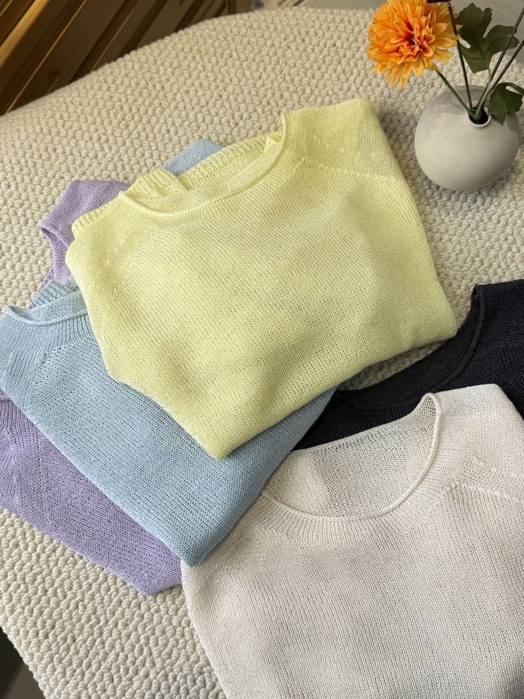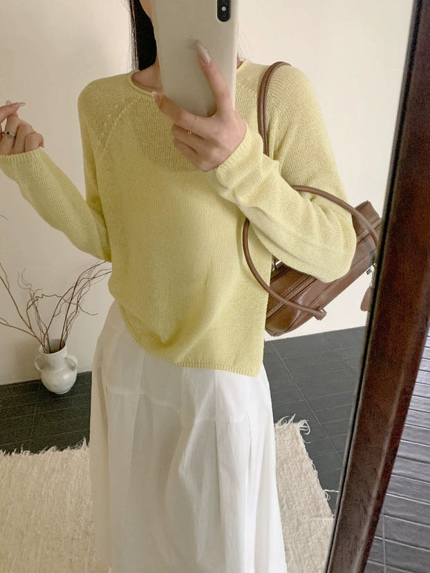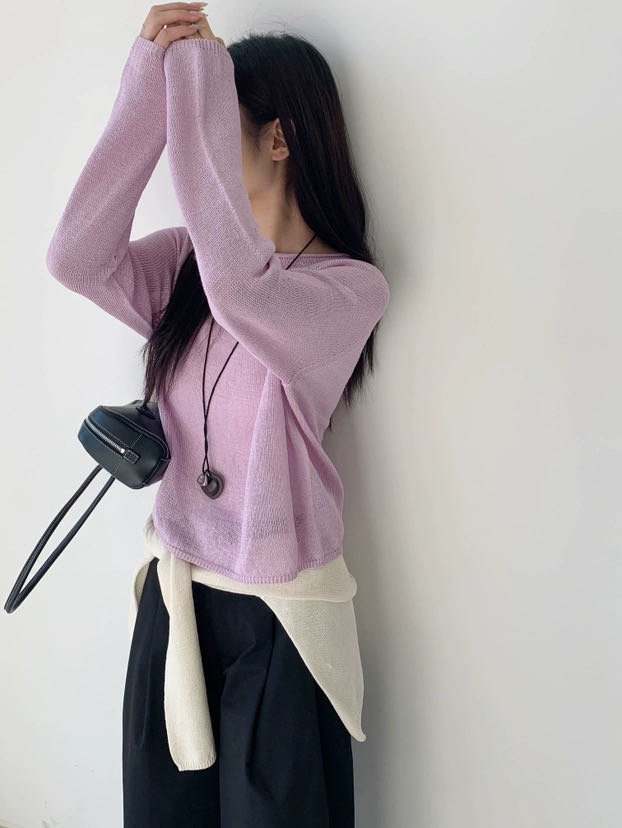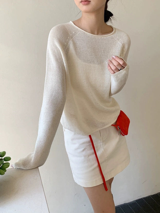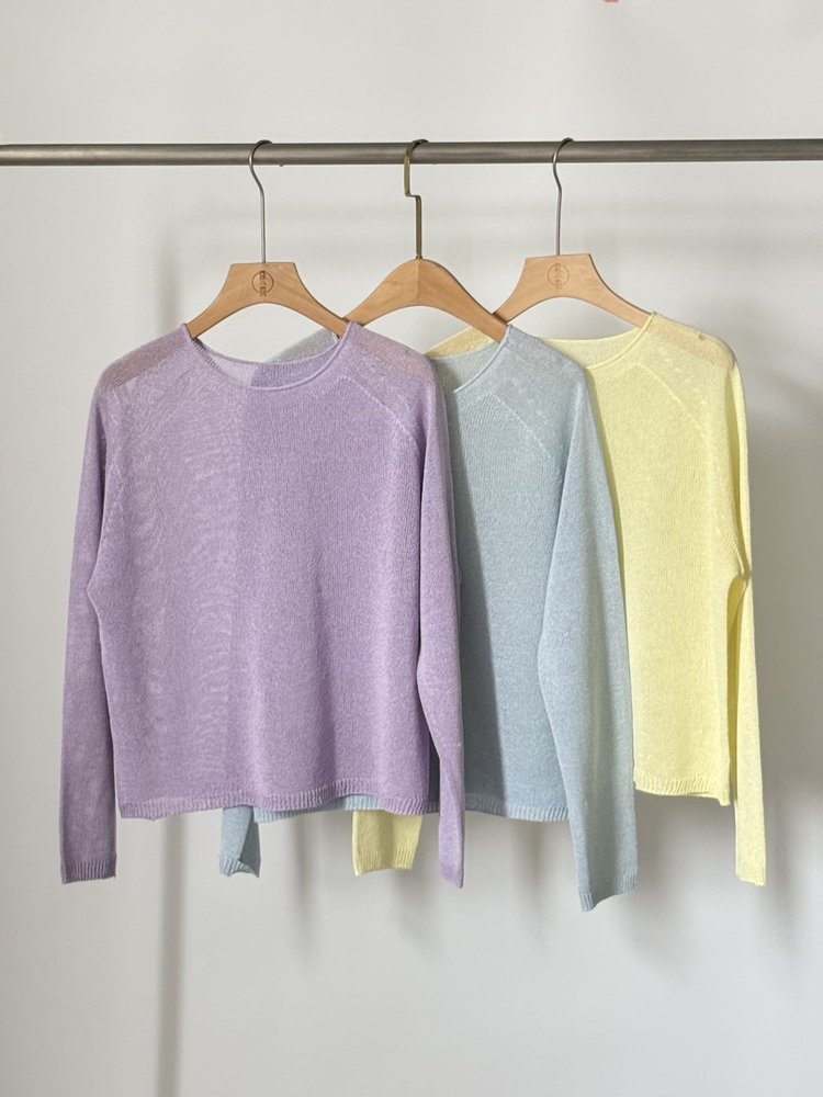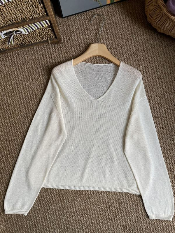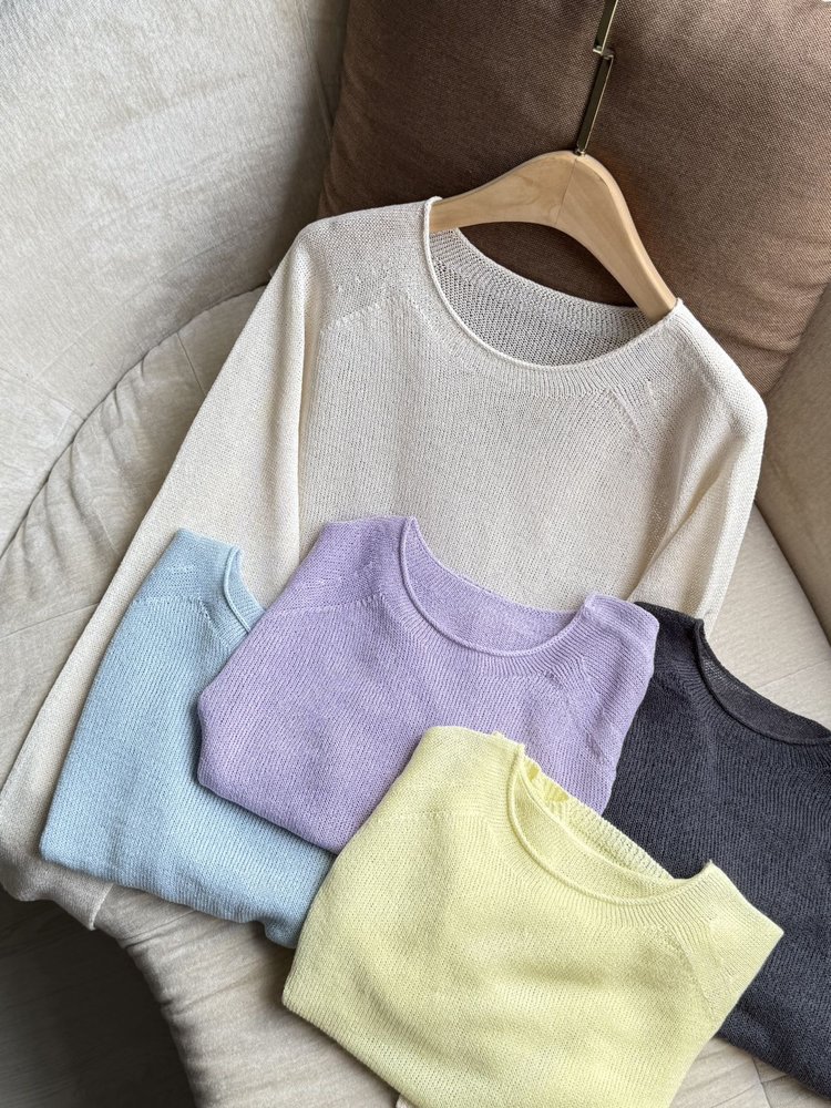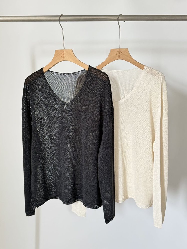섬 진쿠와 종이 원사 크루 넥 V 넥 스웨터 여성의 얇은 느슨한 스키니 선 스크린 블라우스 풀러베이스 셔츠스토어 가기