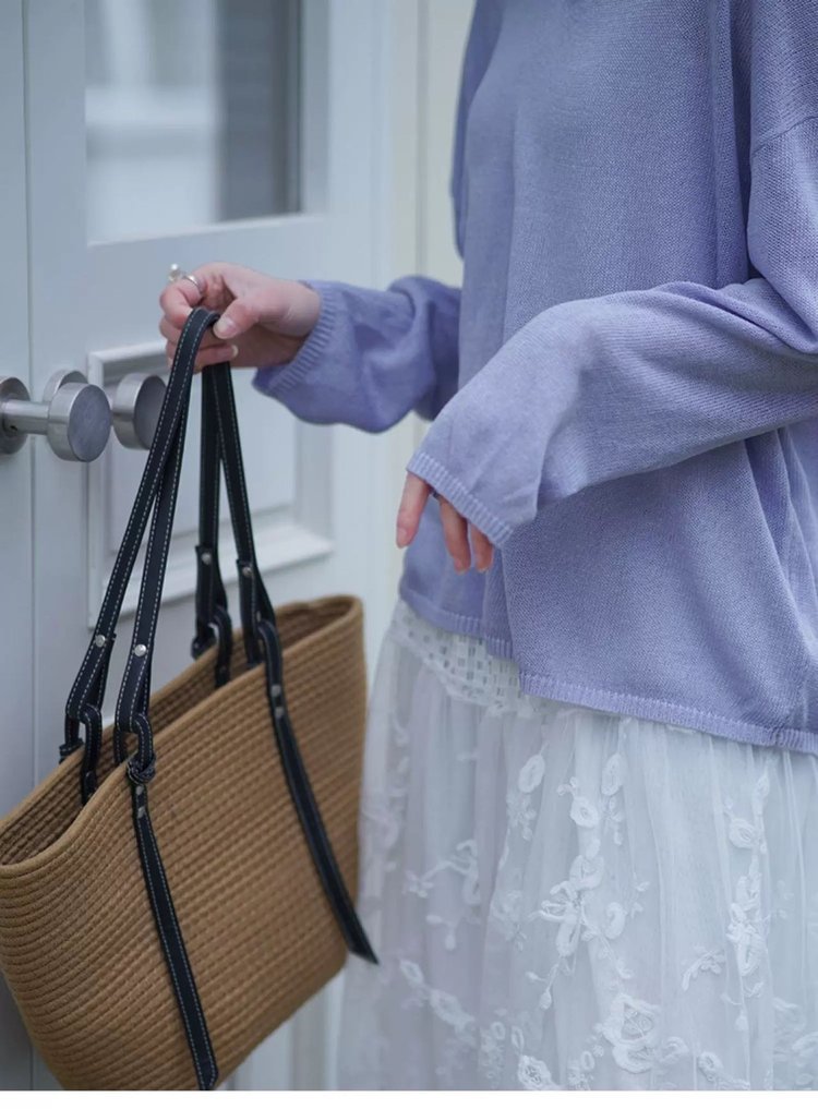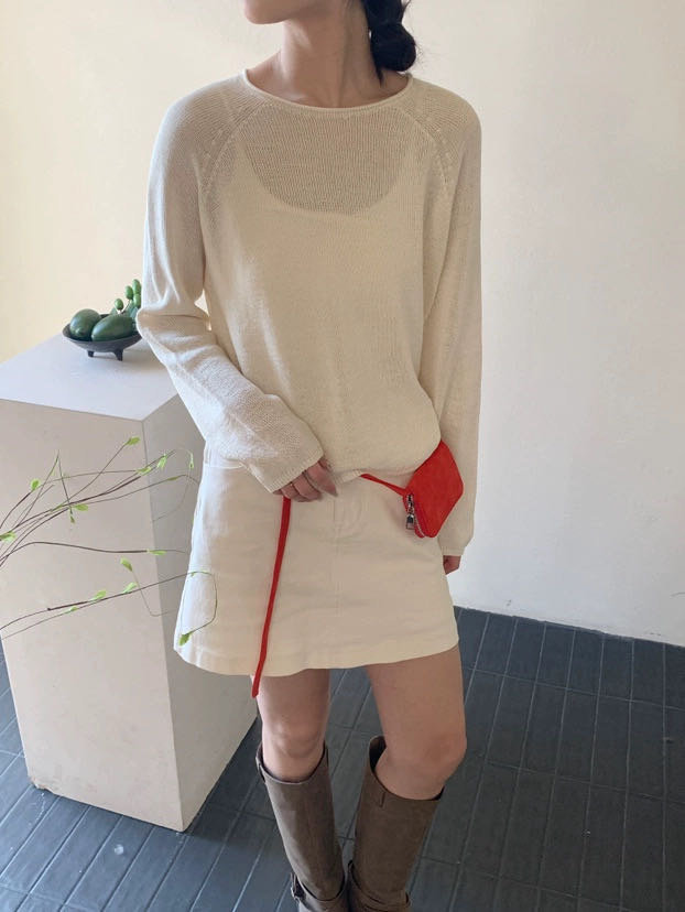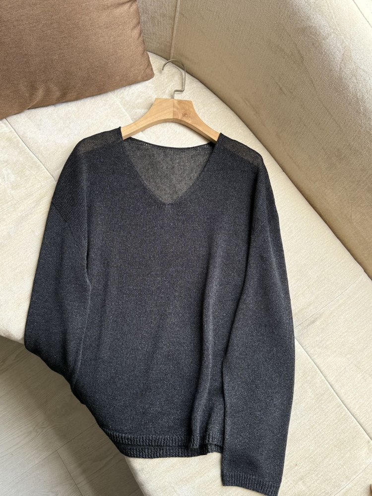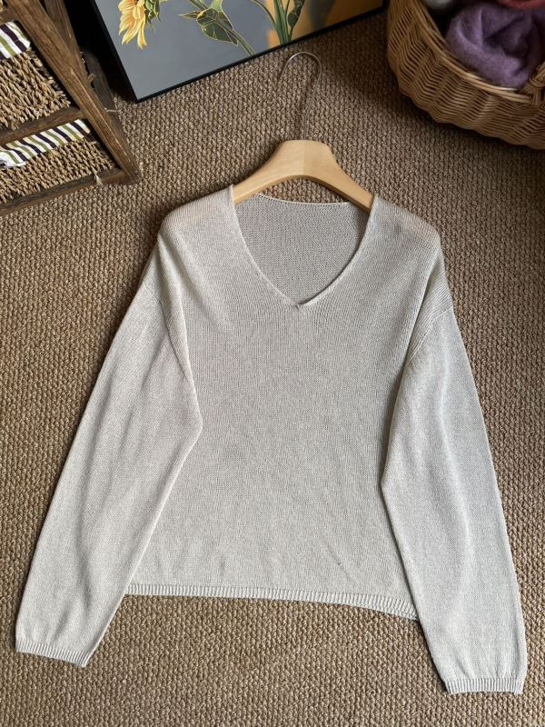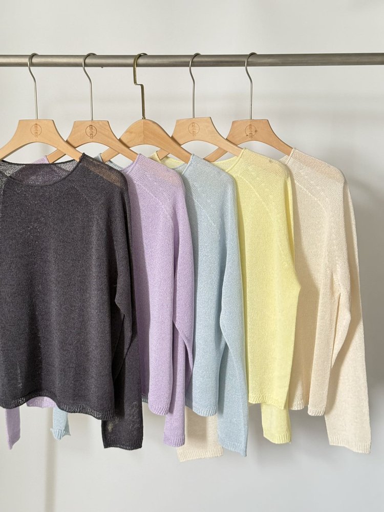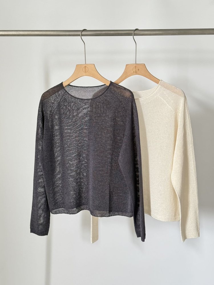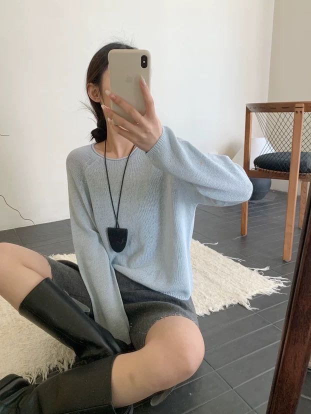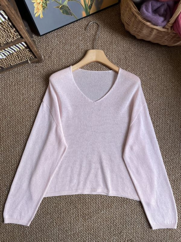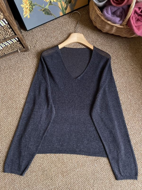 섬 진쿠와 종이 원사 크루 넥 V 넥 스웨터 여성의 얇은 느슨한 스키니 선 스크린 블라우스 풀러베이스 셔츠스토어 가기