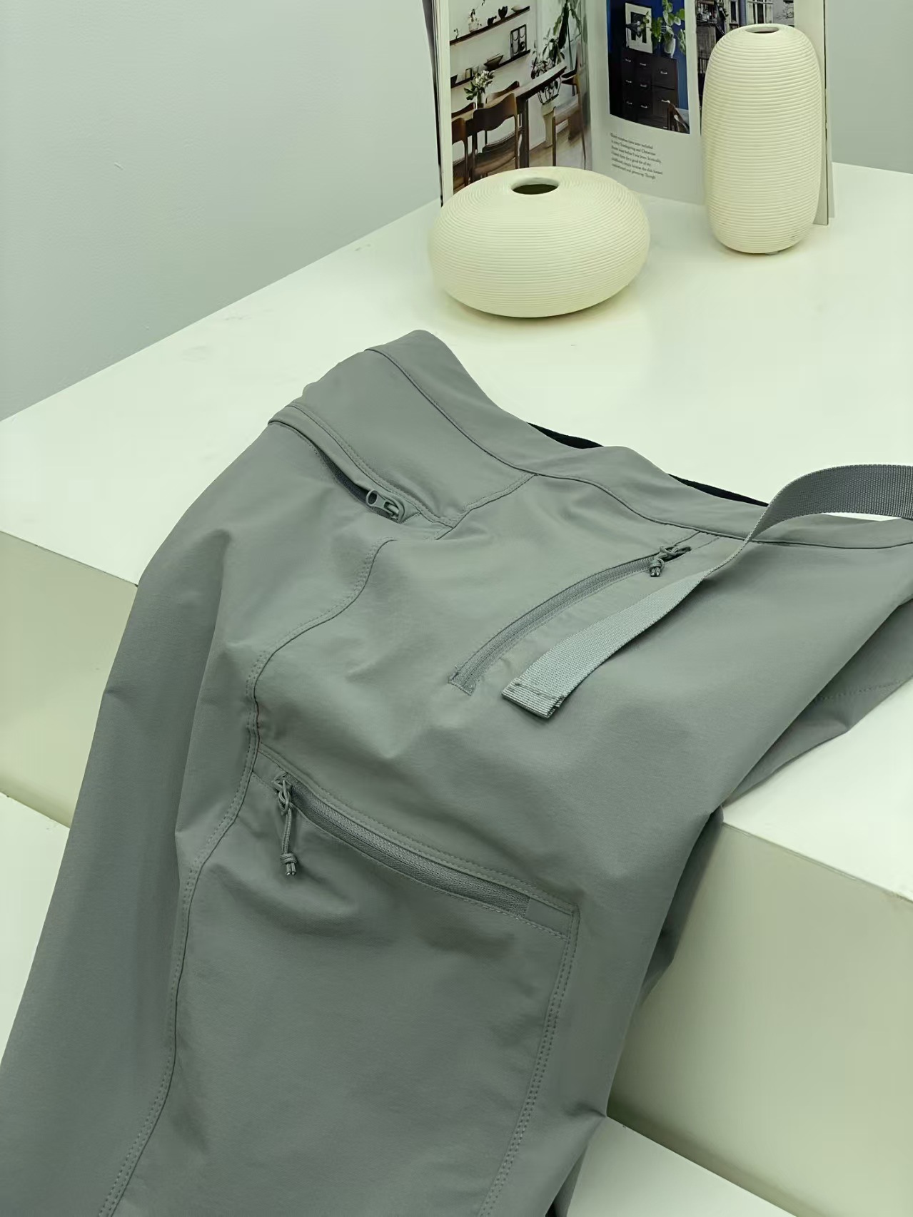 细节处理同样,立体裁剪贴合人体运动曲线,活动不受限;多口袋设计方便收纳小物件,拿取便捷。