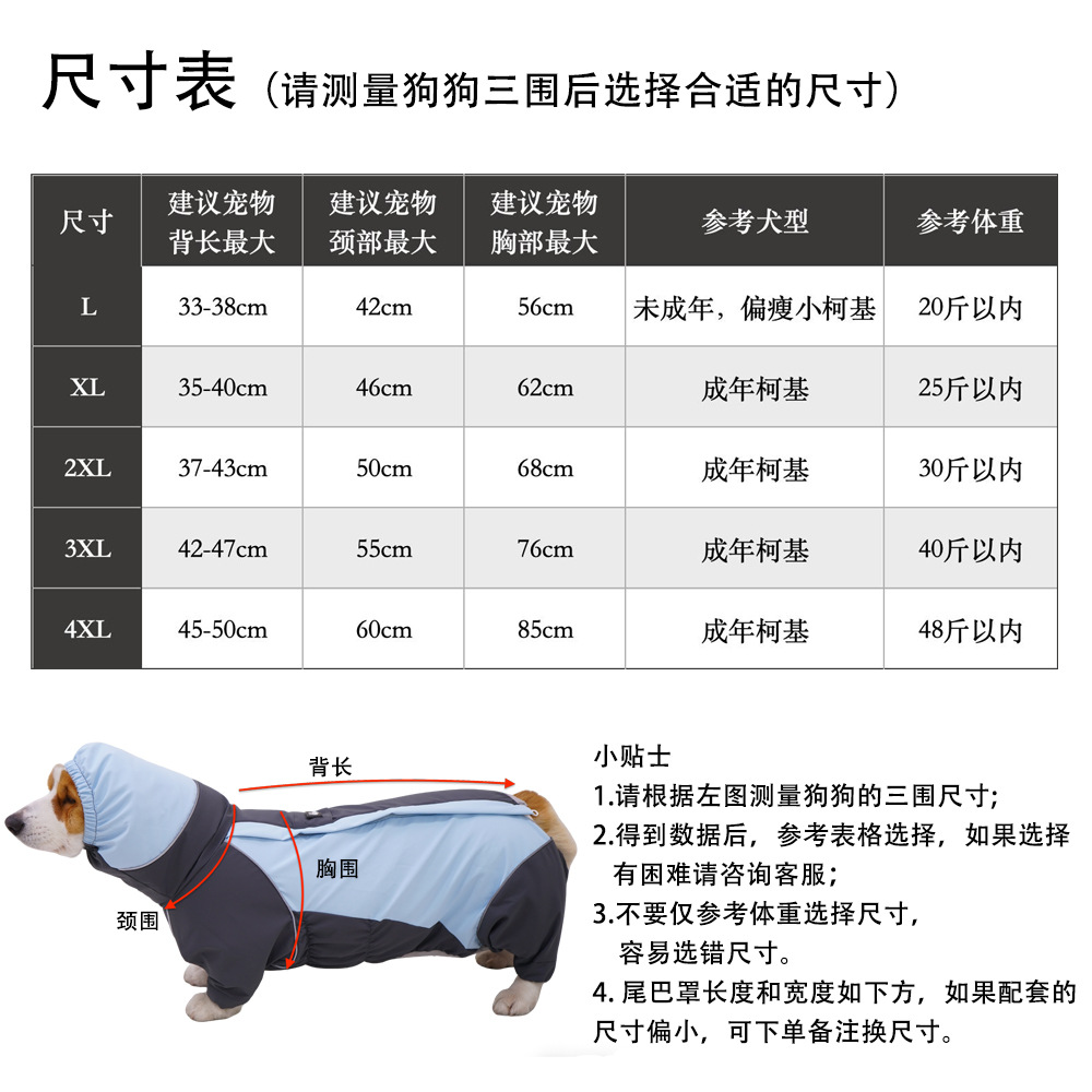 Chongta 견인 개 모든 것을 포함하는 비옷 Corgi 비옷 야외 반사 애완 동물 충전 옷 방풍 및 방수스토어 가기