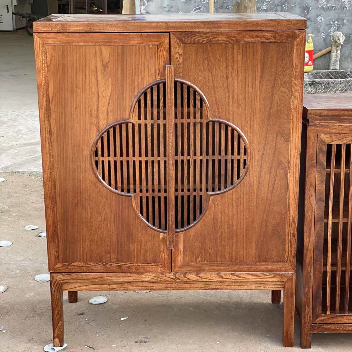 새로운 중국 스타일 찬장, 현관 캐비닛, 벽 캐비닛, 검은 호두 색상, 오래된 느릅나무 벽 캐비닛, 단순한 단단한 나무 캐비닛