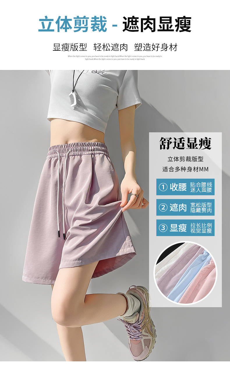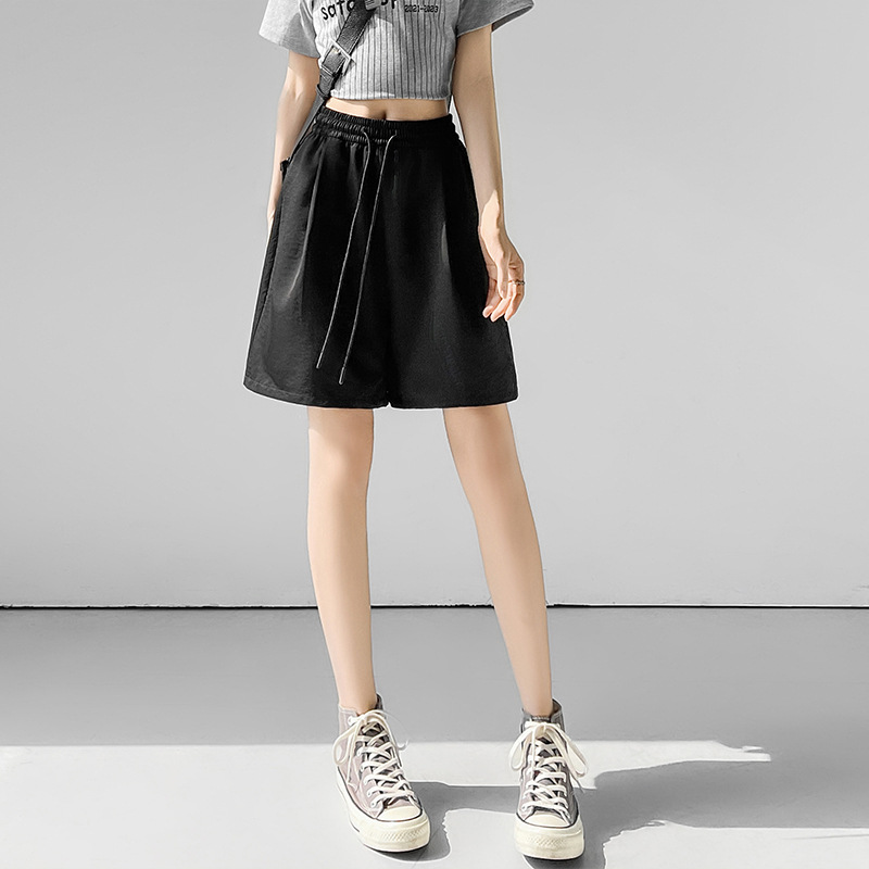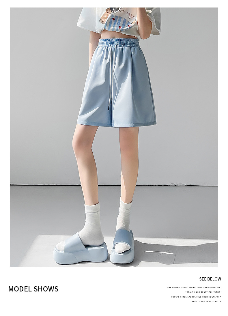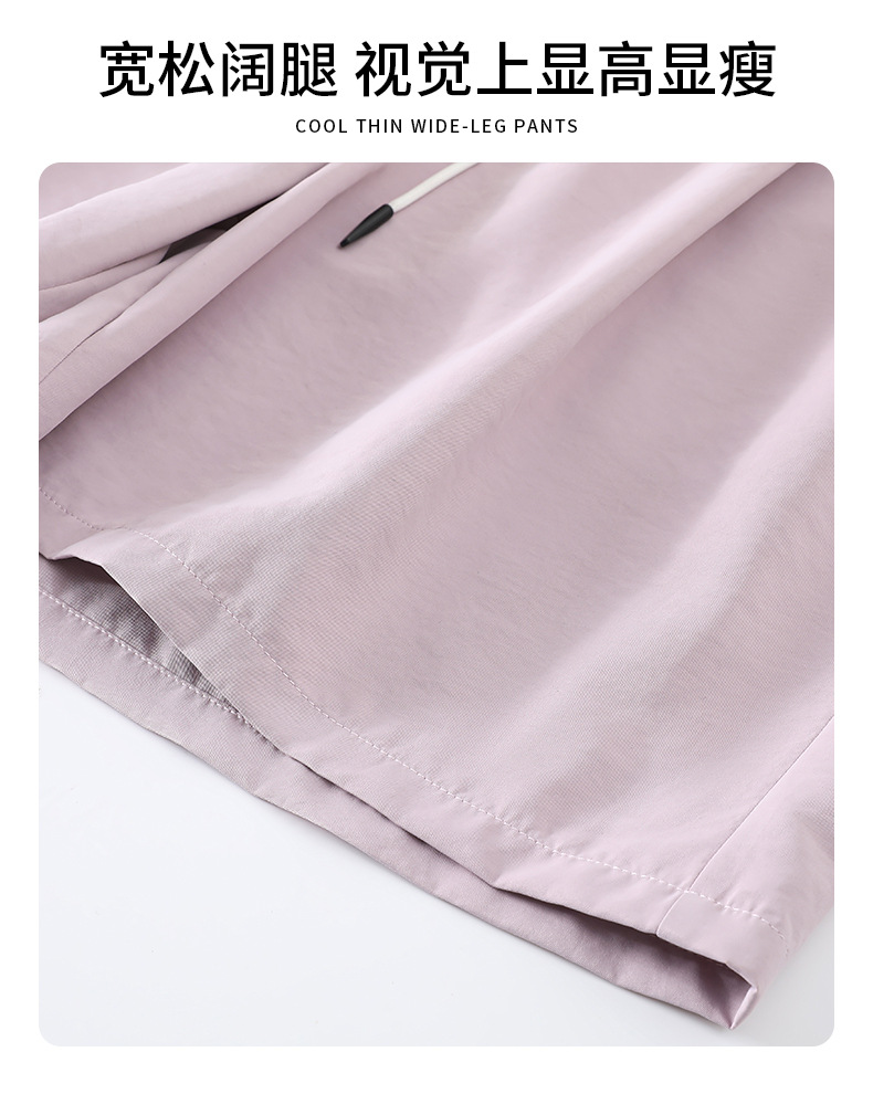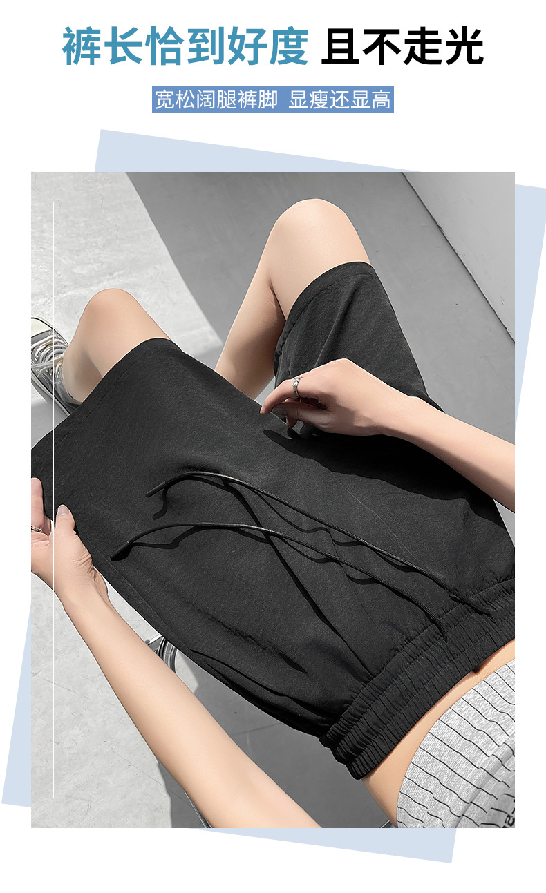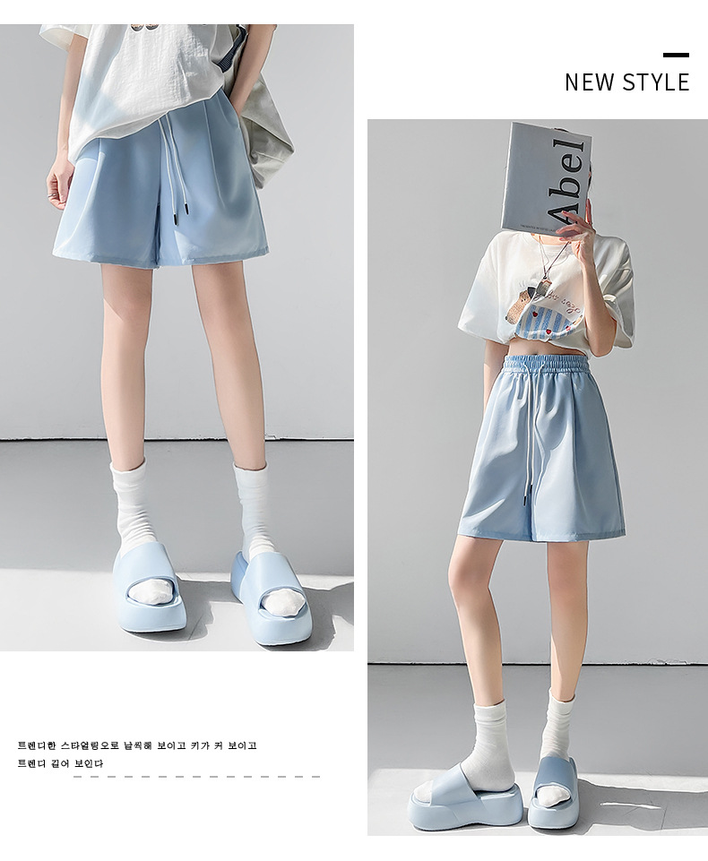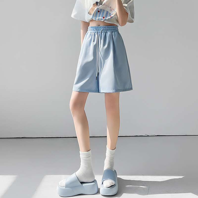 밀크 푸 아이스 실크 블루 반바지 여성 여름 얇은 2025 새로운 높은 허리 캐주얼 와이드 다리 바지 스포츠 야마모토 바지스토어 가기