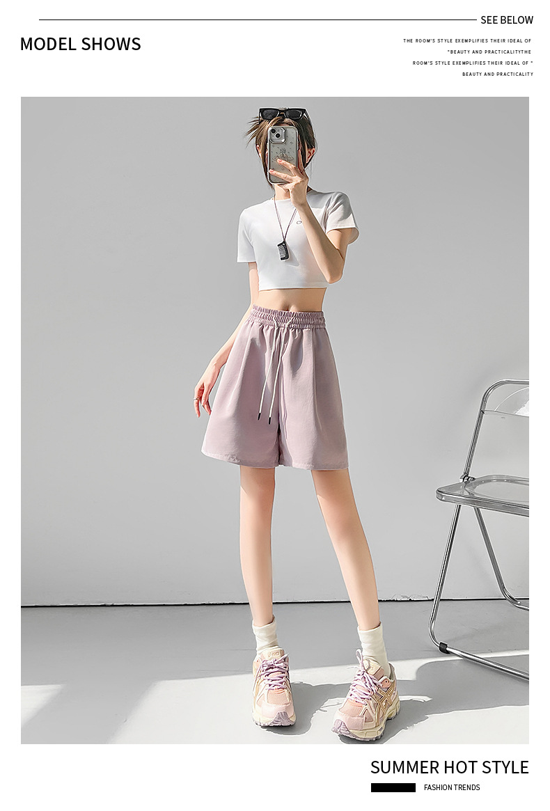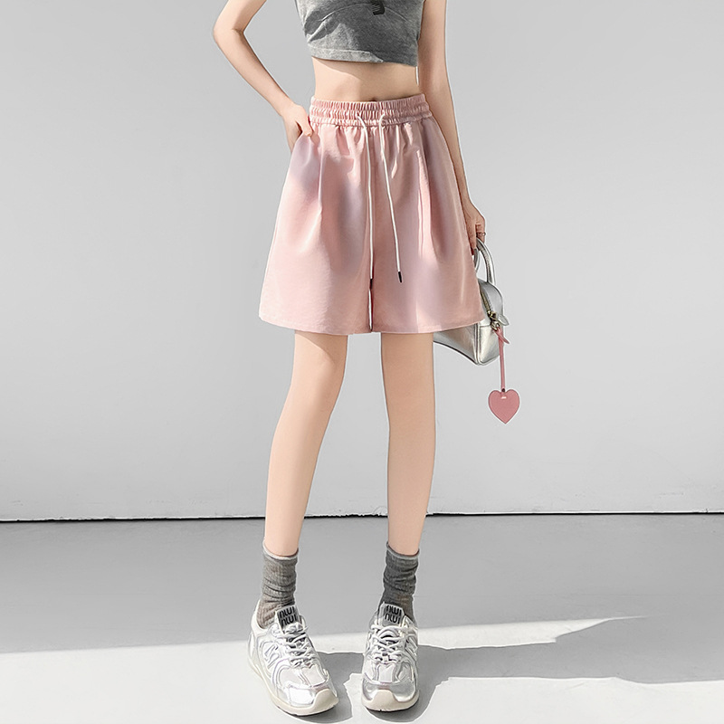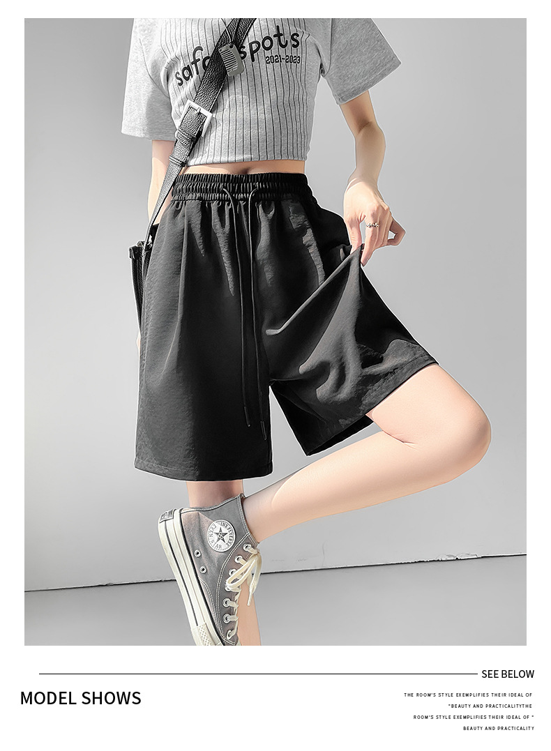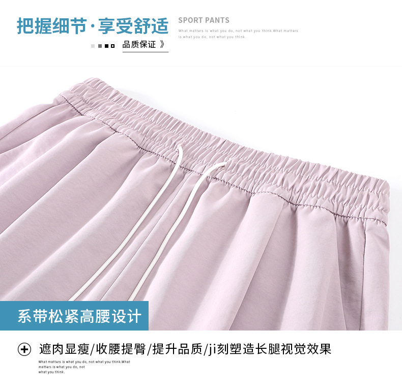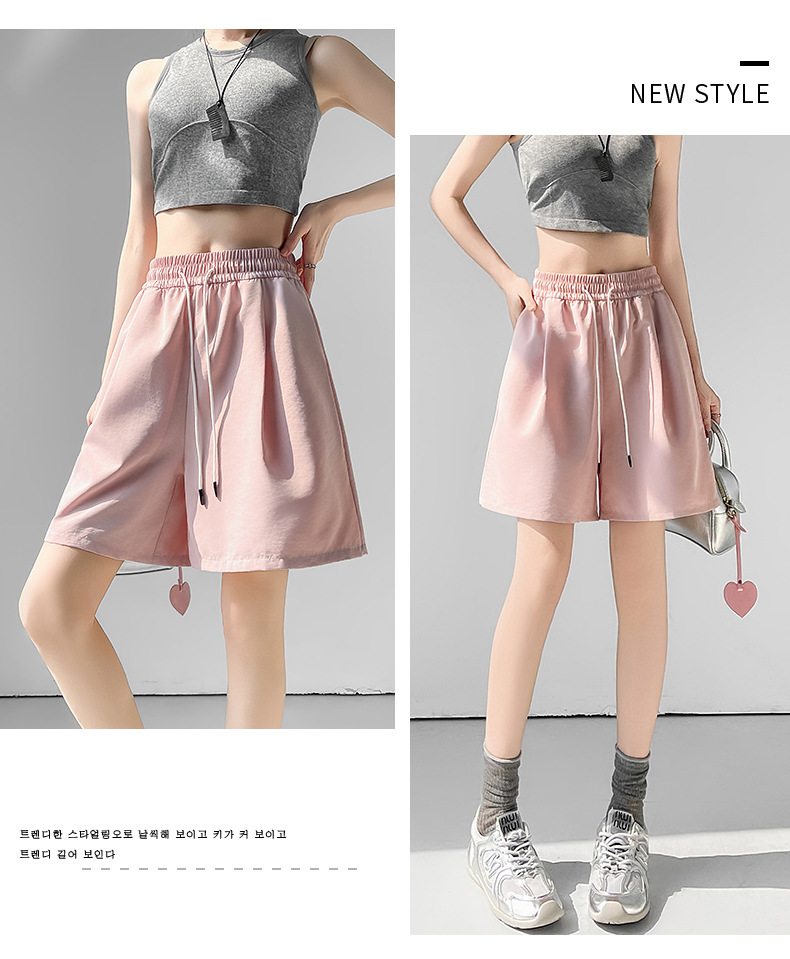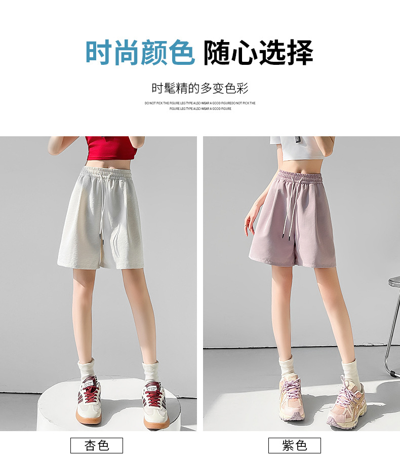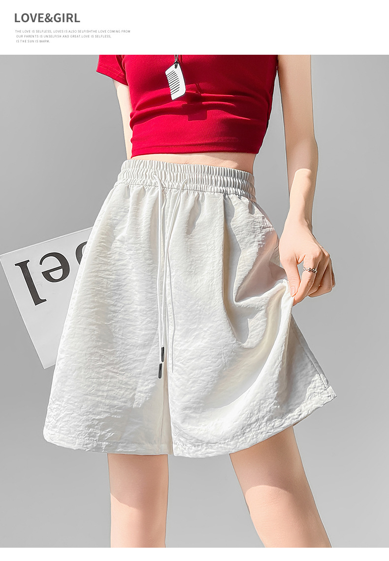 밀크 푸 아이스 실크 블루 반바지 여성 여름 얇은 2025 새로운 높은 허리 캐주얼 와이드 다리 바지 스포츠 야마모토 바지스토어 가기