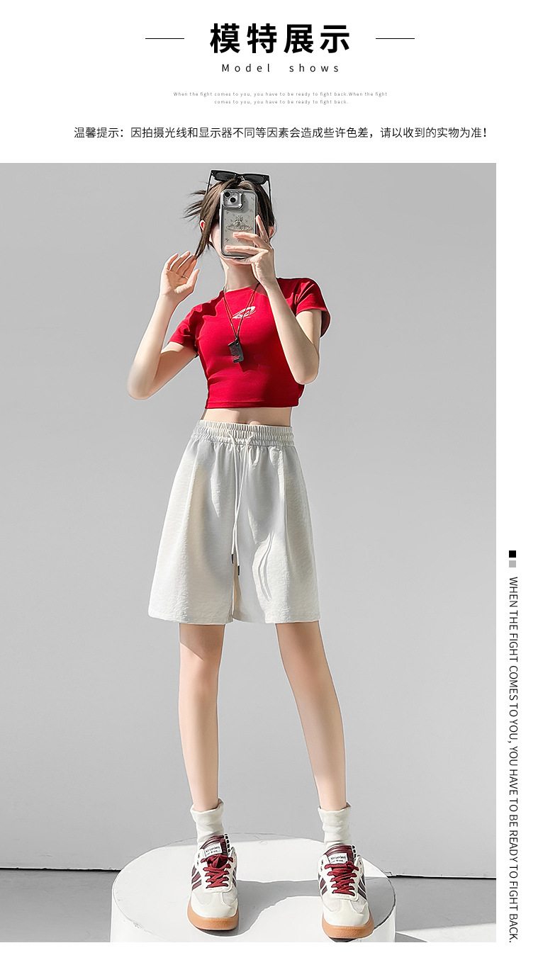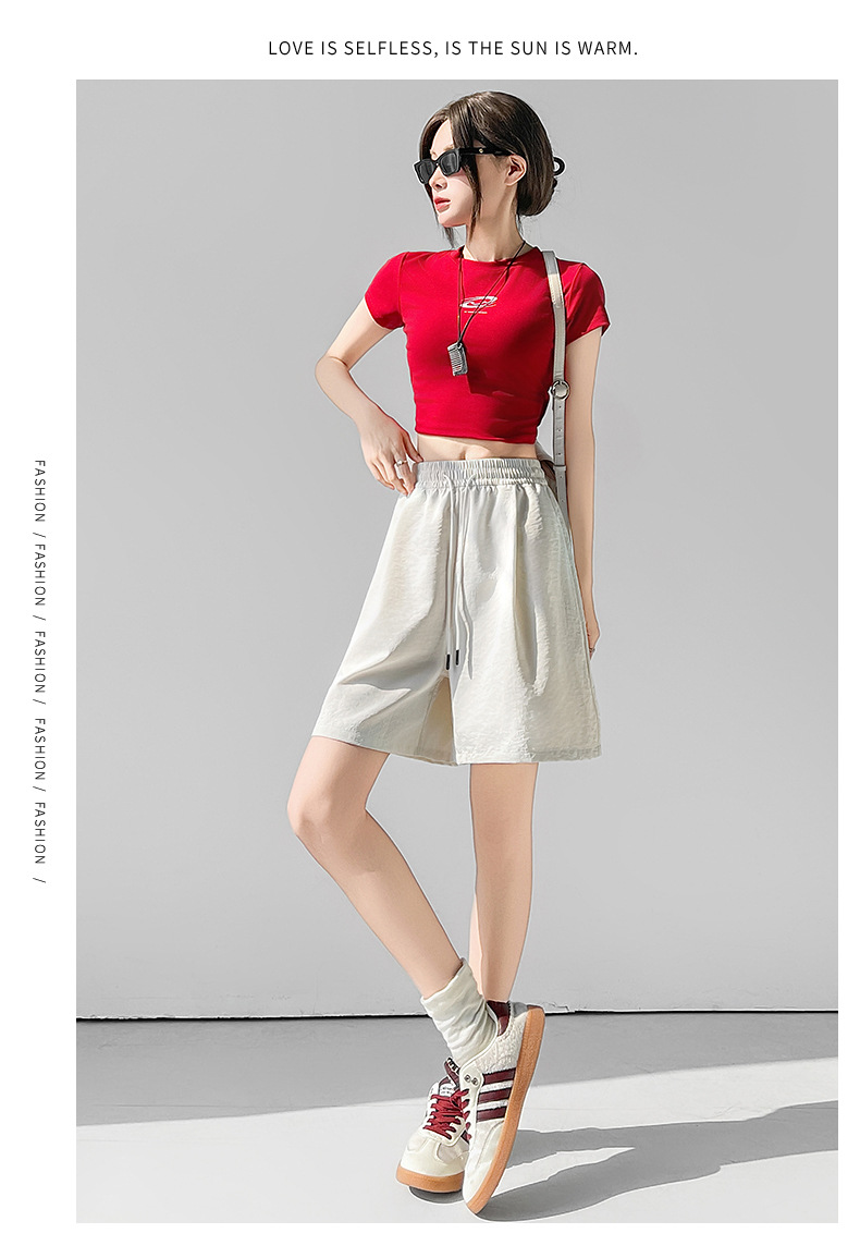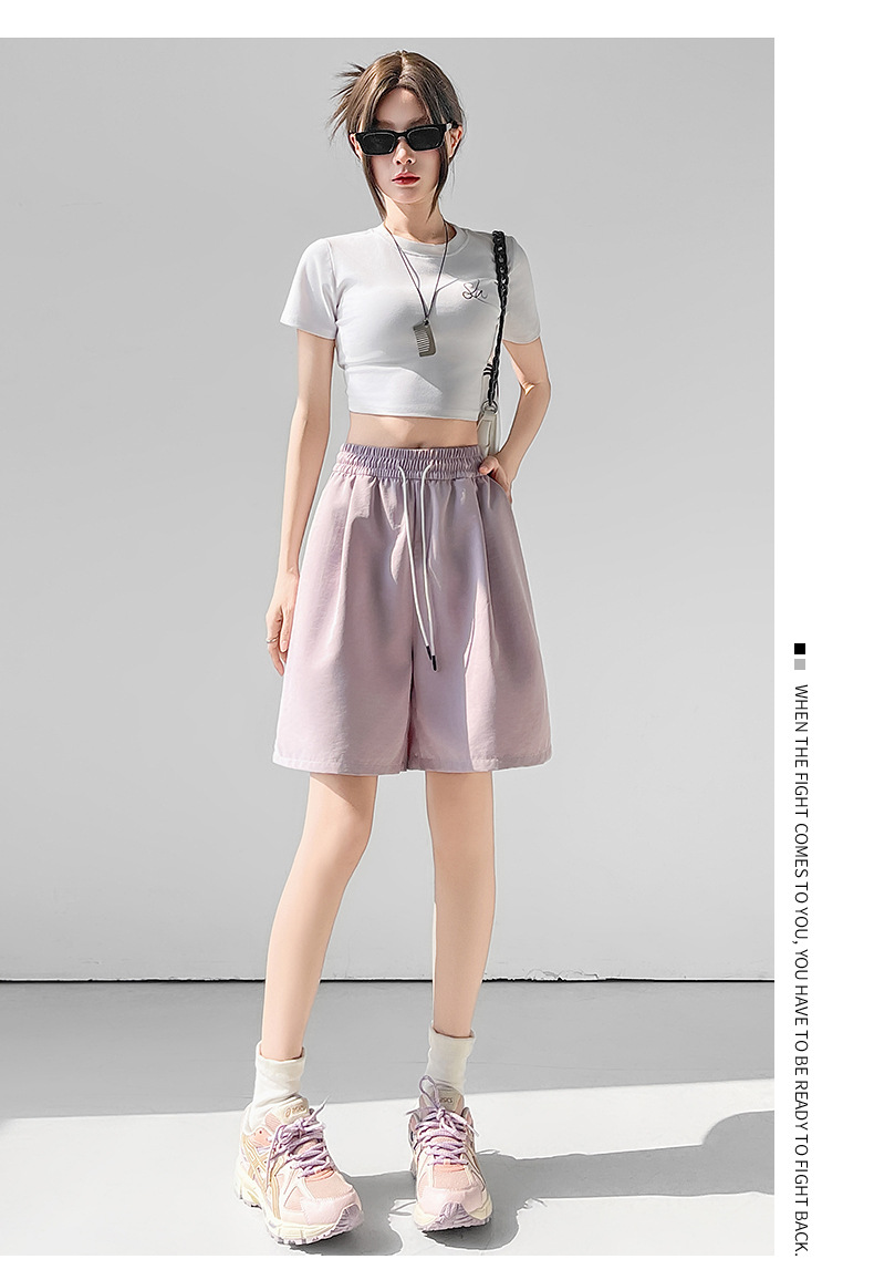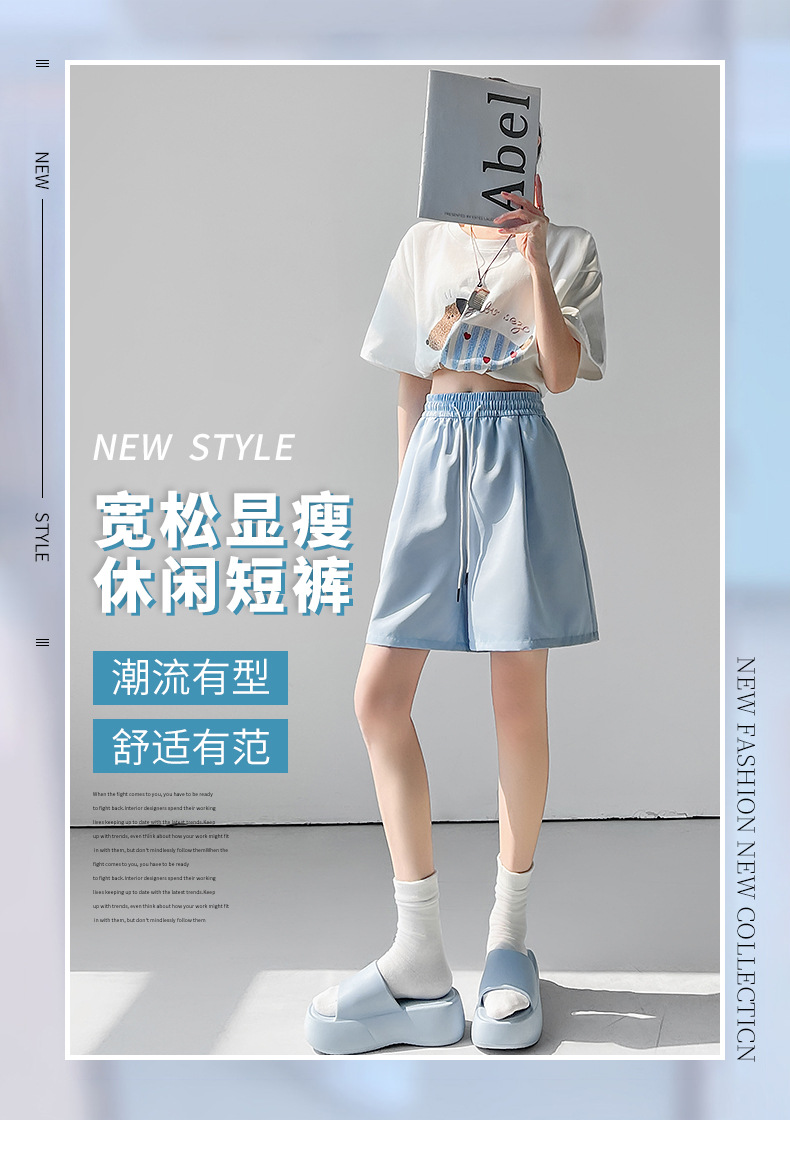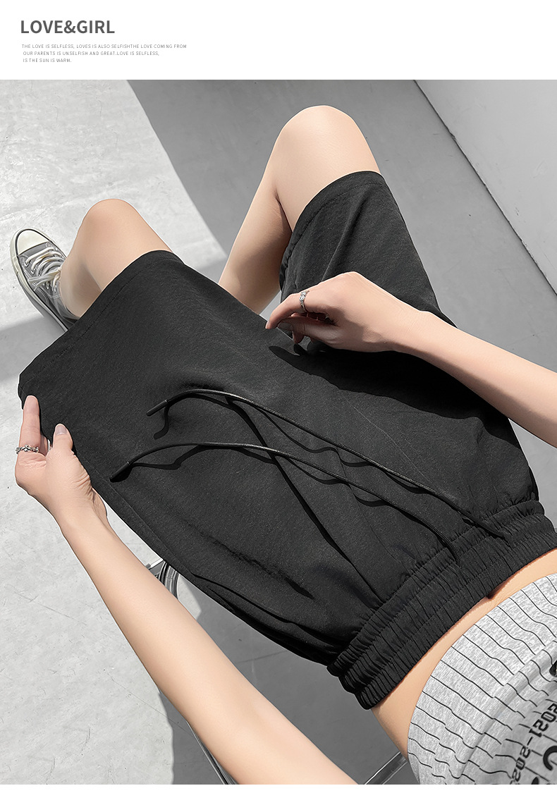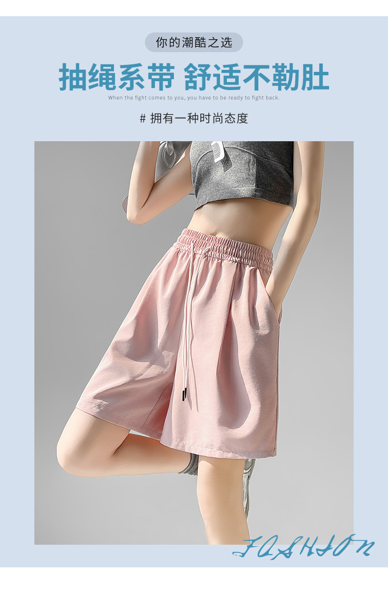밀크 푸 아이스 실크 블루 반바지 여성 여름 얇은 2025 새로운 높은 허리 캐주얼 와이드 다리 바지 스포츠 야마모토 바지스토어 가기