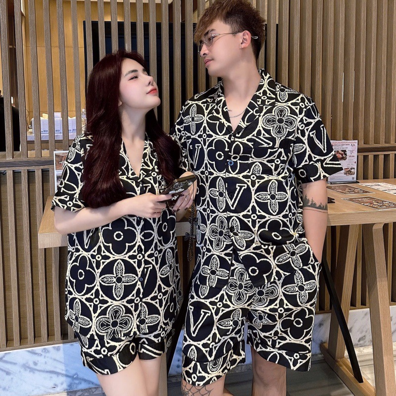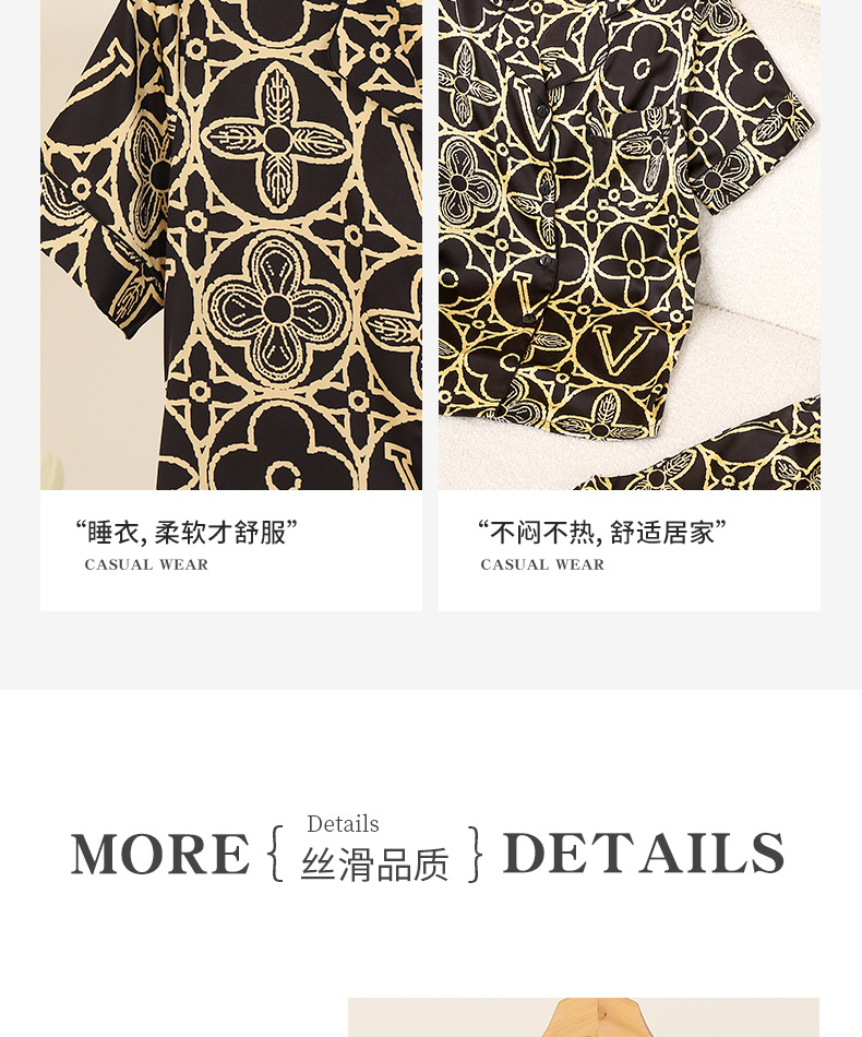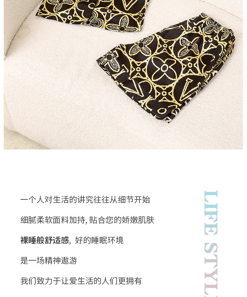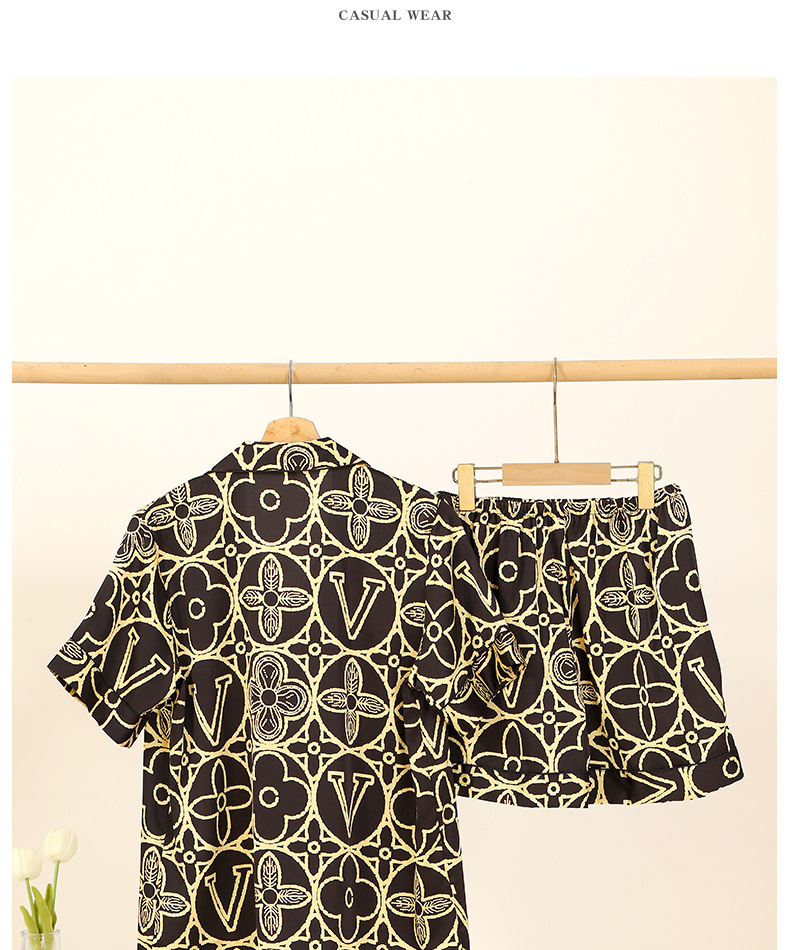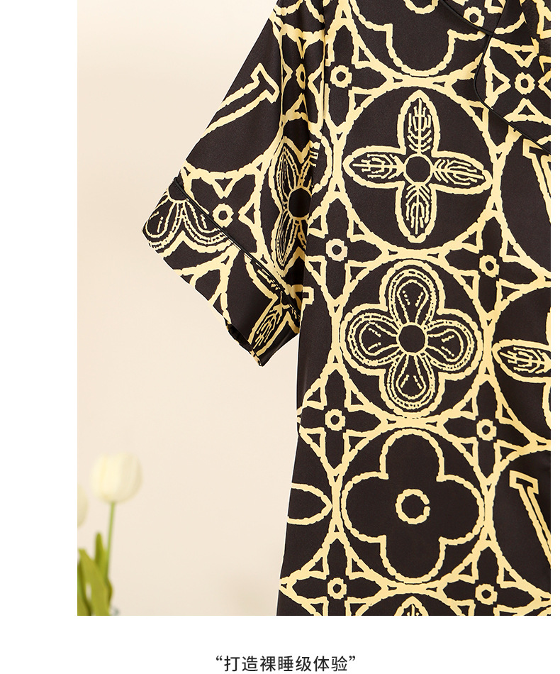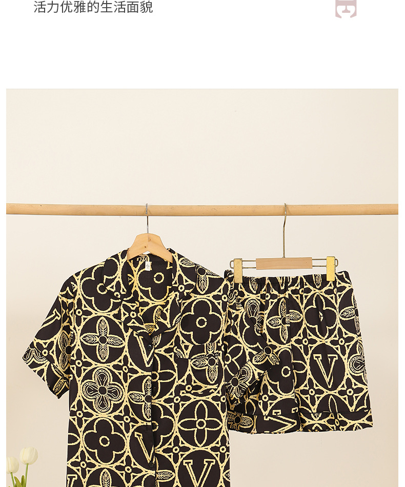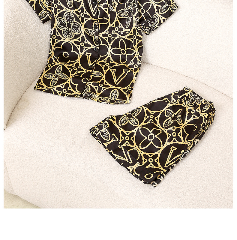 2025 새로운 아이스 실크 커플 잠옷 얇은 블랙 골드 올드 플라워 라이트 럭셔리 짧은 소매 반바지 홈 의류 세트 외부 착용스토어 가기