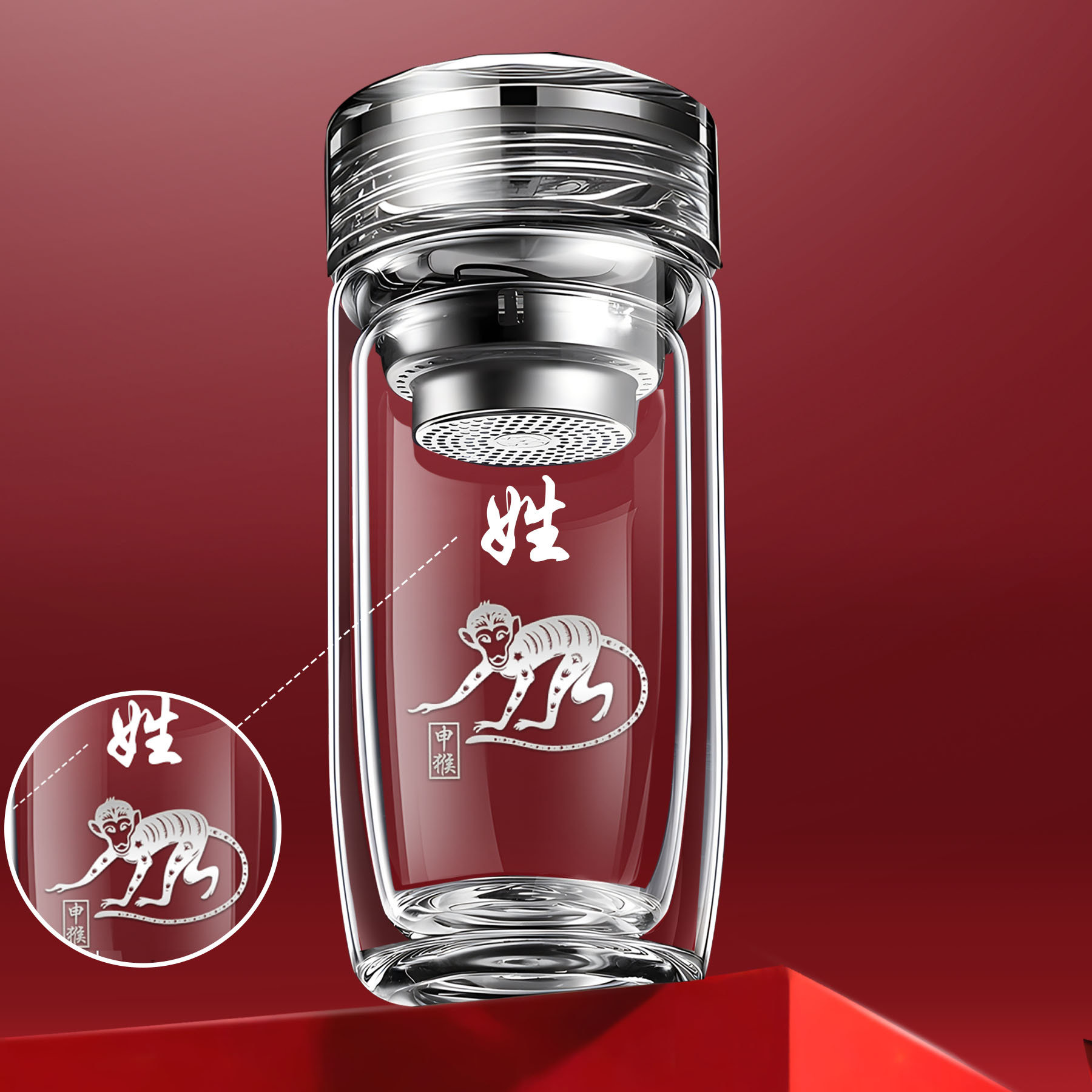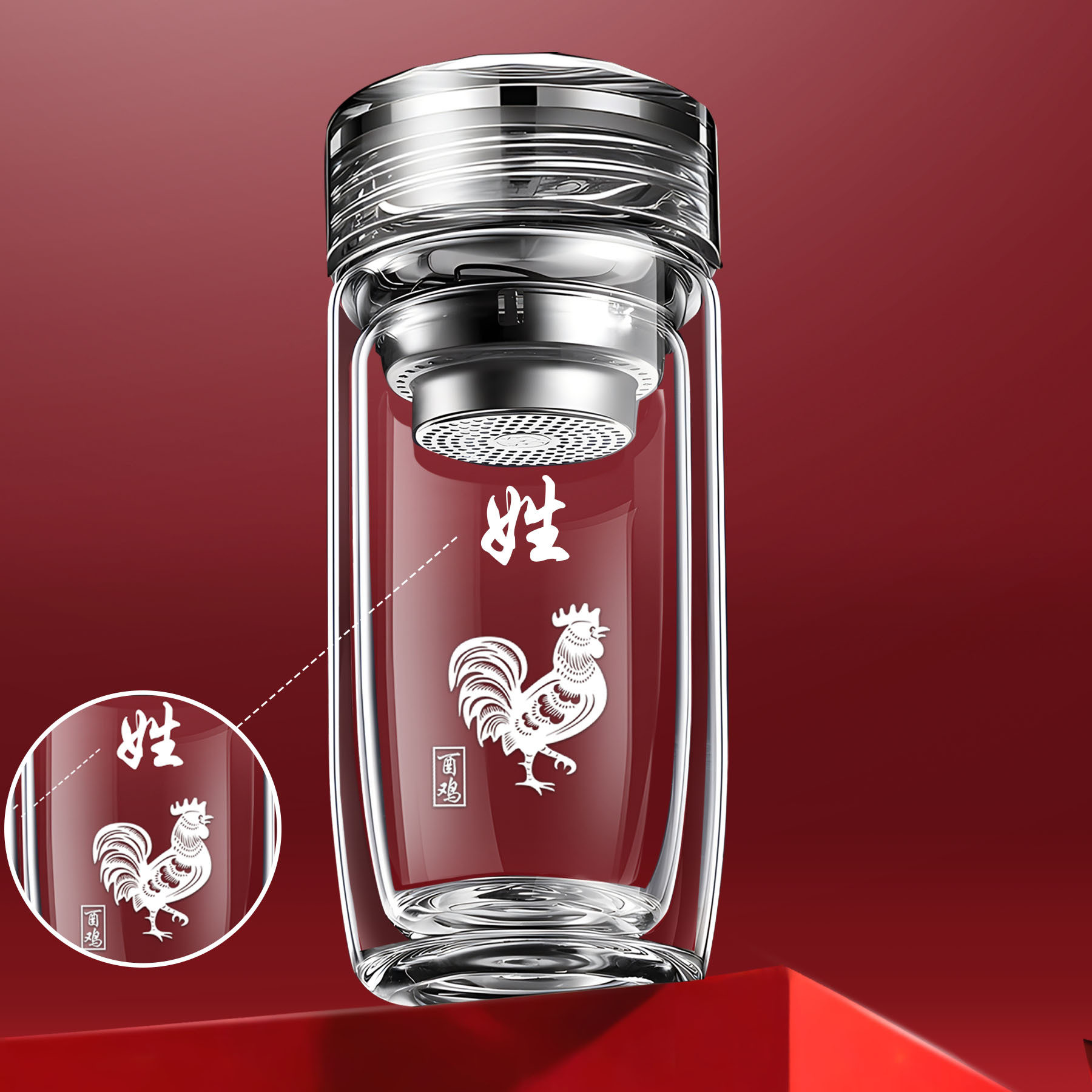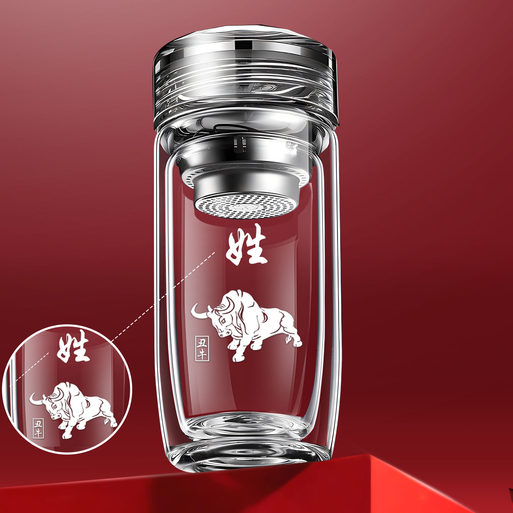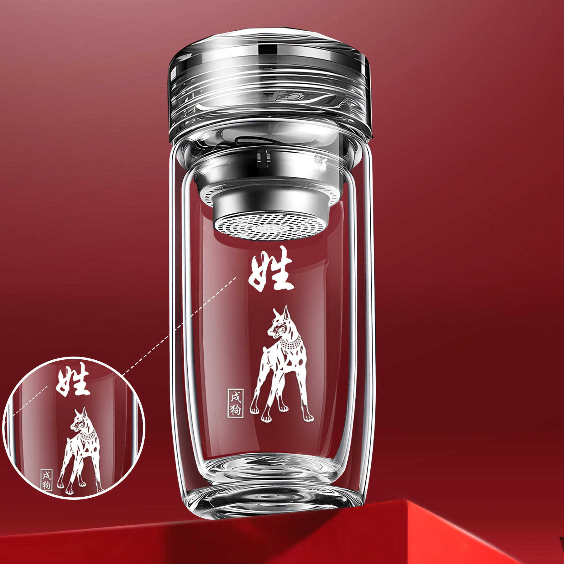 십이지신 이중층 거위알 유리 찻잔, 로고가 새겨진 차량용 가정용 물컵, 두꺼운 화상 방지 컵