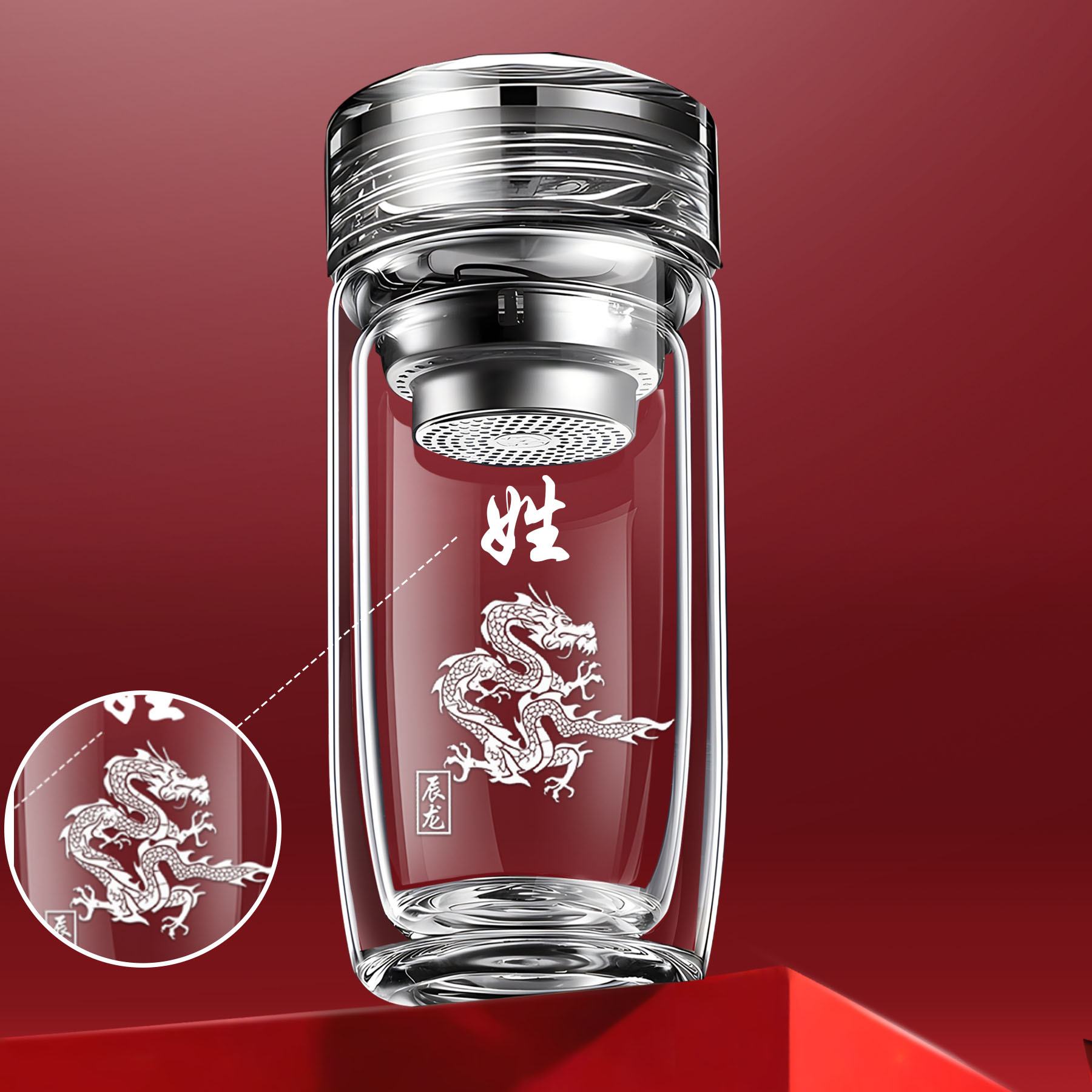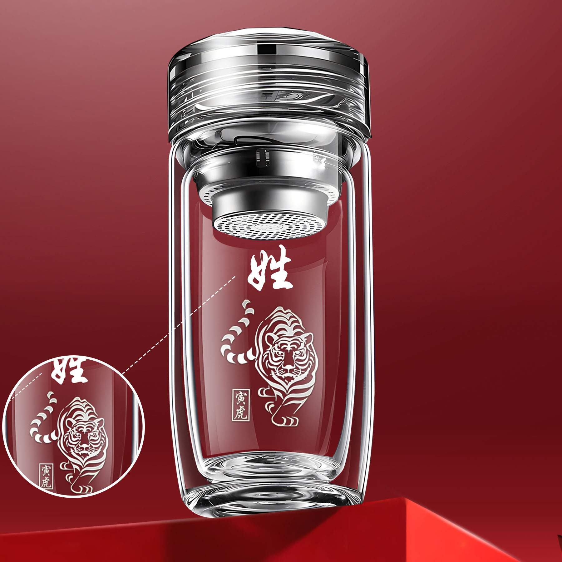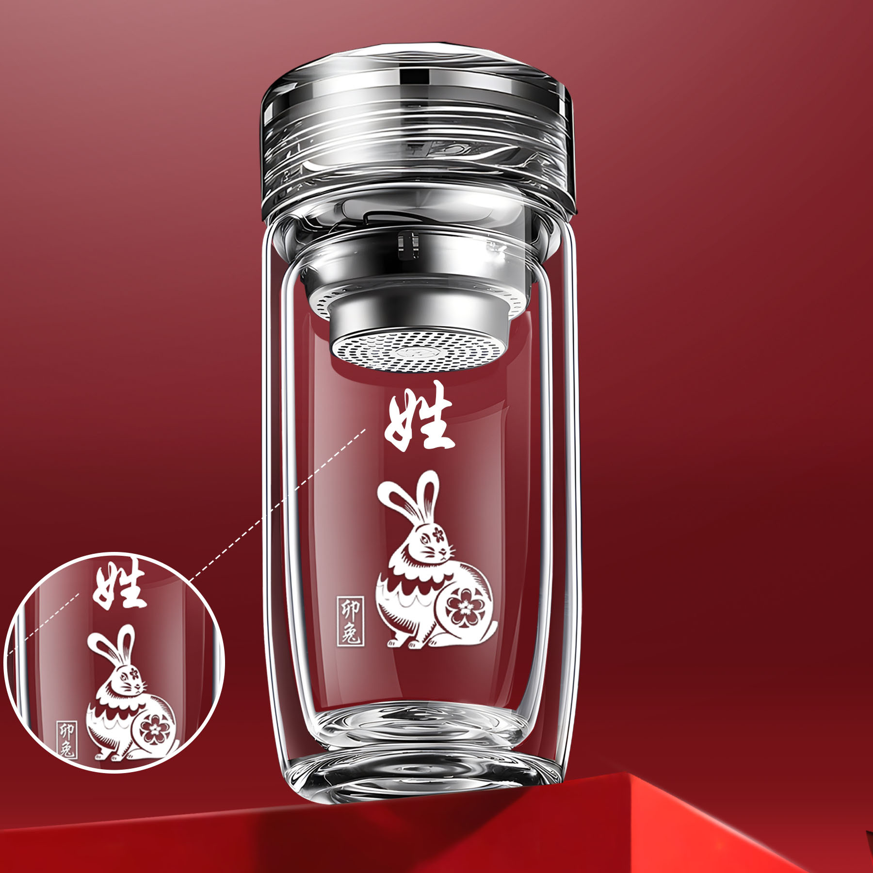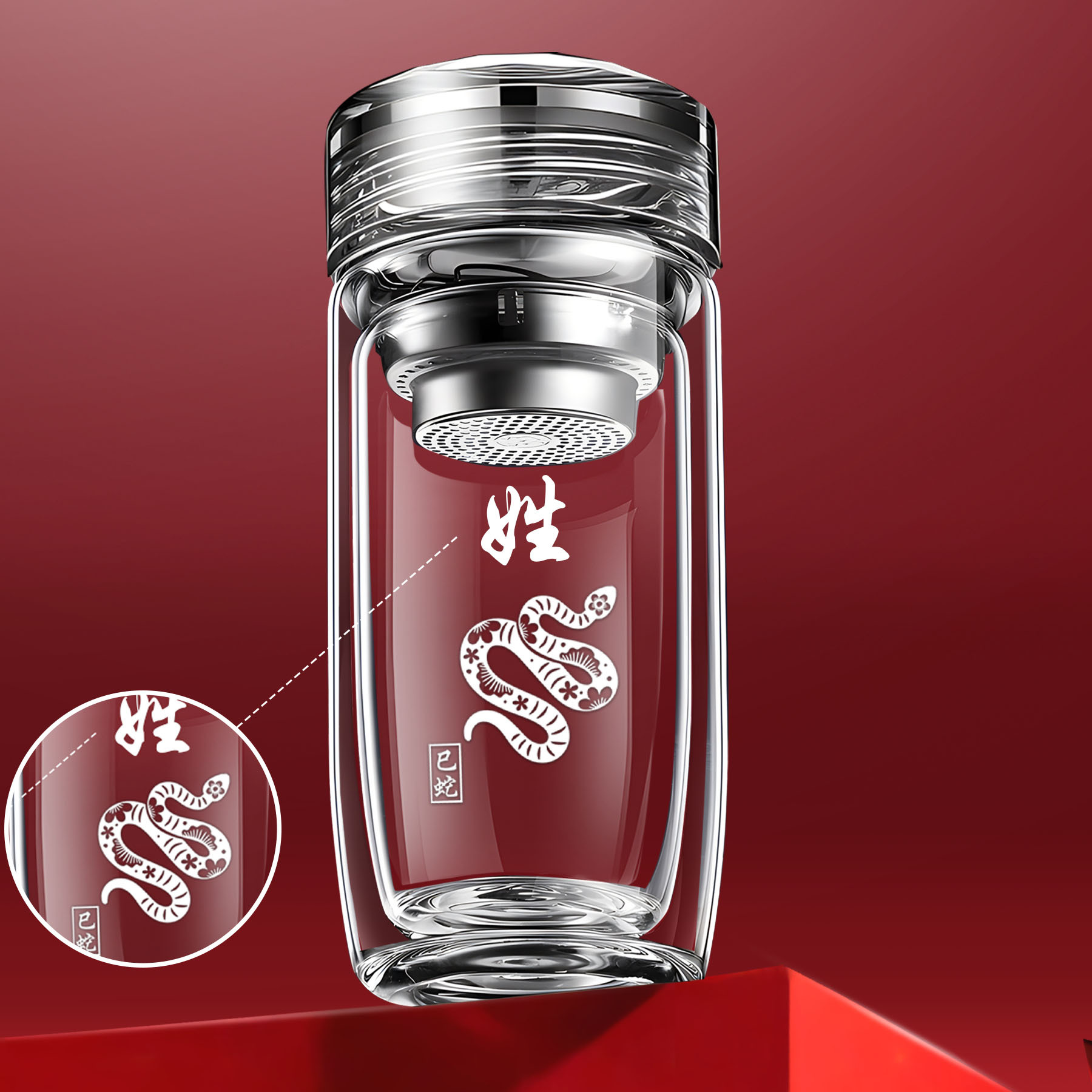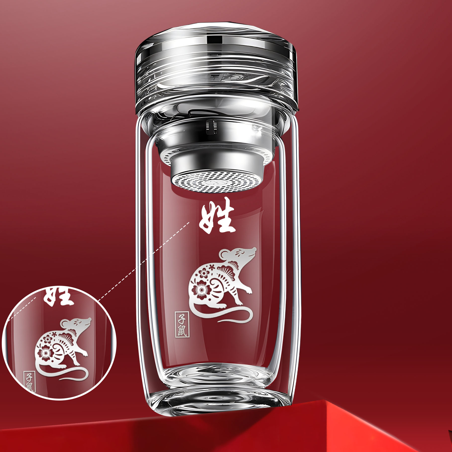 십이지신 이중층 거위알 유리 찻잔, 로고가 새겨진 차량용 가정용 물컵, 두꺼운 화상 방지 컵