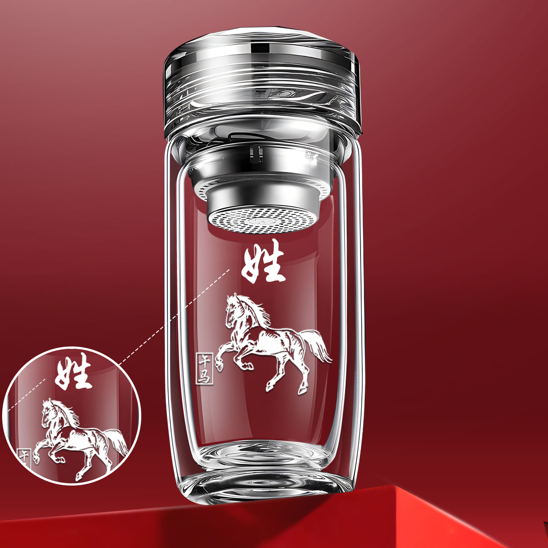 십이지신 이중층 거위알 유리 찻잔, 로고가 새겨진 차량용 가정용 물컵, 두꺼운 화상 방지 컵스토어 가기