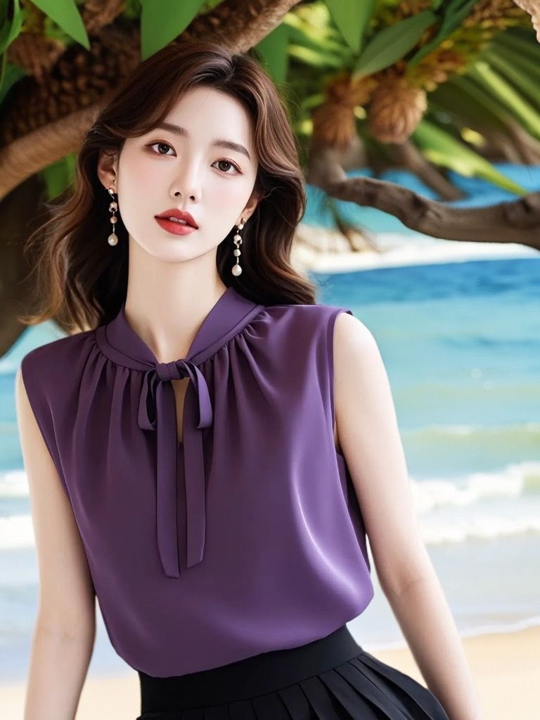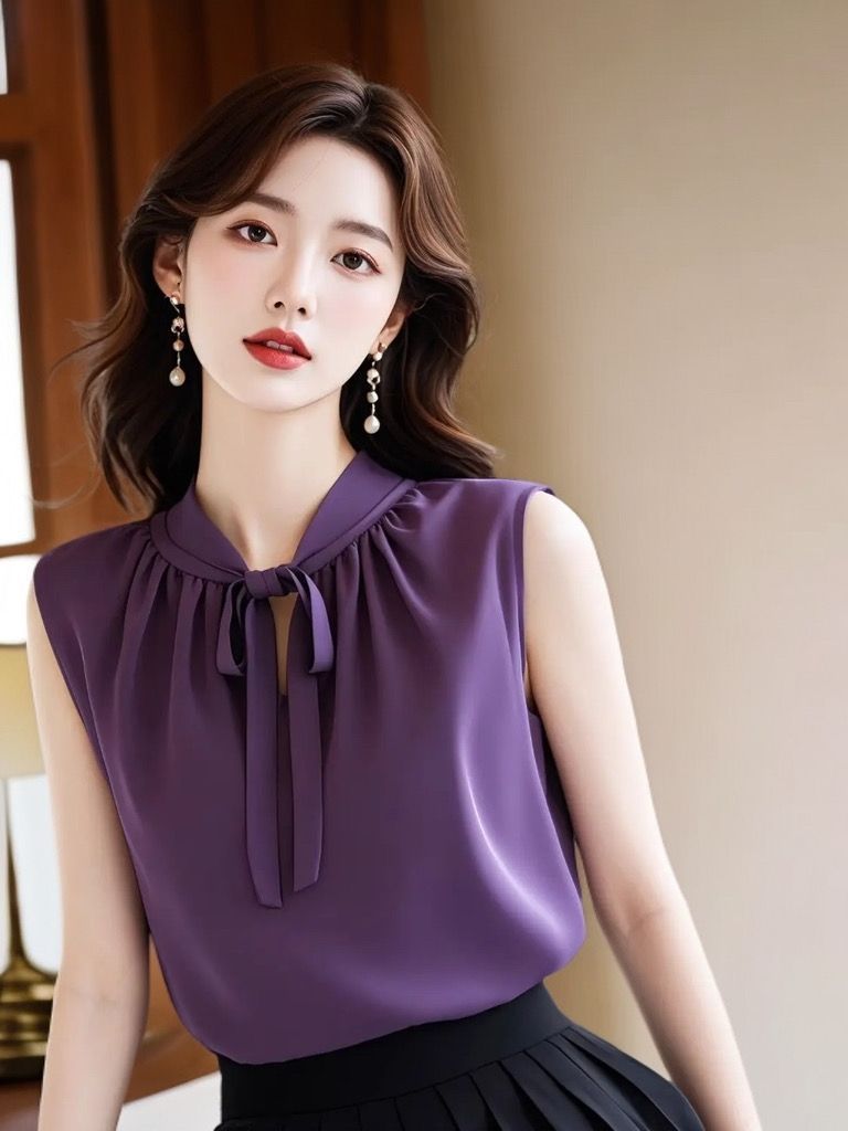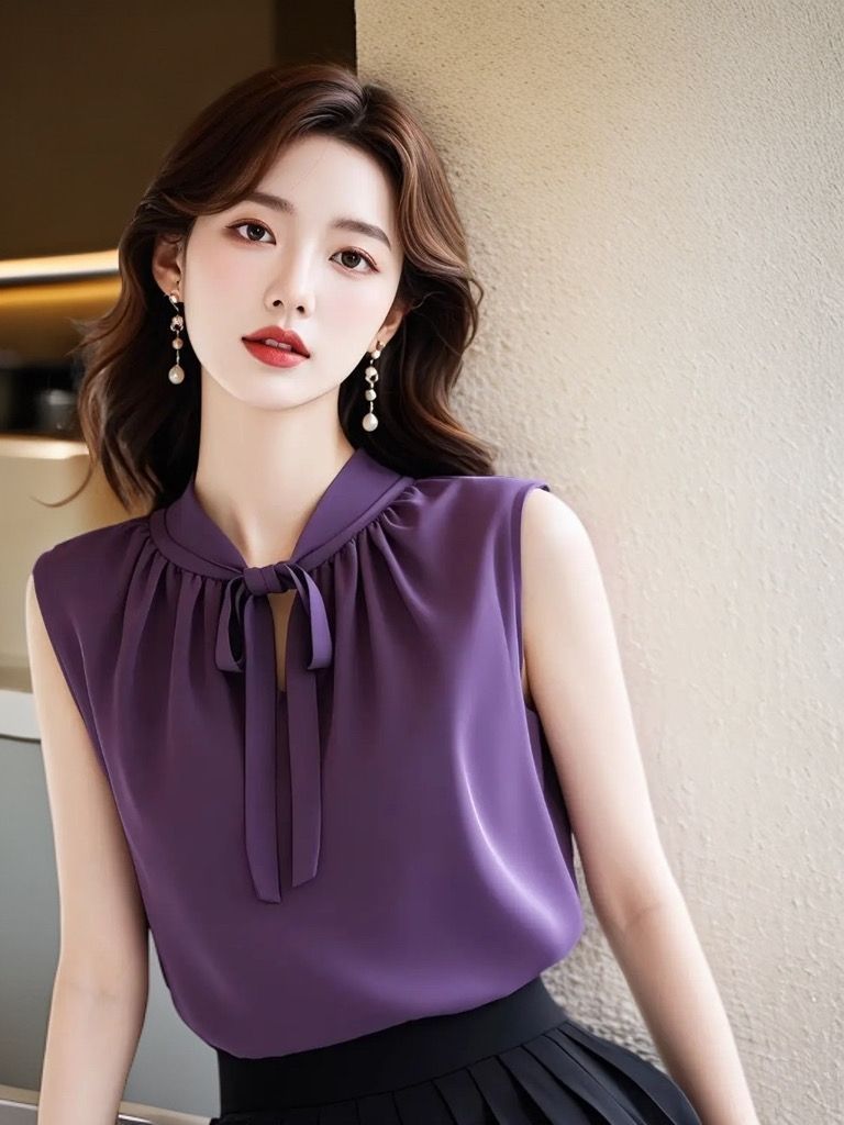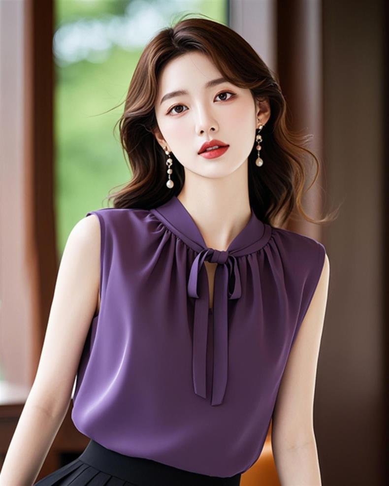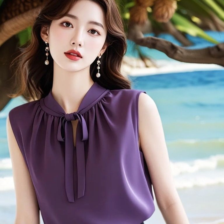 프랑스 스타일 라이트 성숙한 보라색 조끼 민소매 셔츠 여성 디자인 센스 틈새 독특한 여름 독특한 스트랩 아름다운 탑스토어 가기