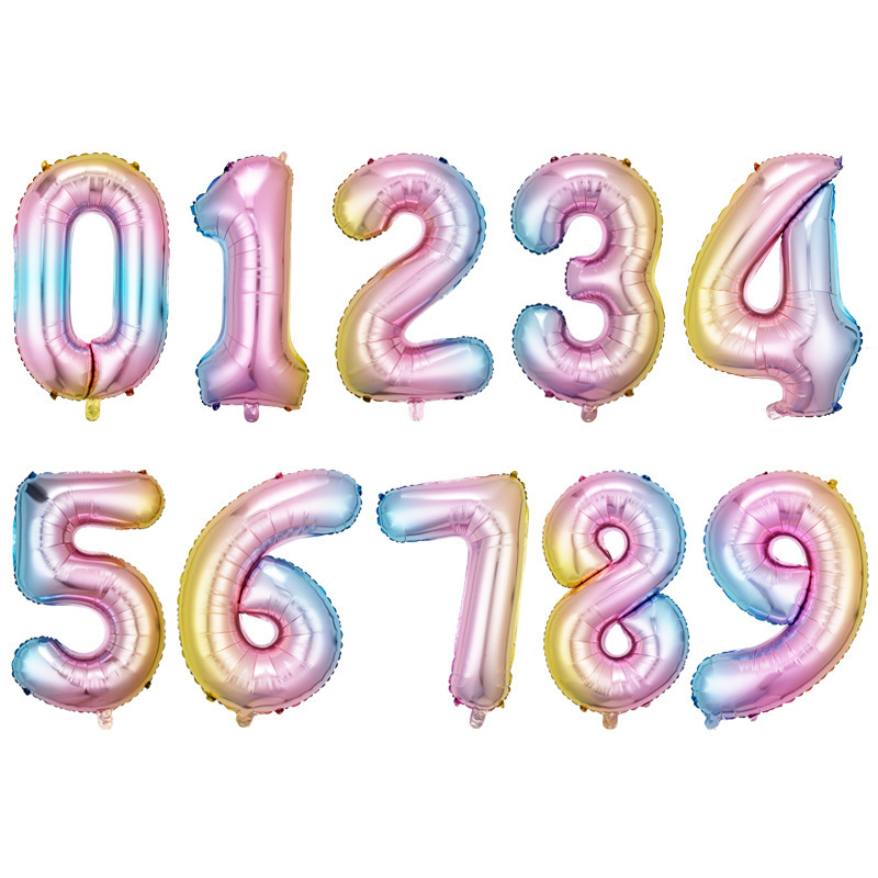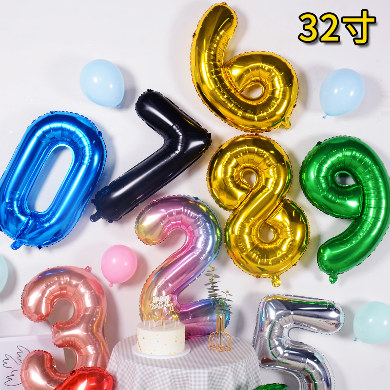 32inch 디지털 풍선 미국 버전 캐러멜 컬러 플로팅 알루미늄 필름 풍선 블루 중간 디지털 풍선 생일 장식 도매