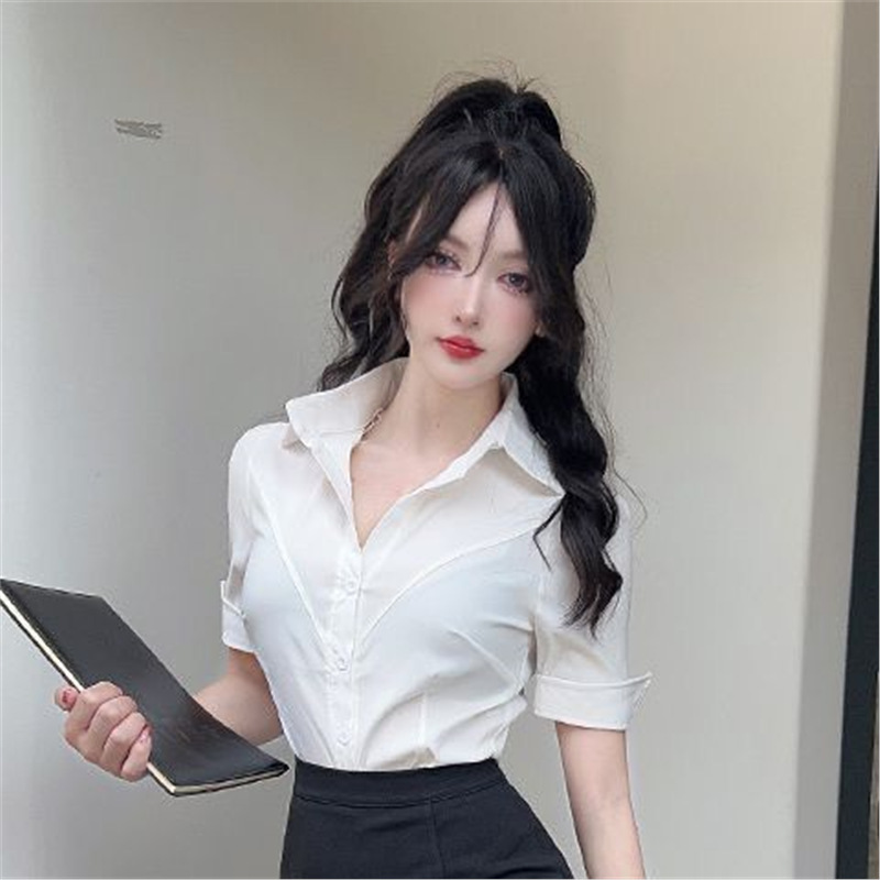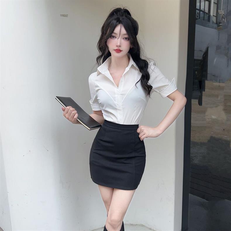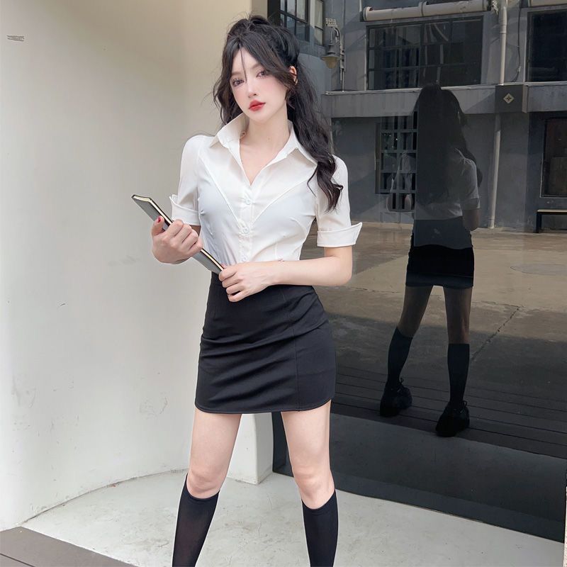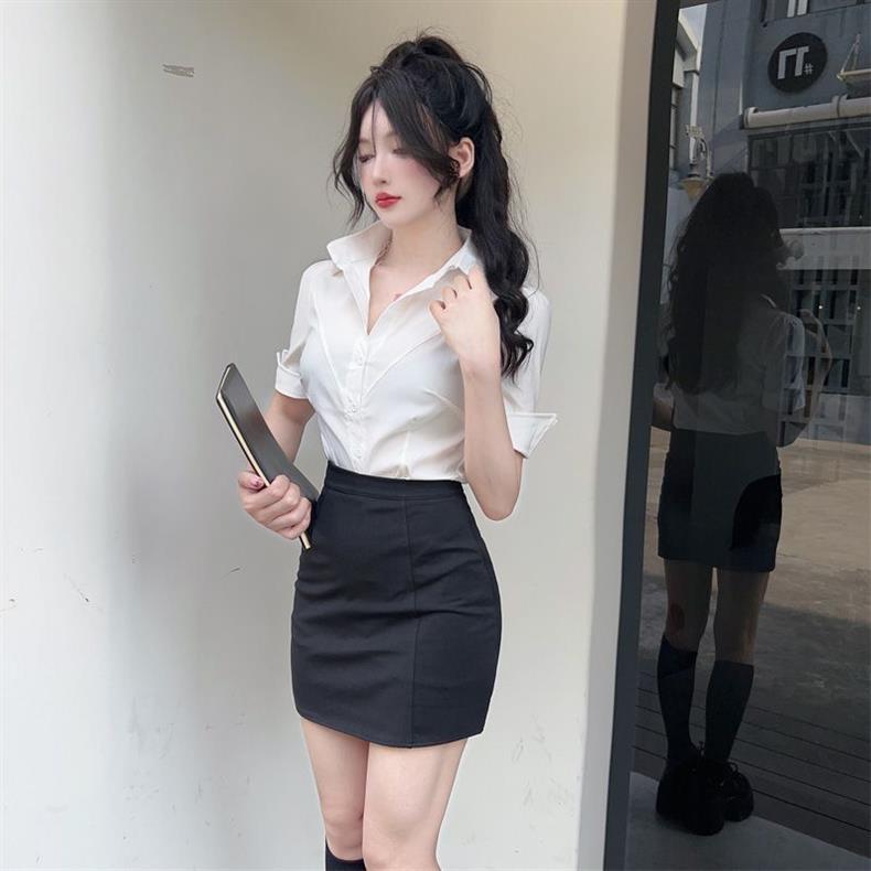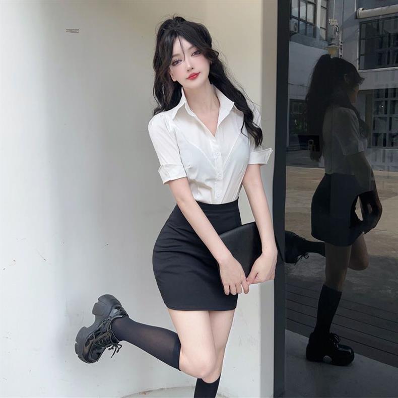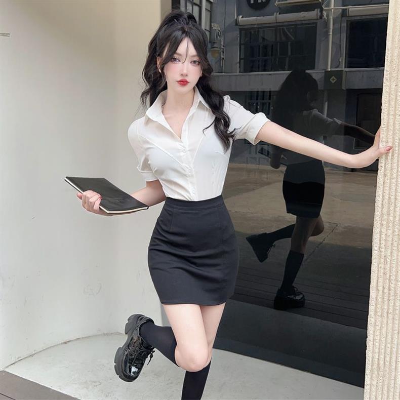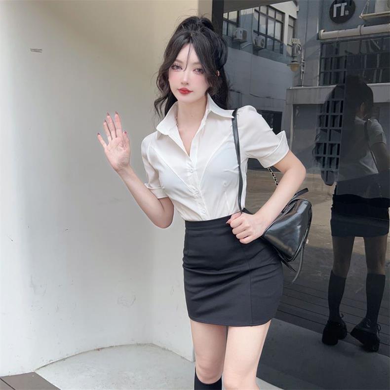 봄 여름 젊고 달콤한 jk 유니폼 셔츠 순수한 욕망 스타일 슬리밍 허리 길이 반팔 바디 쉐이핑 셔츠 여성용