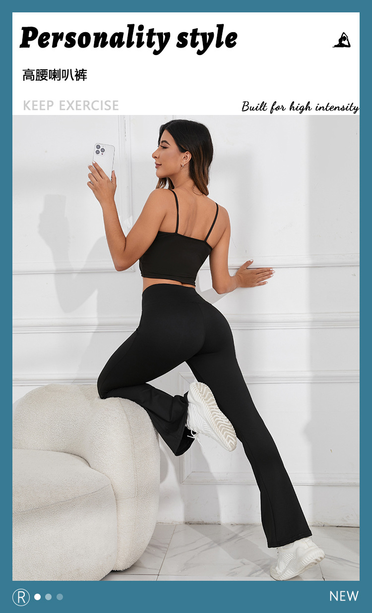 여성용 크로스보더 하이웨이스트 플레어 팬츠, 쉐이핑 및 통기성이 뛰어난 복숭아 엉덩이 바지, 엉덩이 리프팅 및 슬리밍 댄스 피트니스 스포츠 요가 팬츠