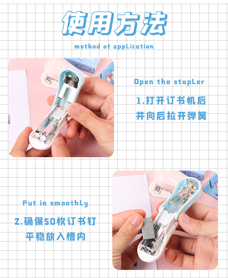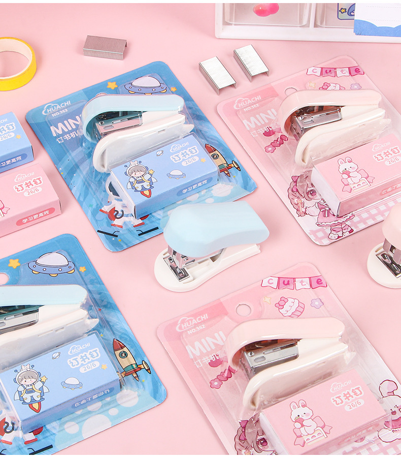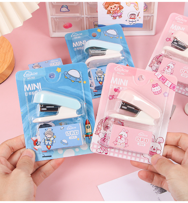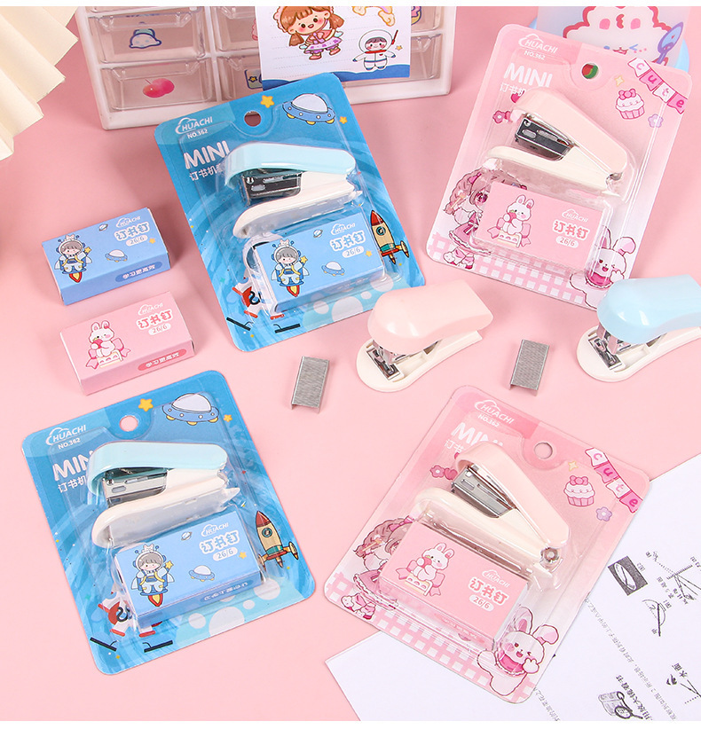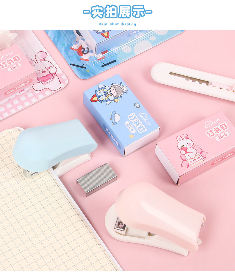 만화 스테이플러 미니 소형 세트 귀여운 학생 문구 다기능 바인딩 기계 시험지 스테이플러스토어 가기