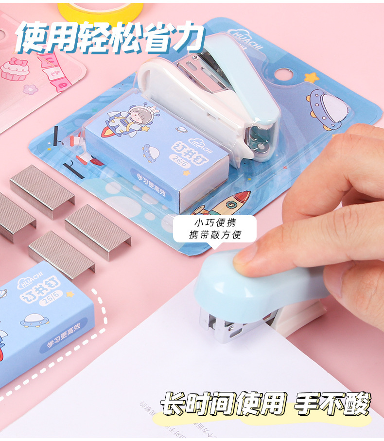 만화 스테이플러 미니 소형 세트 귀여운 학생 문구 다기능 바인딩 기계 시험지 스테이플러