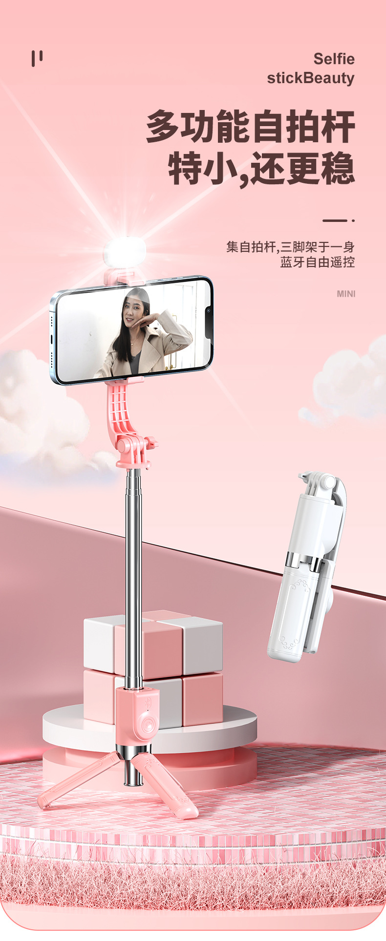 셀카봉 블루투스 Z10 휴대용 일체형 삼각대 플러스 필 라이트 라이브 스트리밍 삼각대 사진 유물스토어 가기