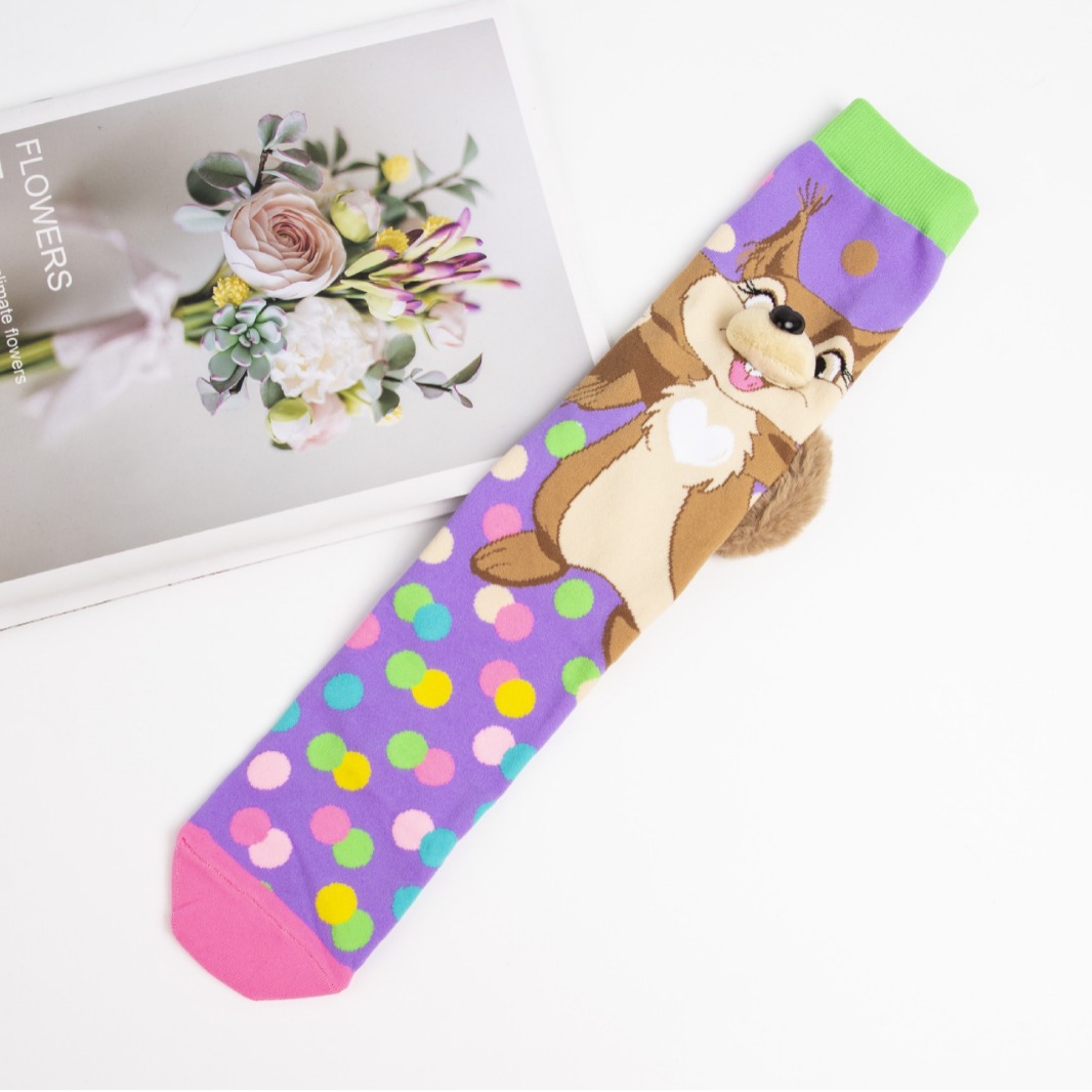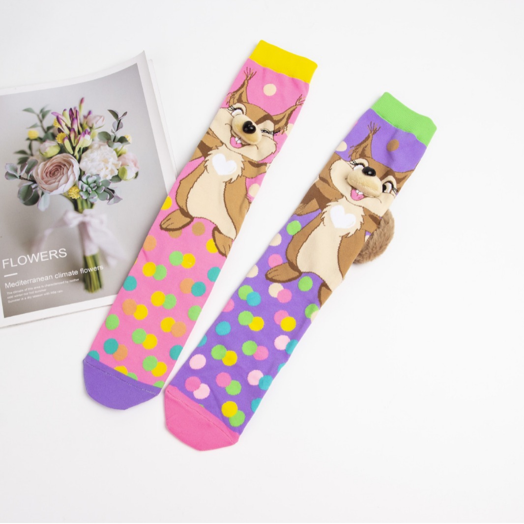 창조적 인 다람쥐 양말 1 쌍, 국경 간 뜨거운 어린이 스트레이트 양말, 세련된 그물 레드 어린이 양말