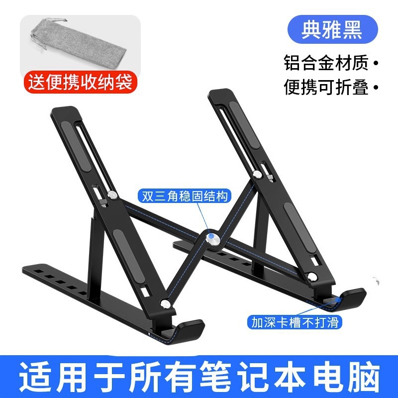 • 우아한 블랙 [알루미늄 합금 러브 포인트 ☆ 접이식 및 휴대 가능 ☆ 실리콘 미끄럼 방지 ☆ 자유 리프팅 ☆ 풀사이즈 노트북과 호환 가능