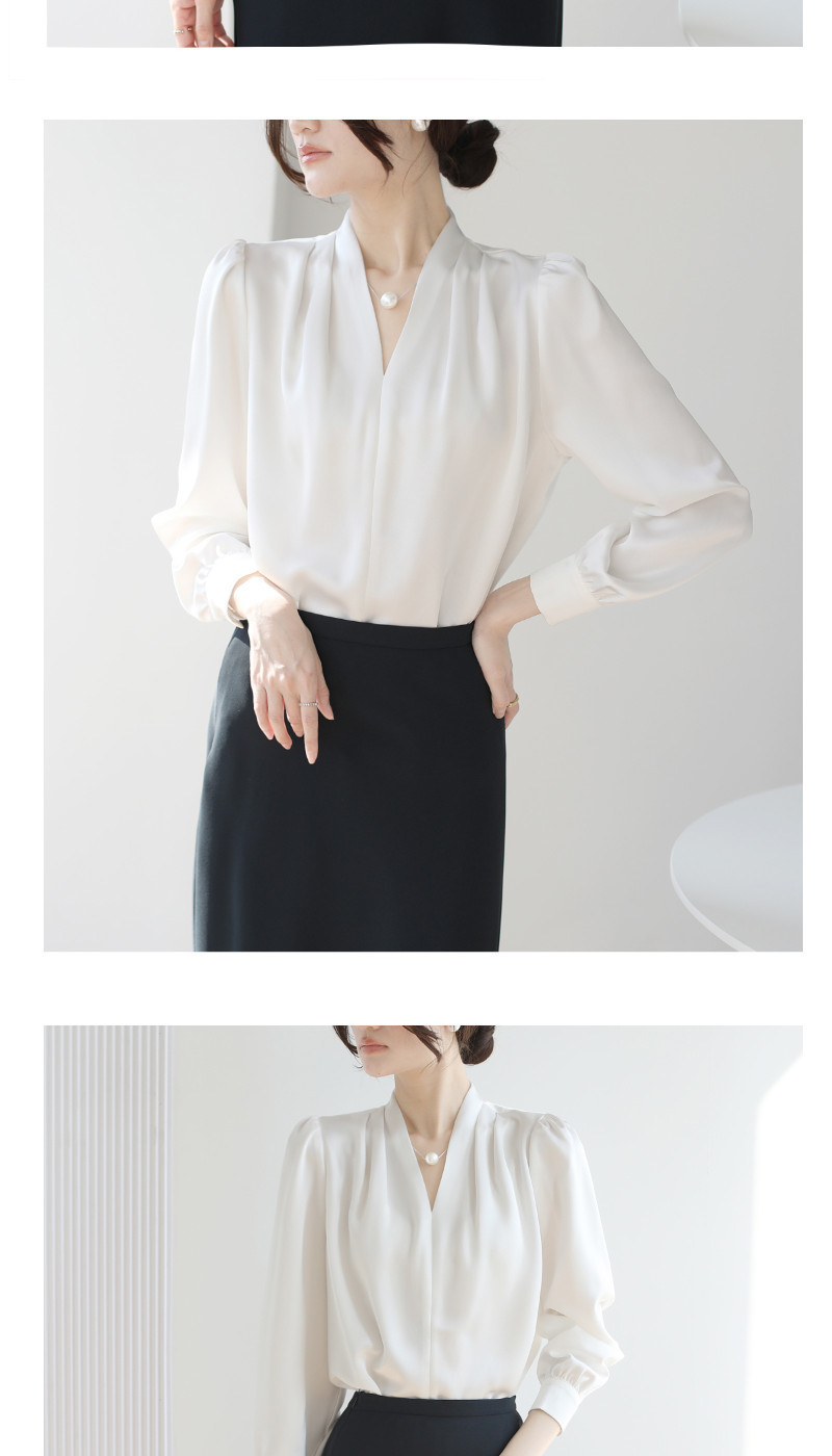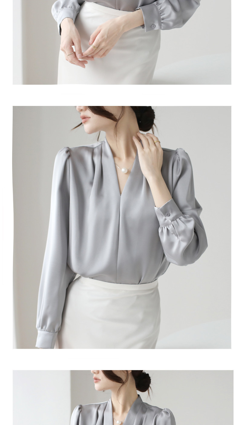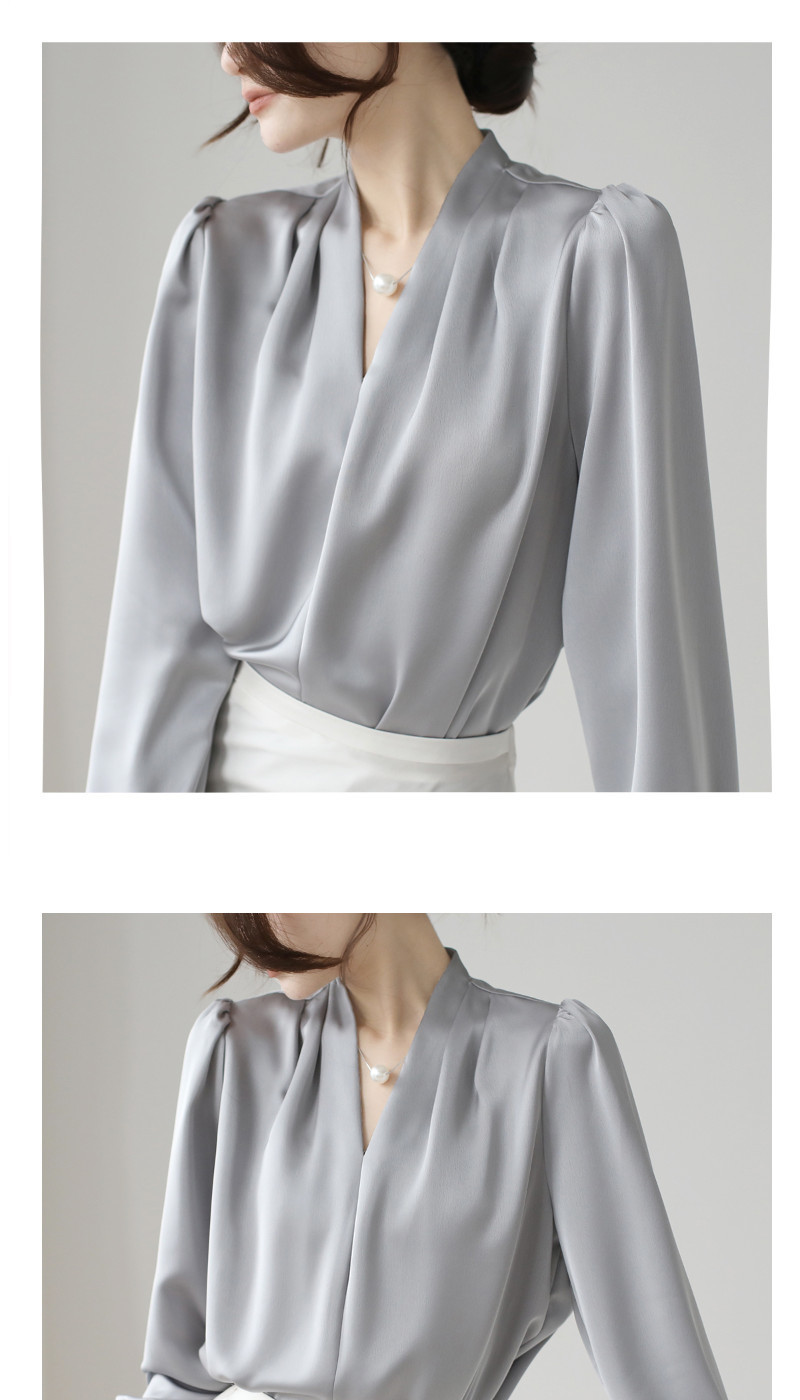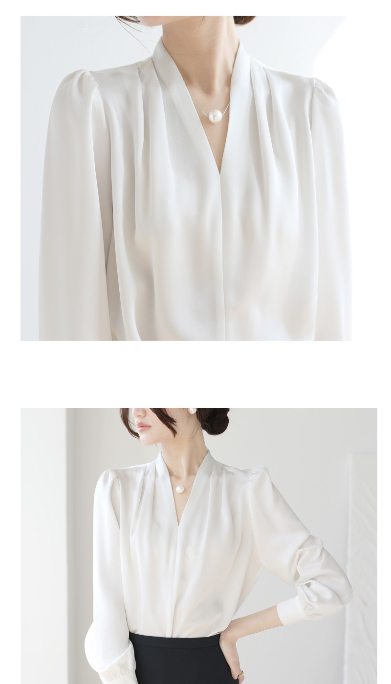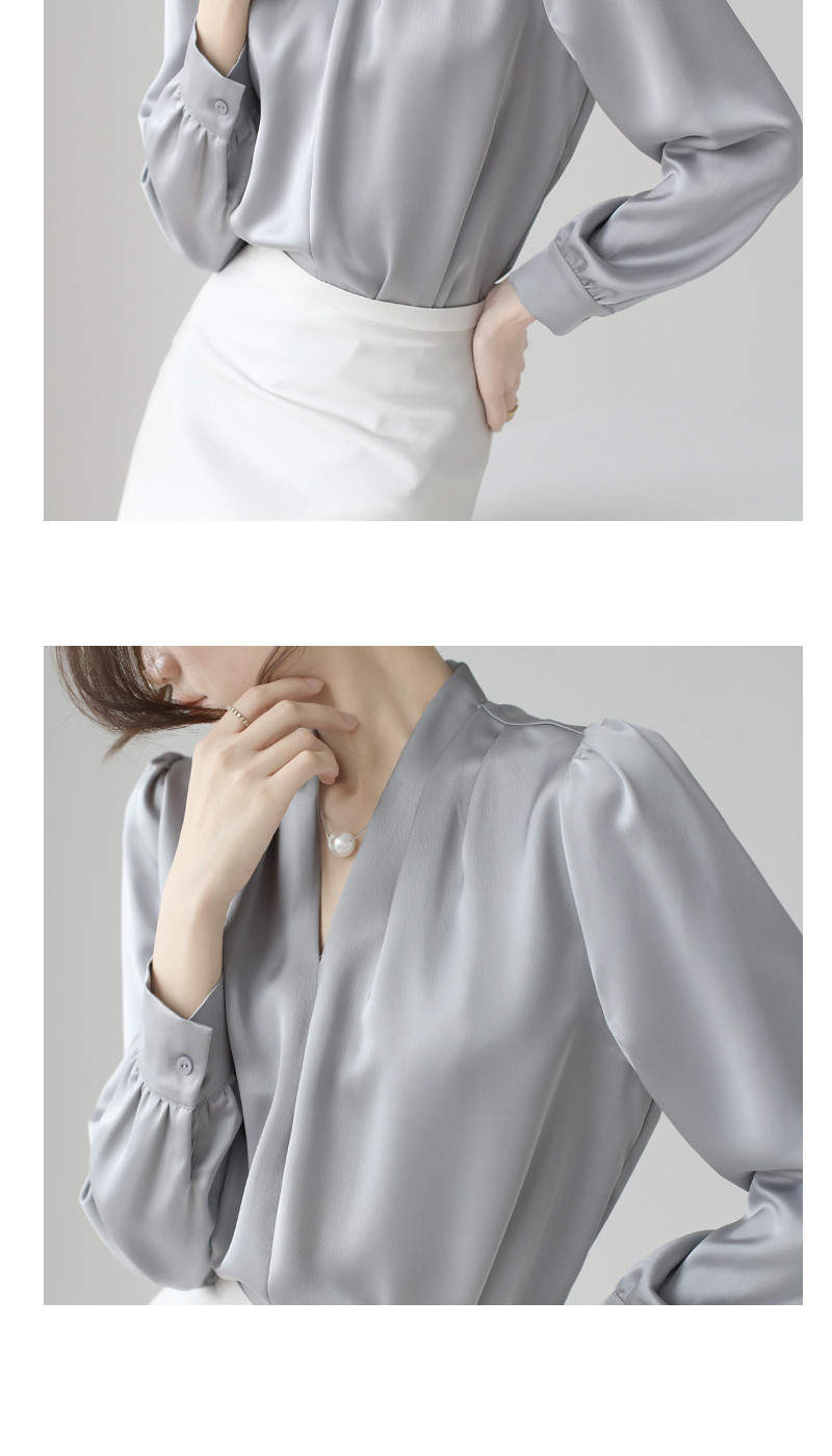 2025 우수한 간단한 쉬폰 셔츠 여성의 봄과 가을 우아한 V-넥 라이트 성숙한 통근 새틴 탑