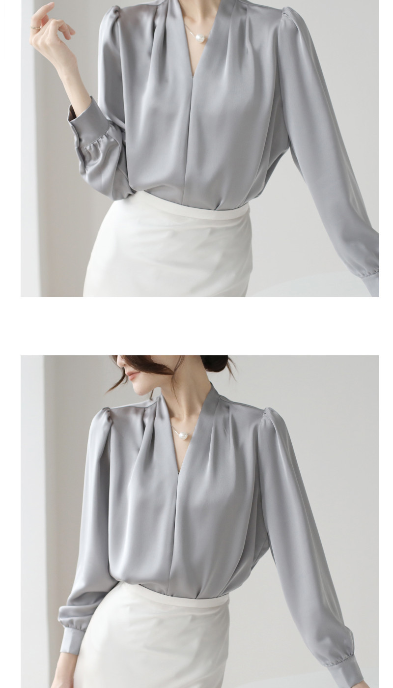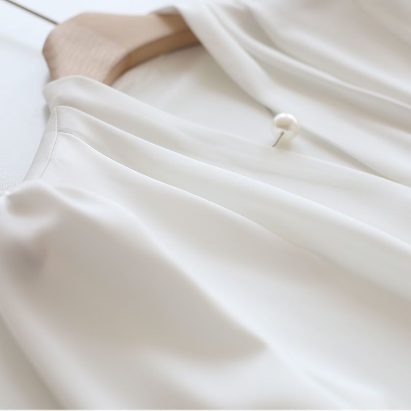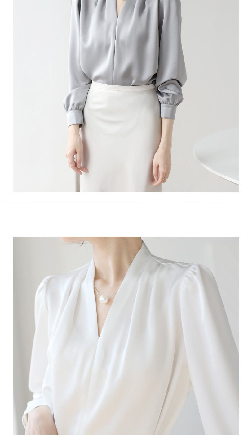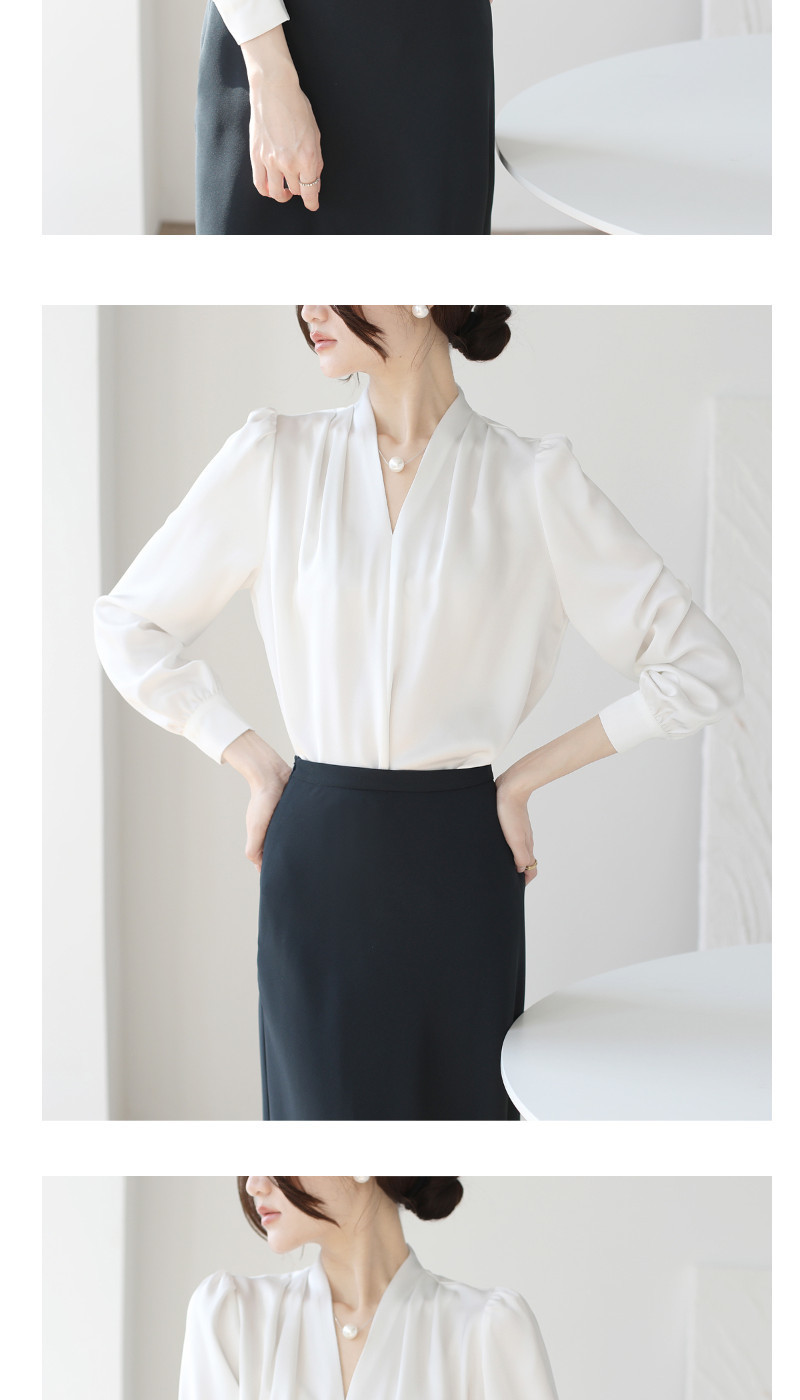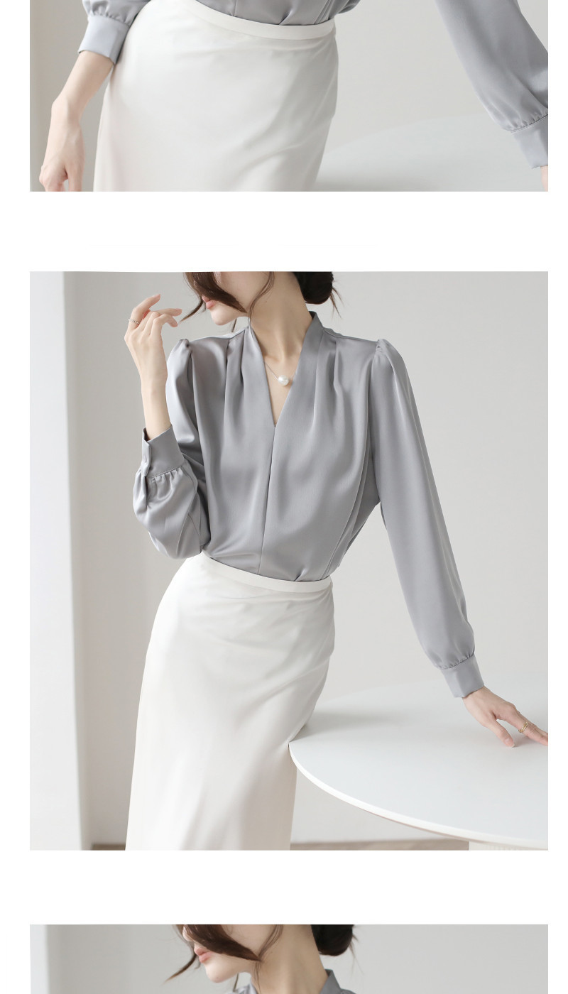 2025 우수한 간단한 쉬폰 셔츠 여성의 봄과 가을 우아한 V-넥 라이트 성숙한 통근 새틴 탑