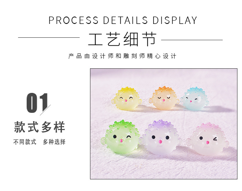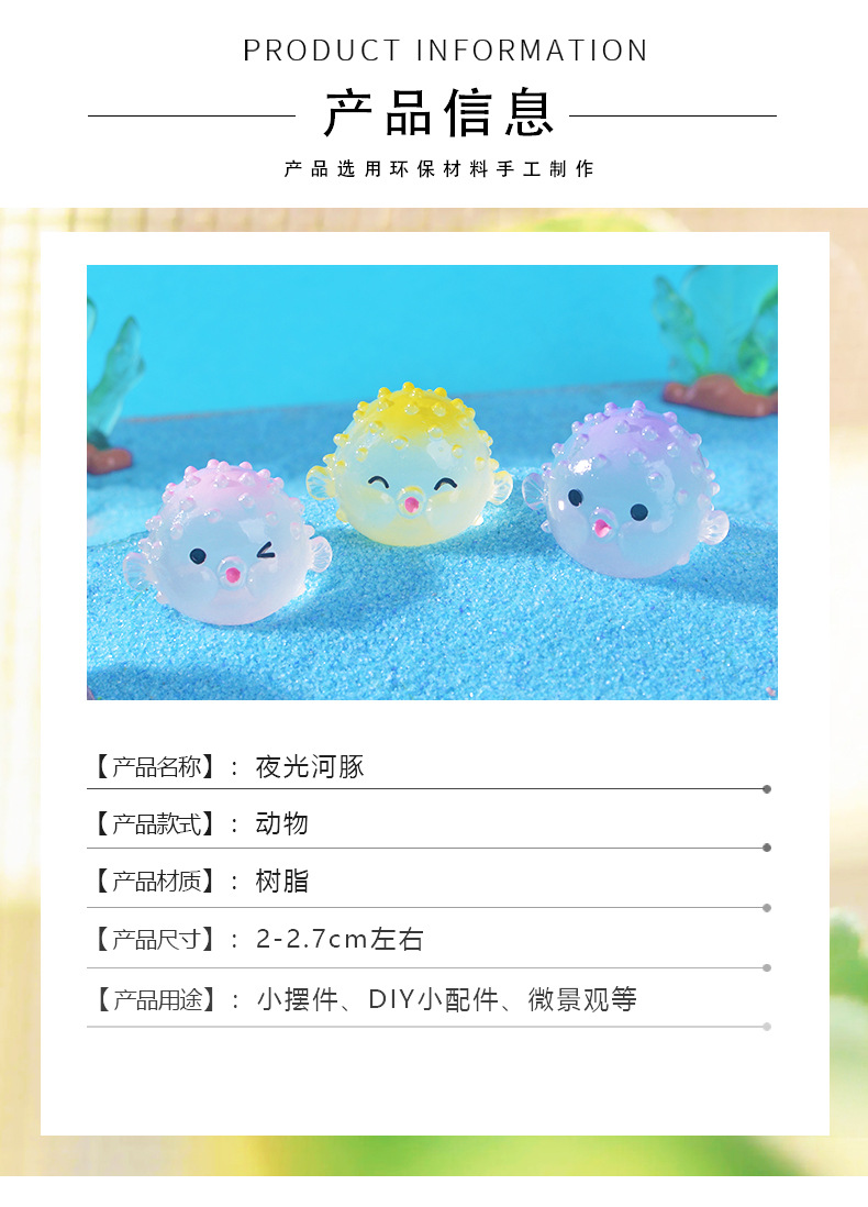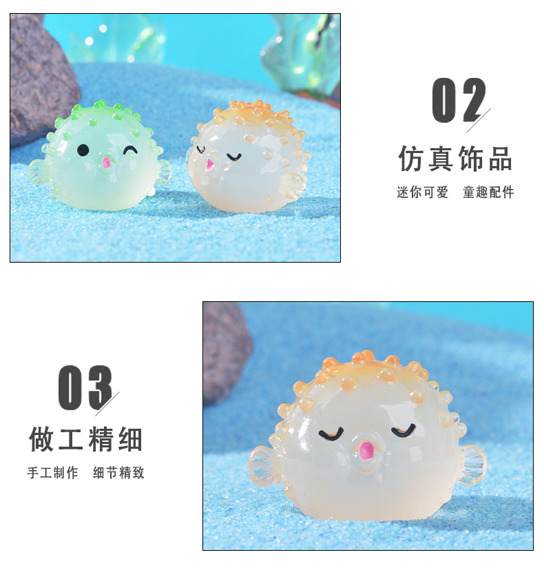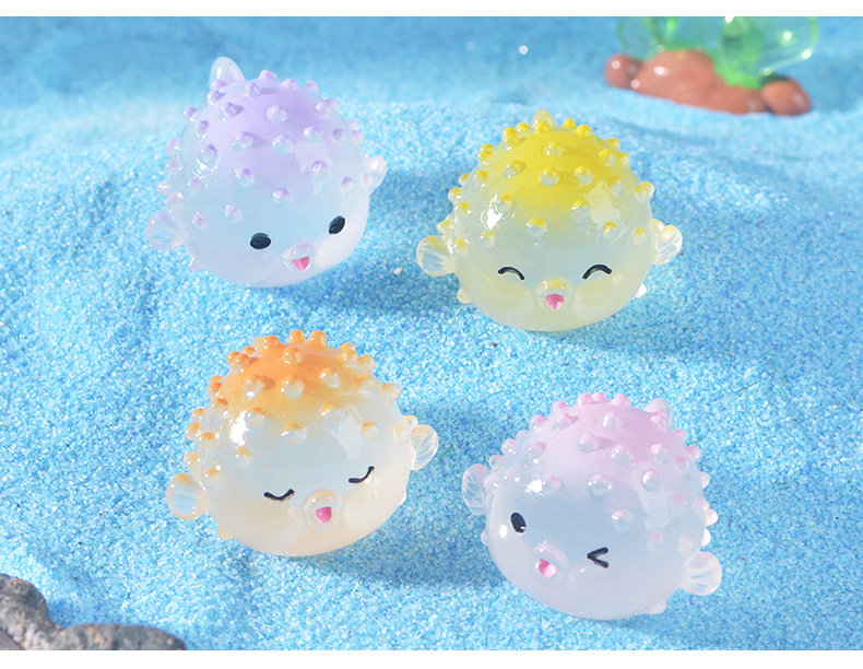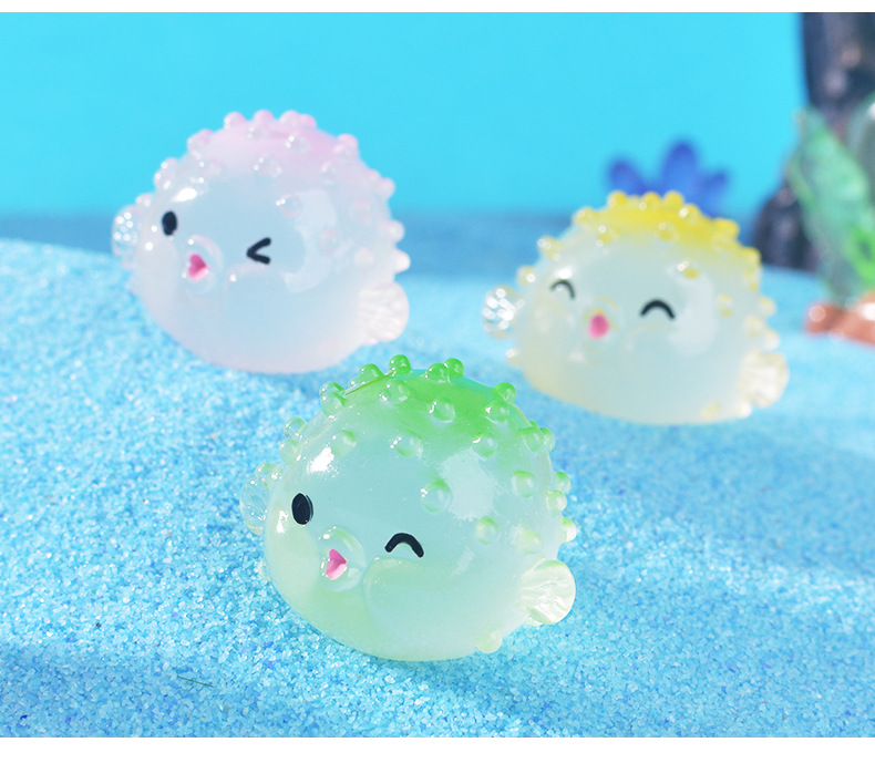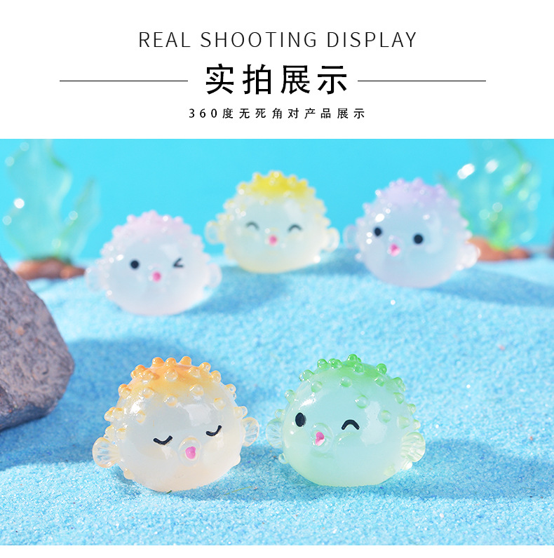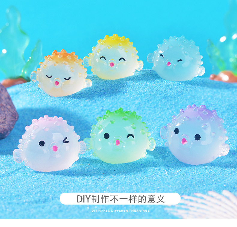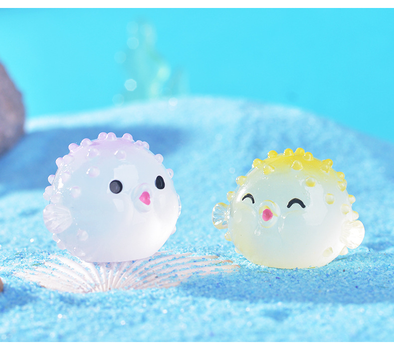 창조적 인 바다 장식품 빛나는 Puffer 마이크로 풍경 물고기 탱크 작은 장식품 만화 Puffer DIY 수지 장식품