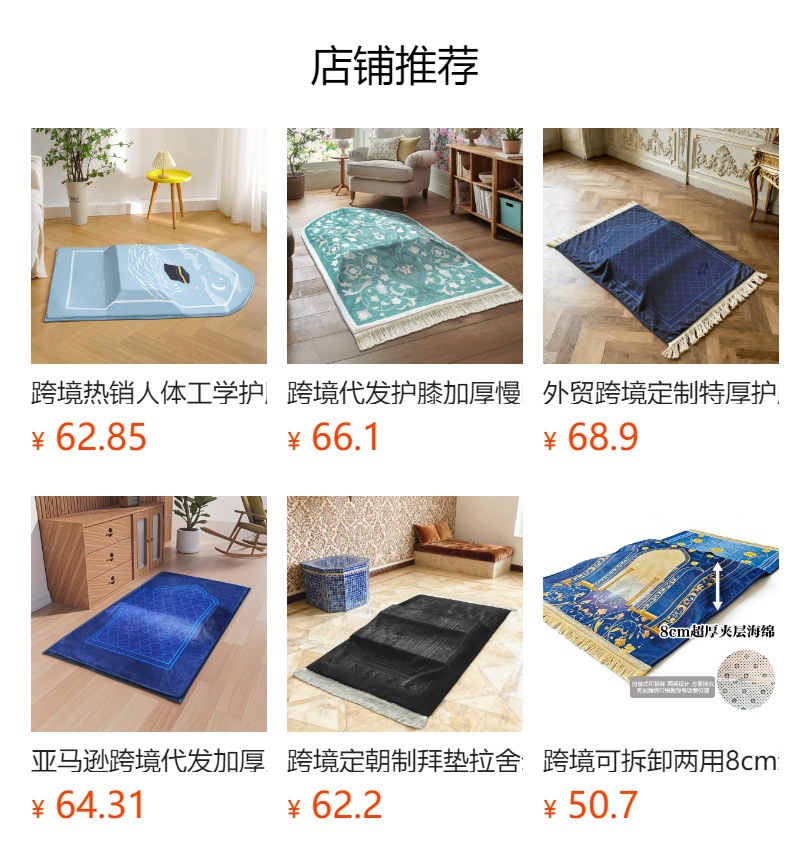 국경을 넘는 선물용 두꺼운 미끄럼 방지 바닥 매트, 특별한 모양의 크리스탈 벨벳 매트, 기도용 불규칙 두꺼운 카펫, 세탁 가능스토어 가기