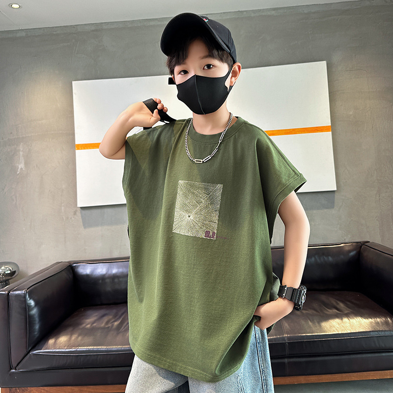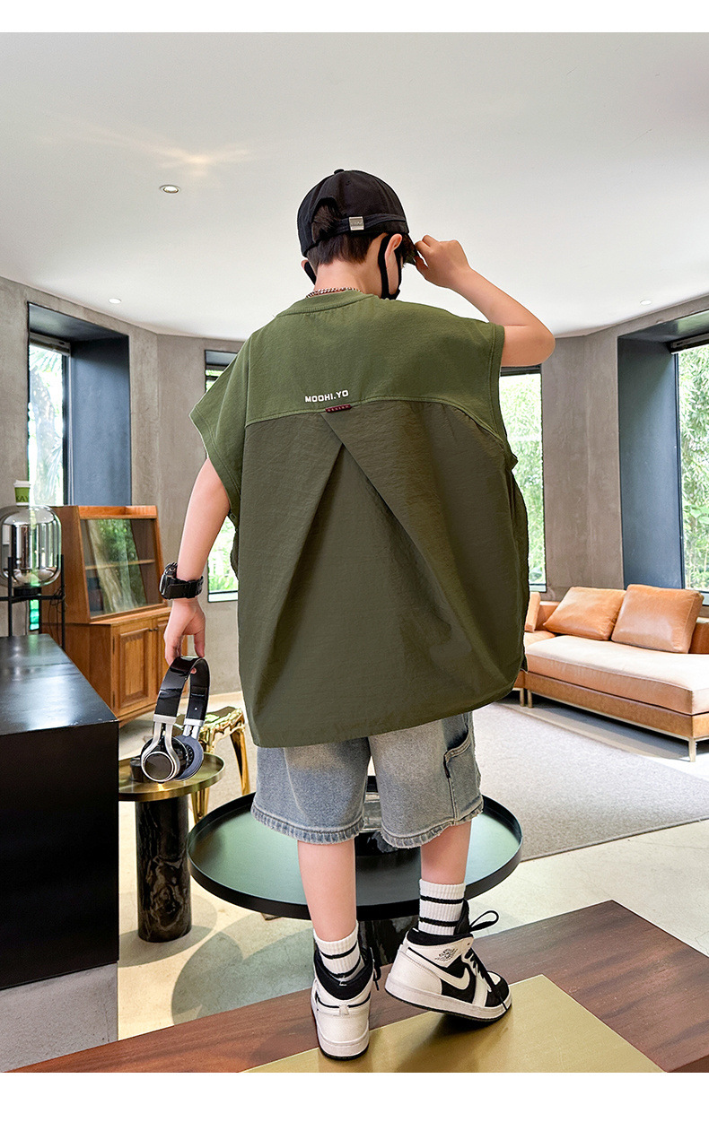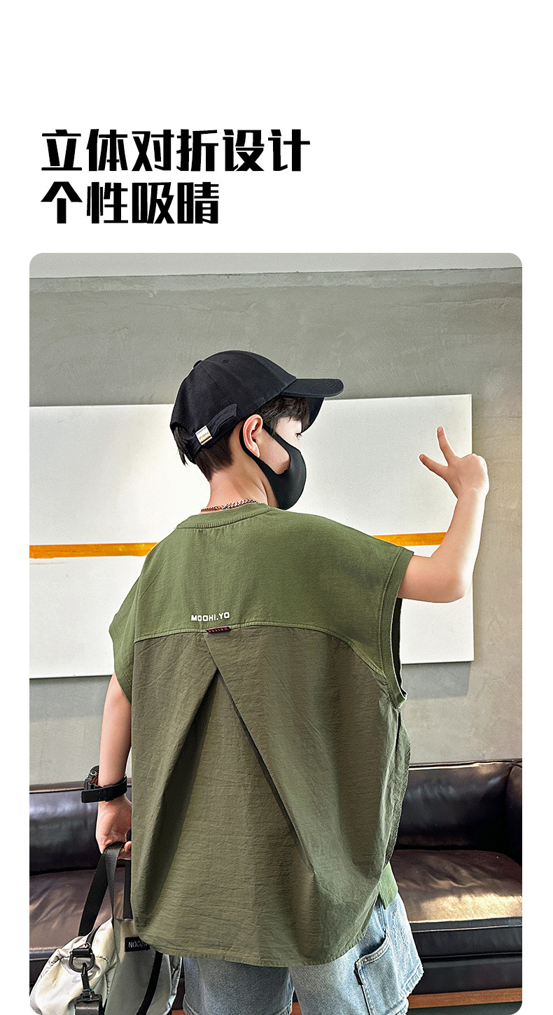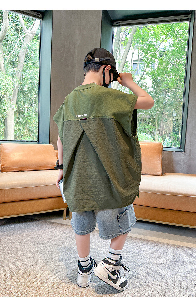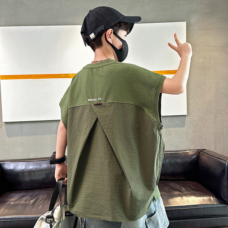 여름 새로운 도착 대형 소년 스티칭 조끼 아동복 신입 도착 소년의 단색 민소매 조끼 유행 올매치스토어 가기