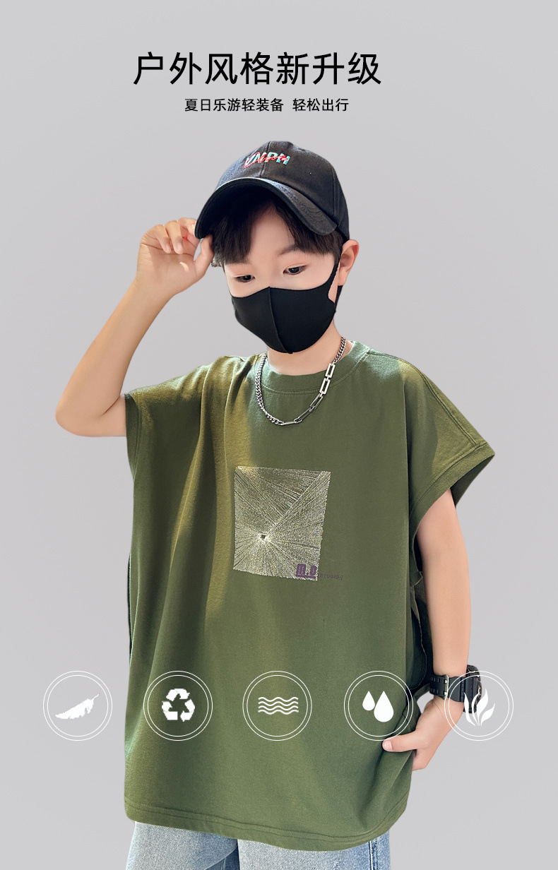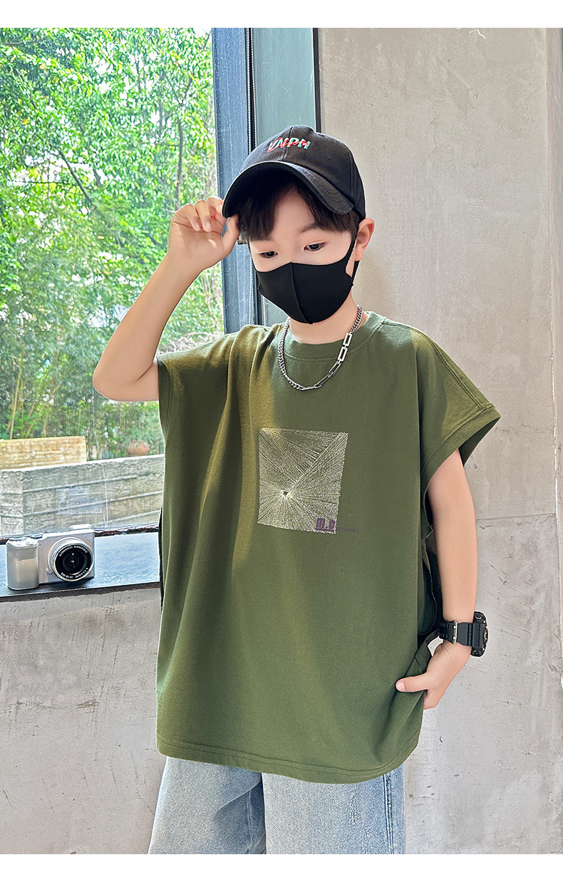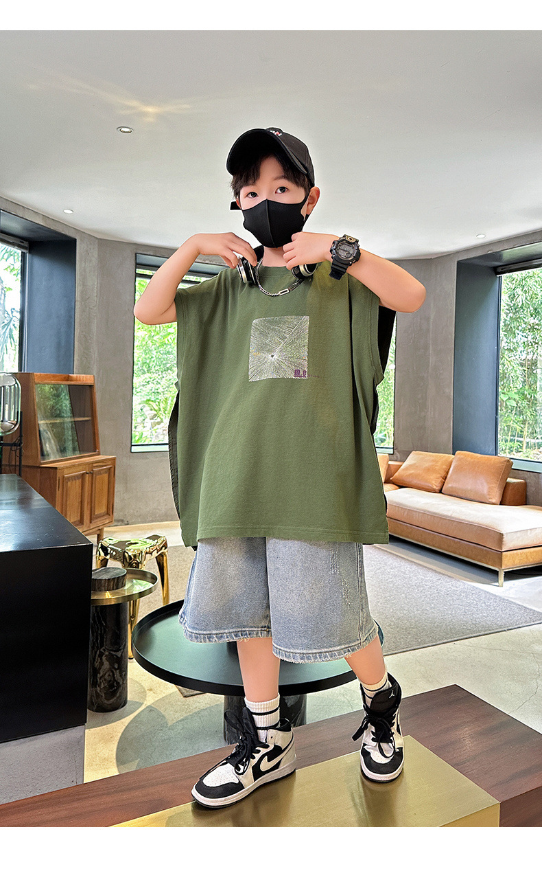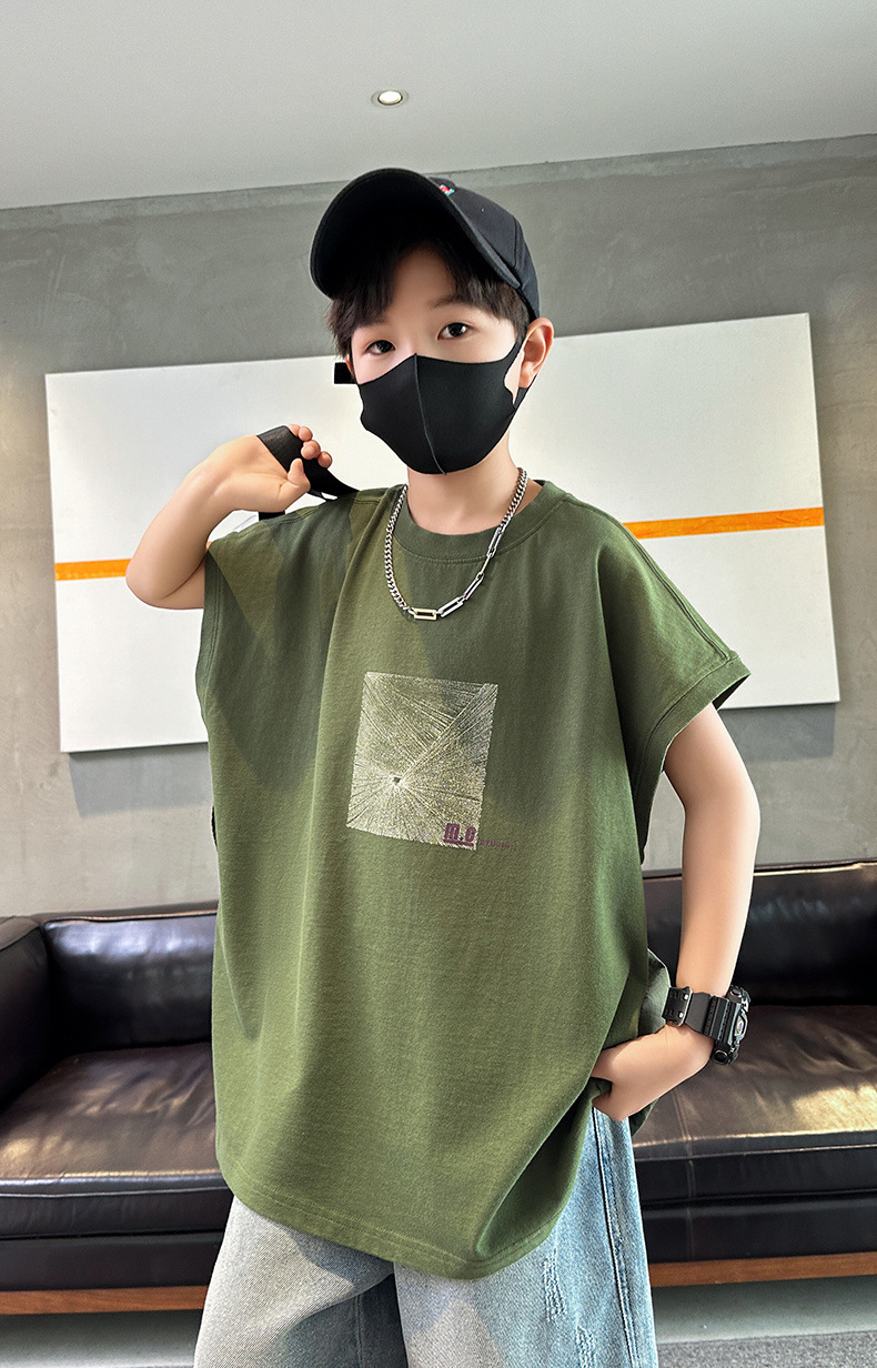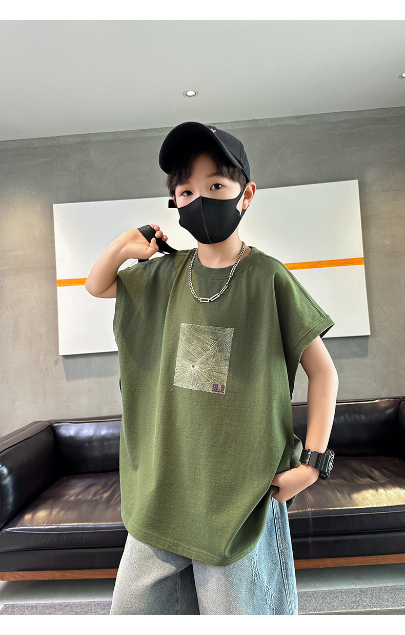 여름 새로운 도착 대형 소년 스티칭 조끼 아동복 신입 도착 소년의 단색 민소매 조끼 유행 올매치스토어 가기