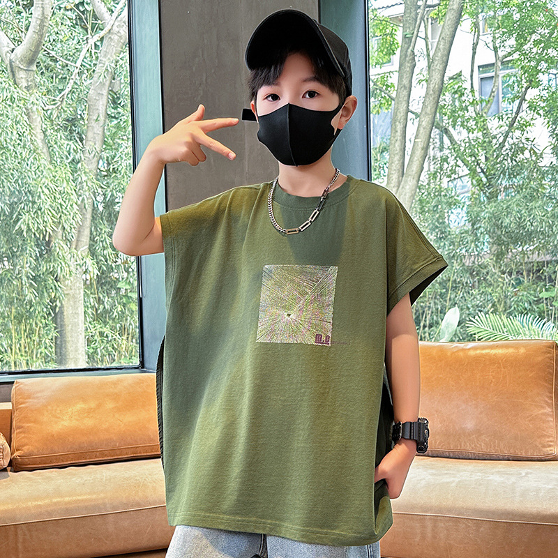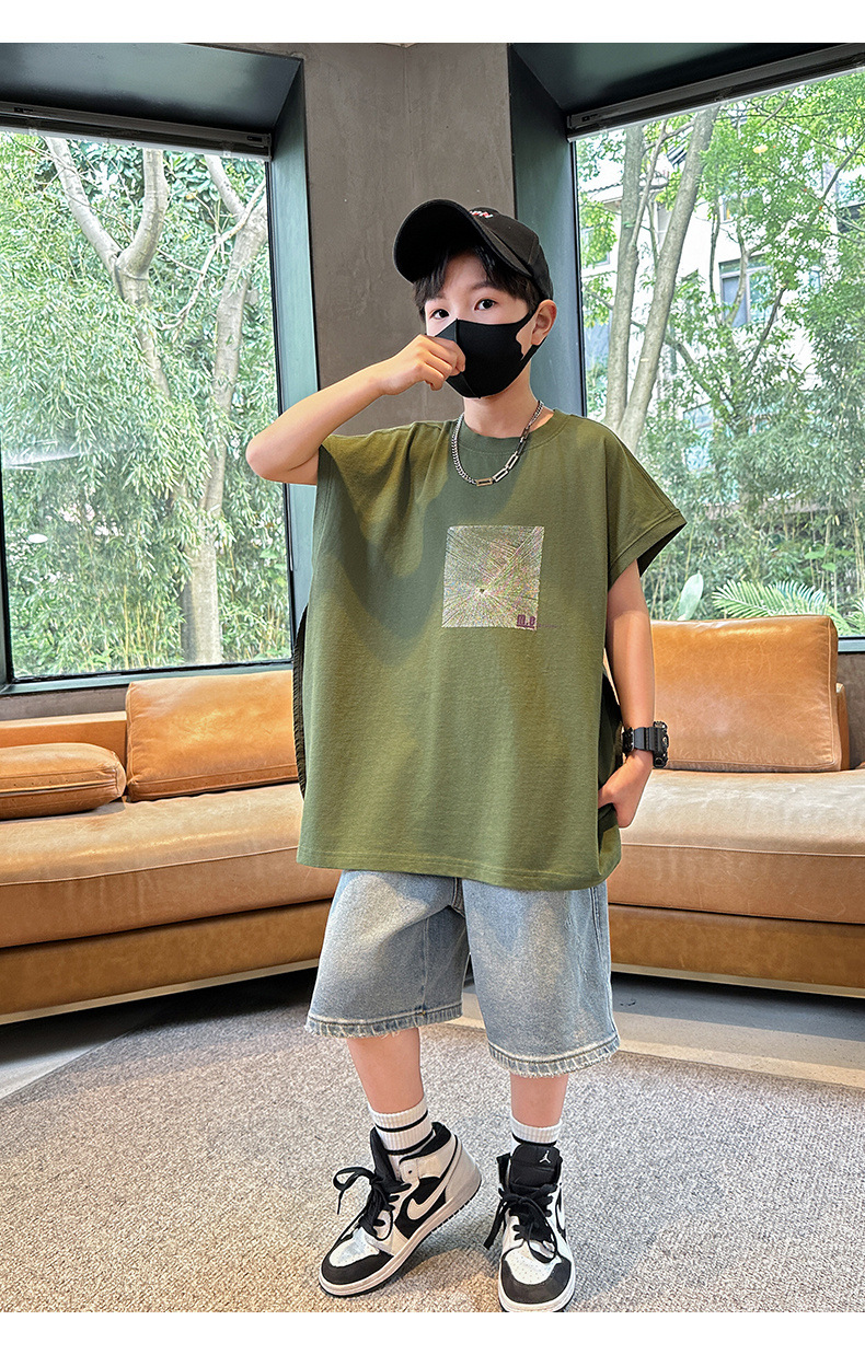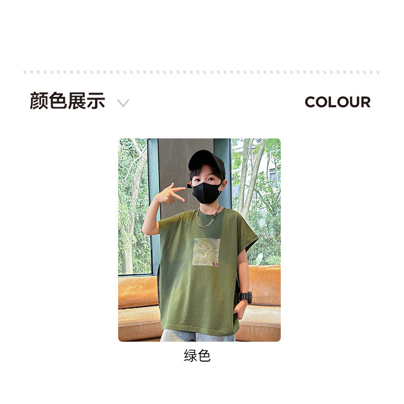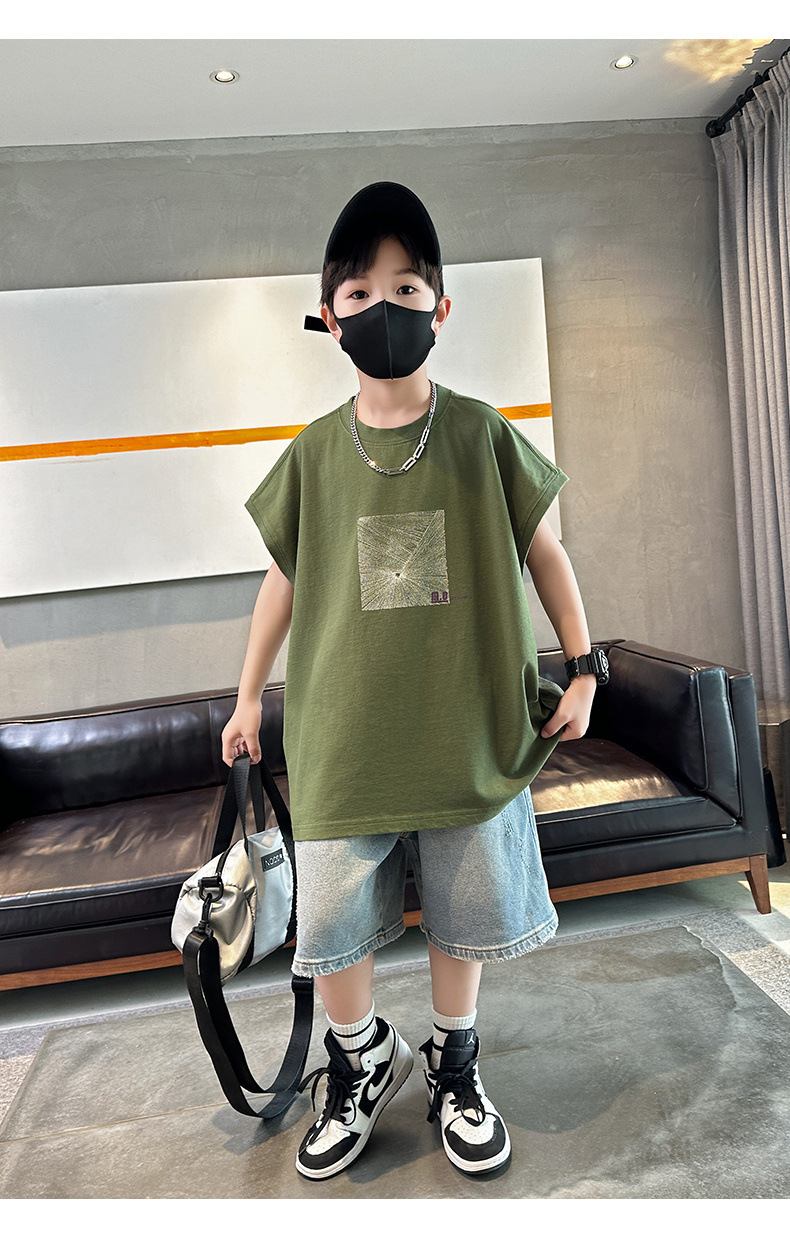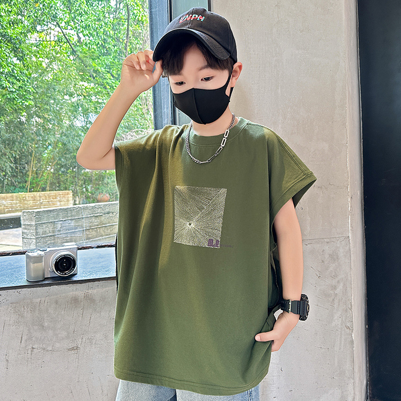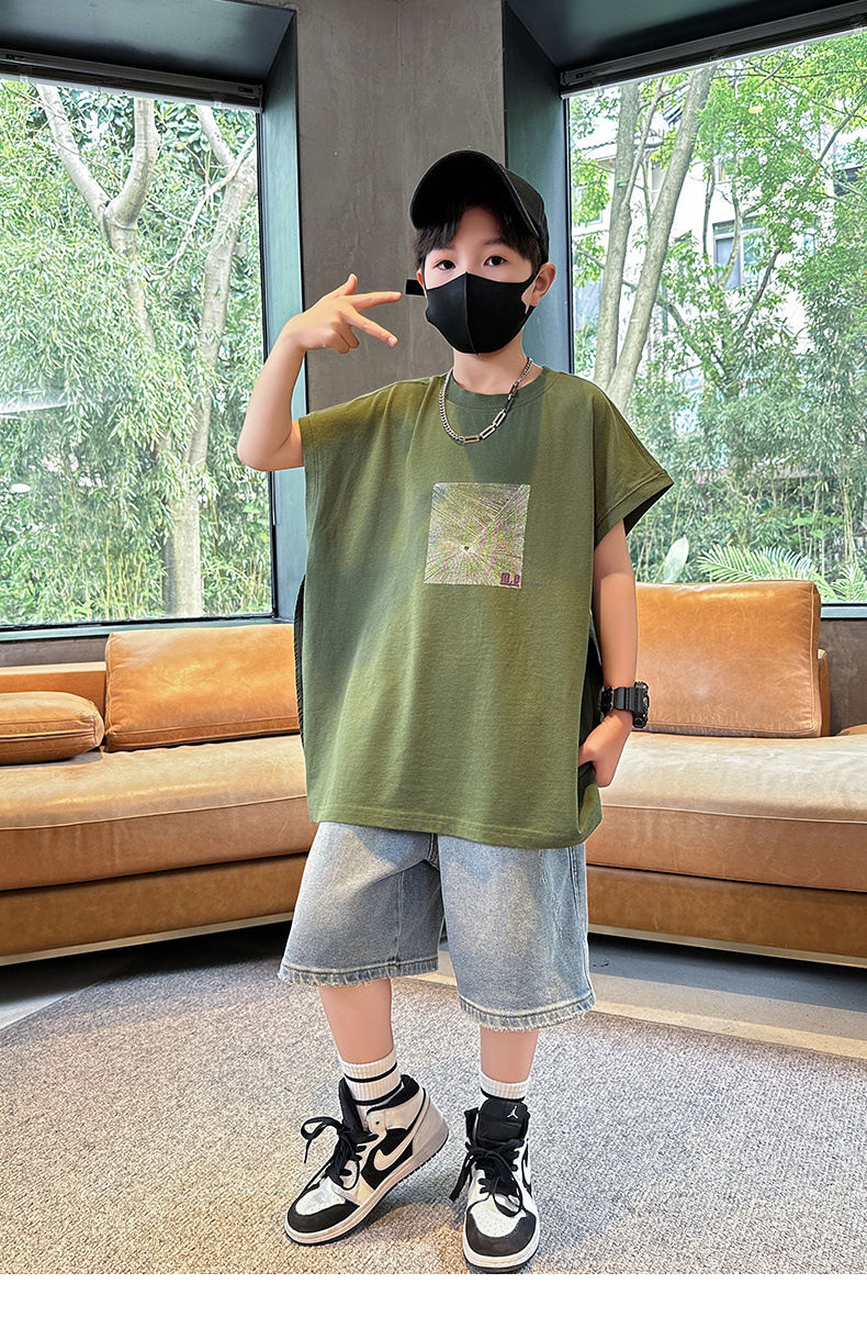 여름 새로운 도착 대형 소년 스티칭 조끼 아동복 신입 도착 소년의 단색 민소매 조끼 유행 올매치스토어 가기