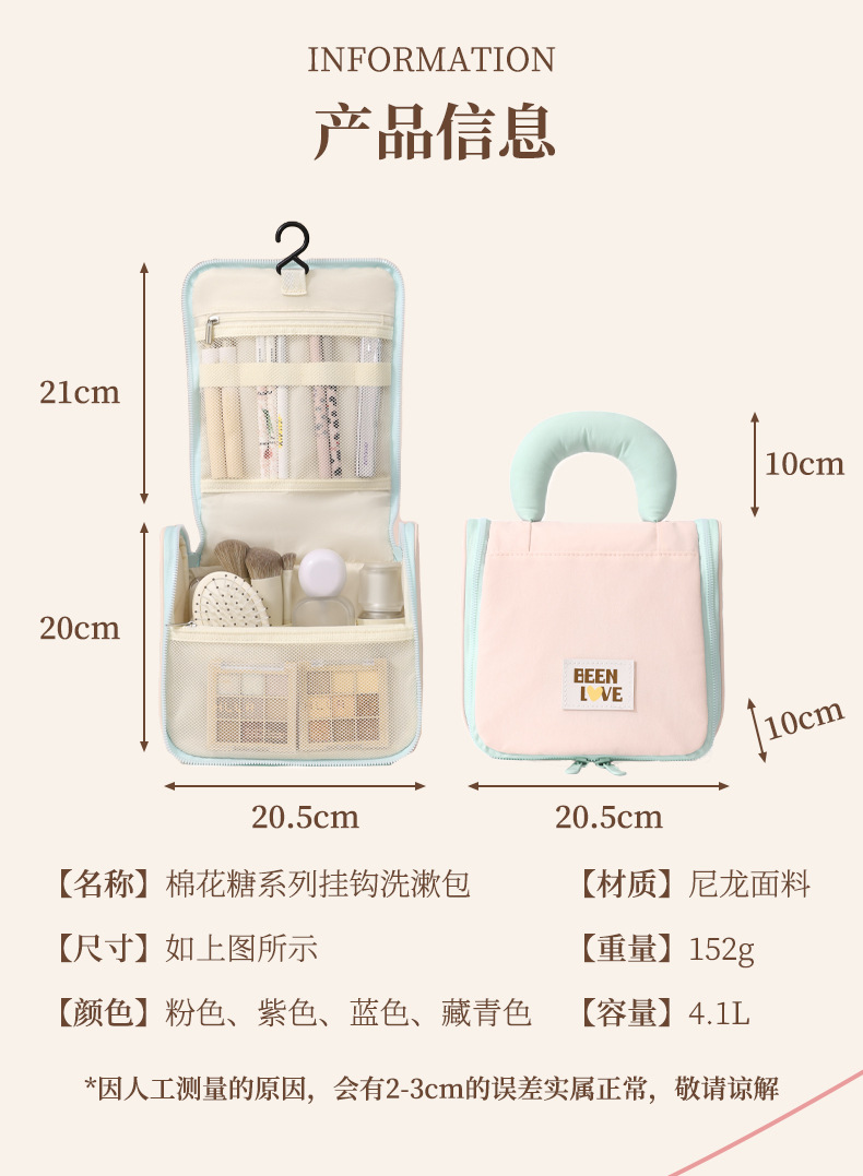 Runhui 마시멜로 후크 세면 용품 가방 출장 화장품 보관 가방 화장품 가방 대용량 드롭 배송