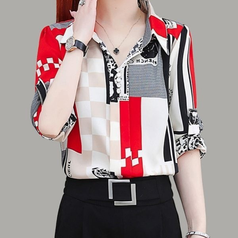 쉬폰 셔츠 여성용 2026년 신상 여름 패션 스타일리쉬 셔츠 중간 소매 탑 여성용 블라우스스토어 가기
