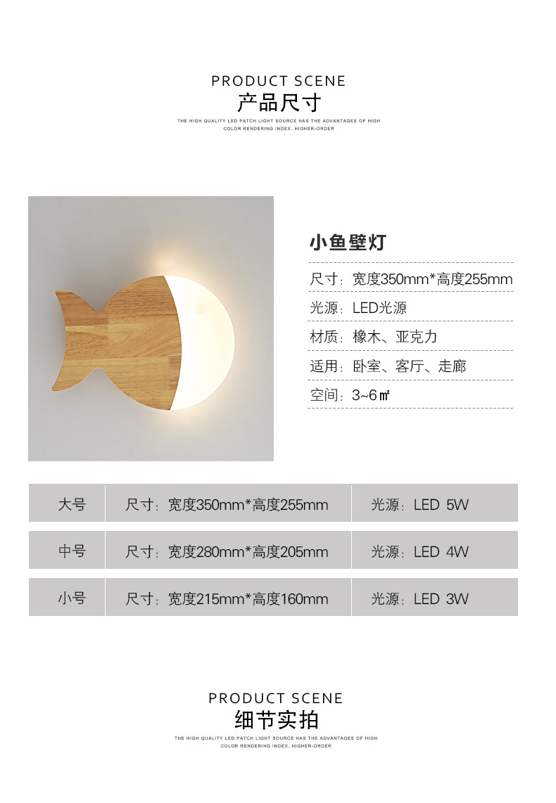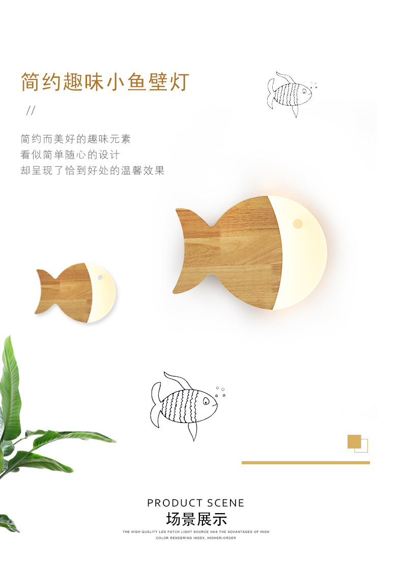 벽 램프 북유럽 로그 스타일 어린이 방 크리 에이 티브 작은 물고기 통로 벽 램프 2025 새로운 단단한 나무 일본 침실 램프스토어 가기