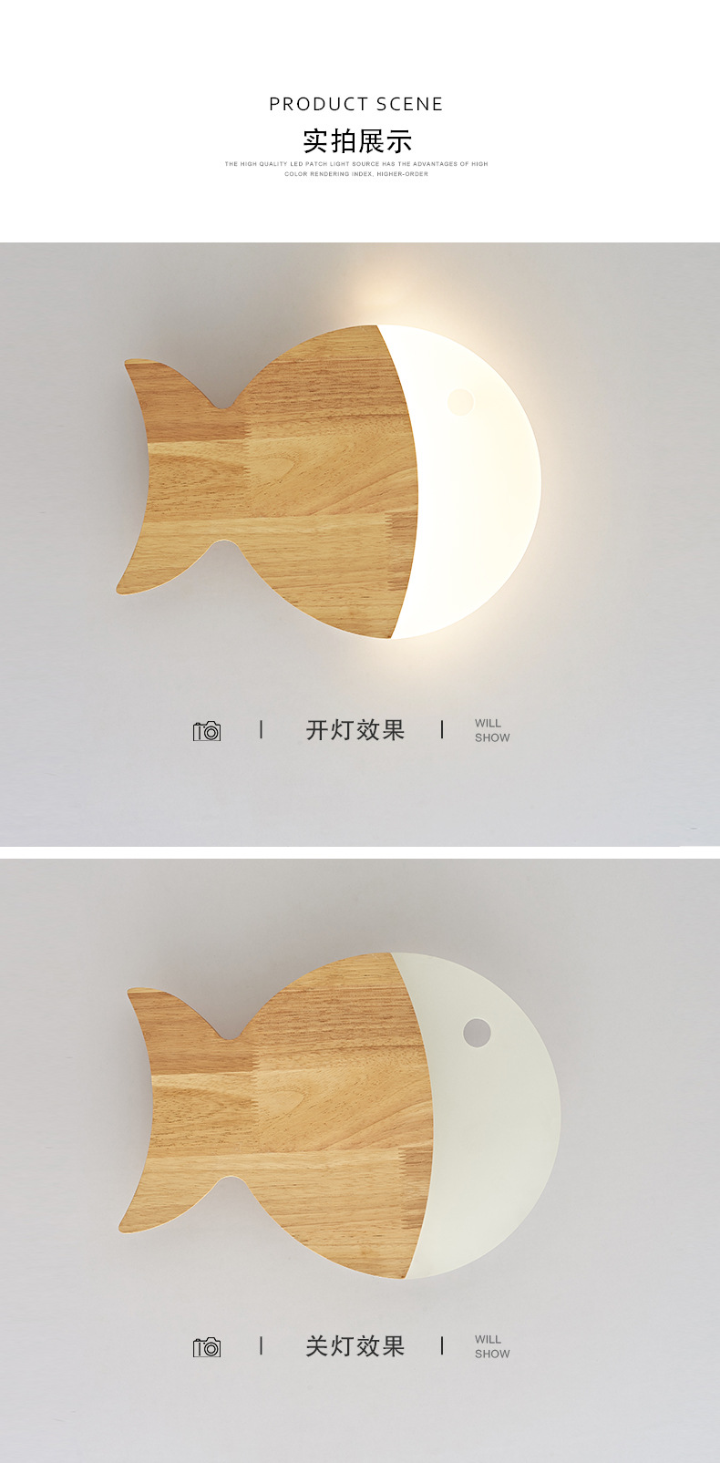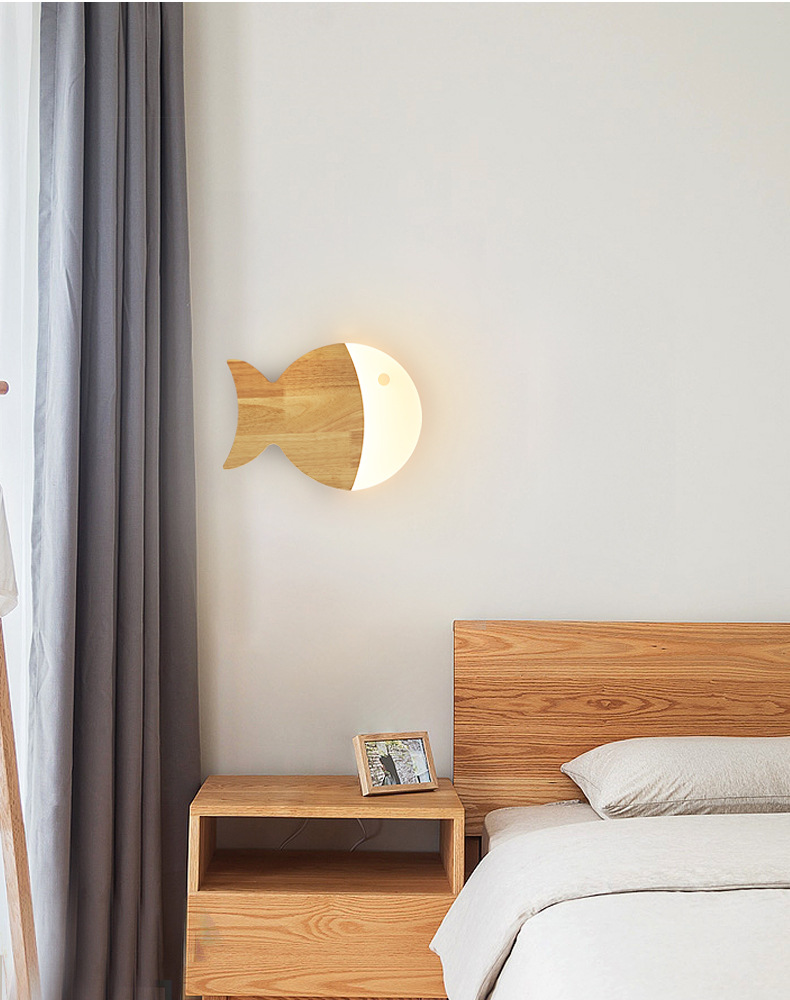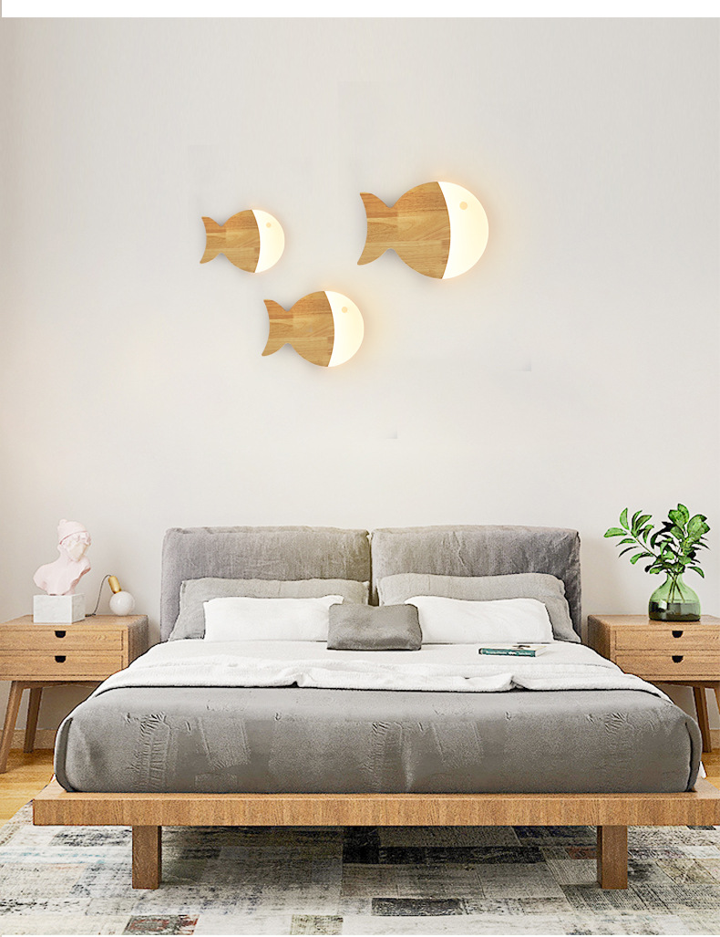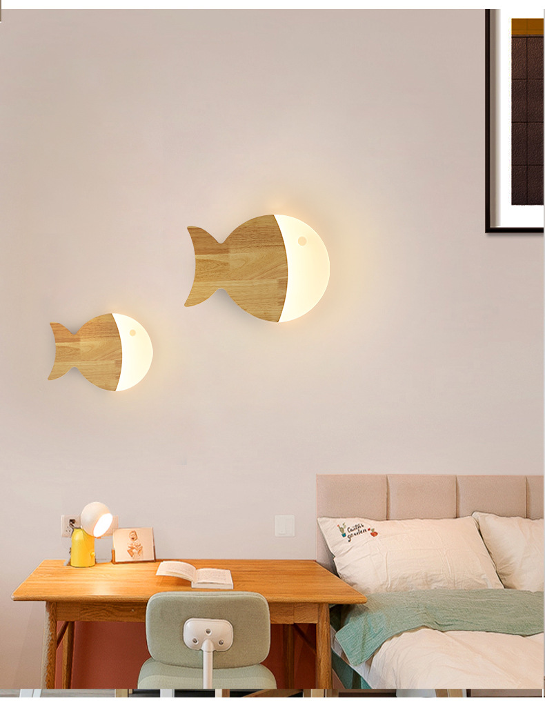 벽 램프 북유럽 로그 스타일 어린이 방 크리 에이 티브 작은 물고기 통로 벽 램프 2025 새로운 단단한 나무 일본 침실 램프