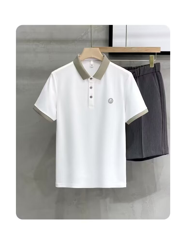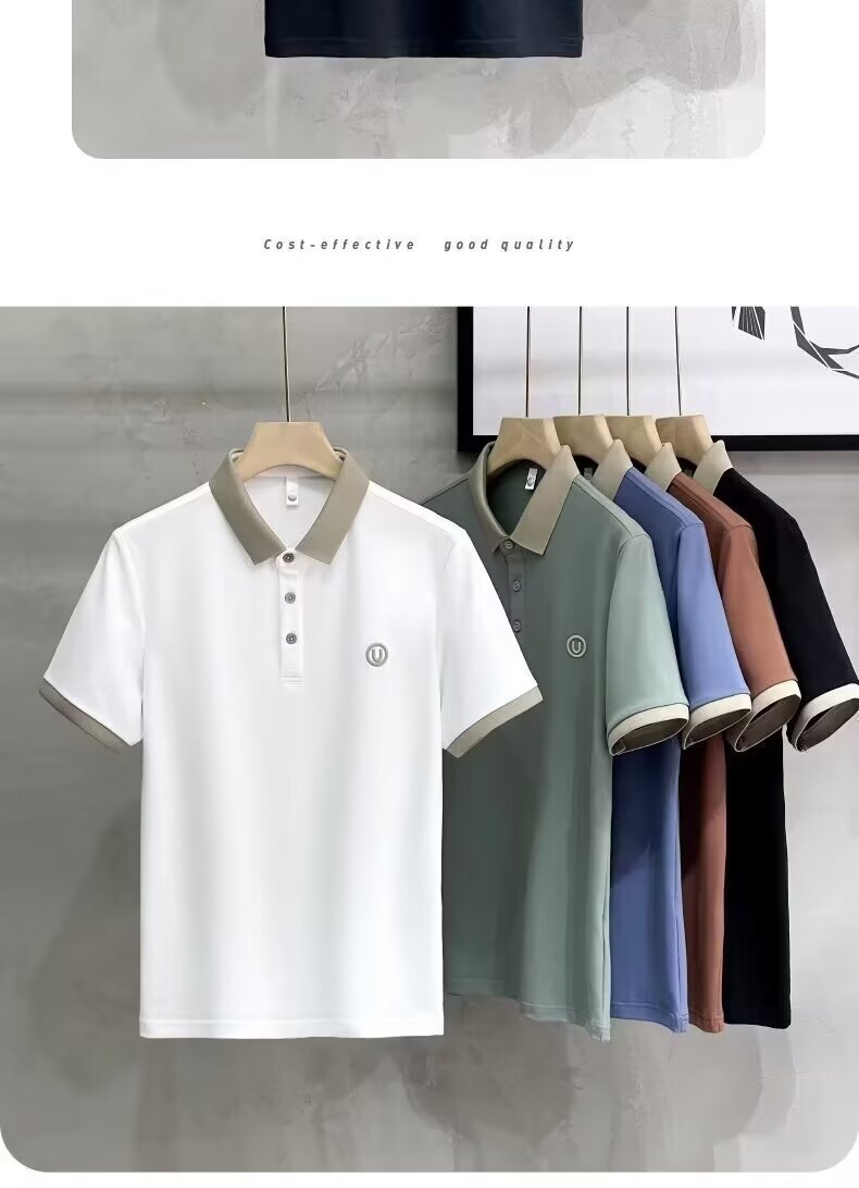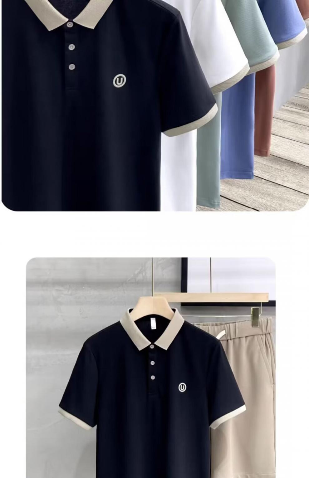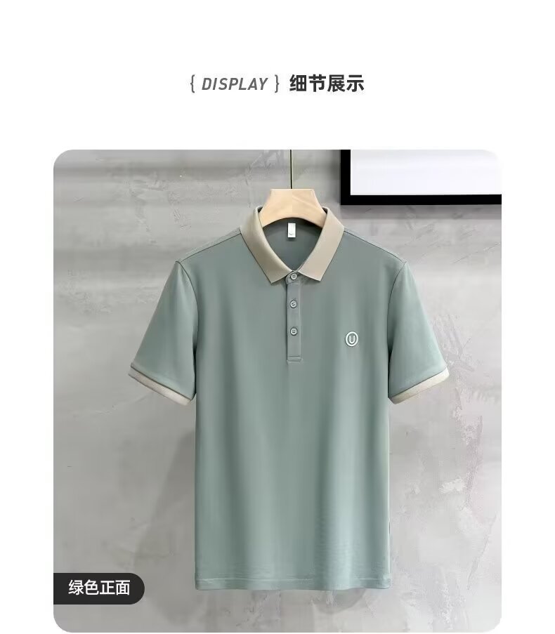 남성 여름 신작 반팔 폴로 셔츠 아이스 실크 대외 무역 폴 셔츠 골드 라인 대비 라펠 남성 반팔 티셔츠스토어 가기