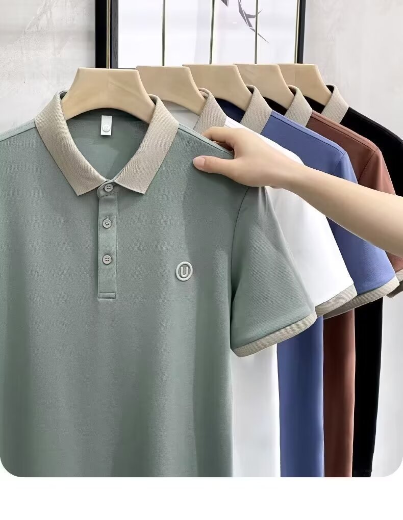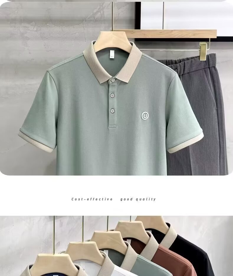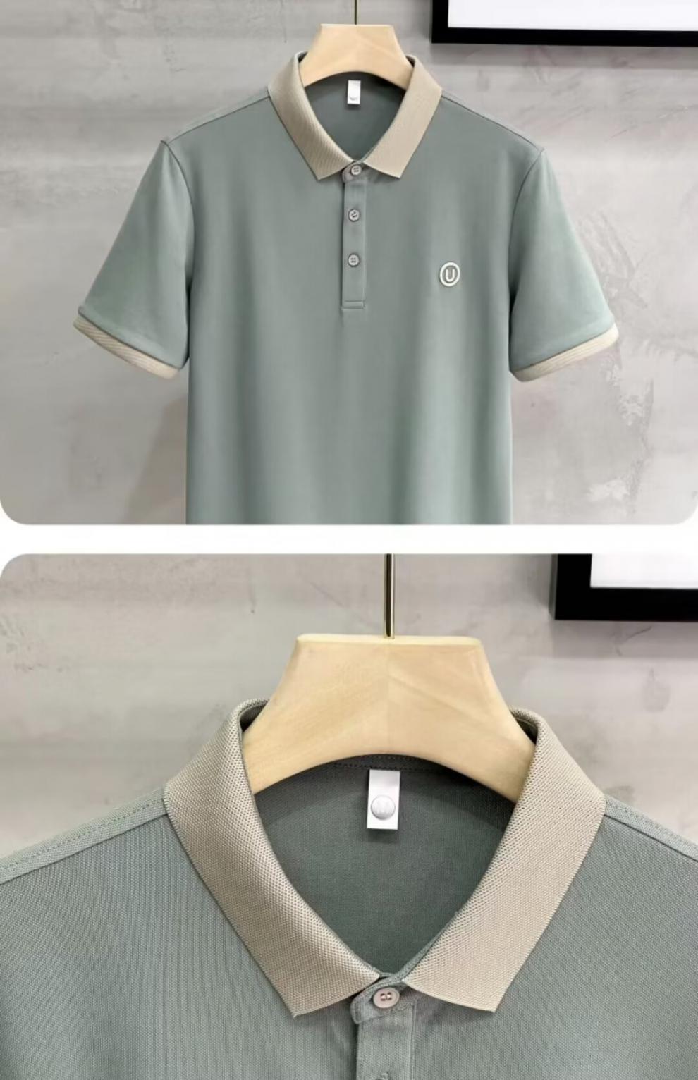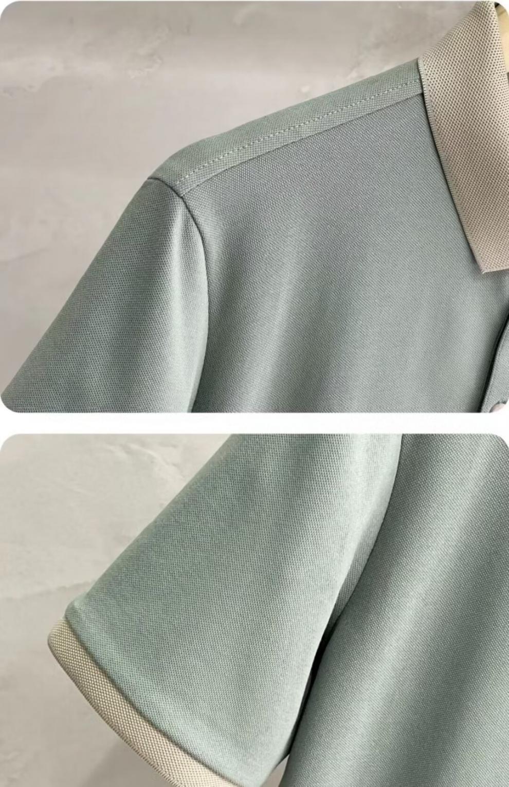 남성 여름 신작 반팔 폴로 셔츠 아이스 실크 대외 무역 폴 셔츠 골드 라인 대비 라펠 남성 반팔 티셔츠스토어 가기