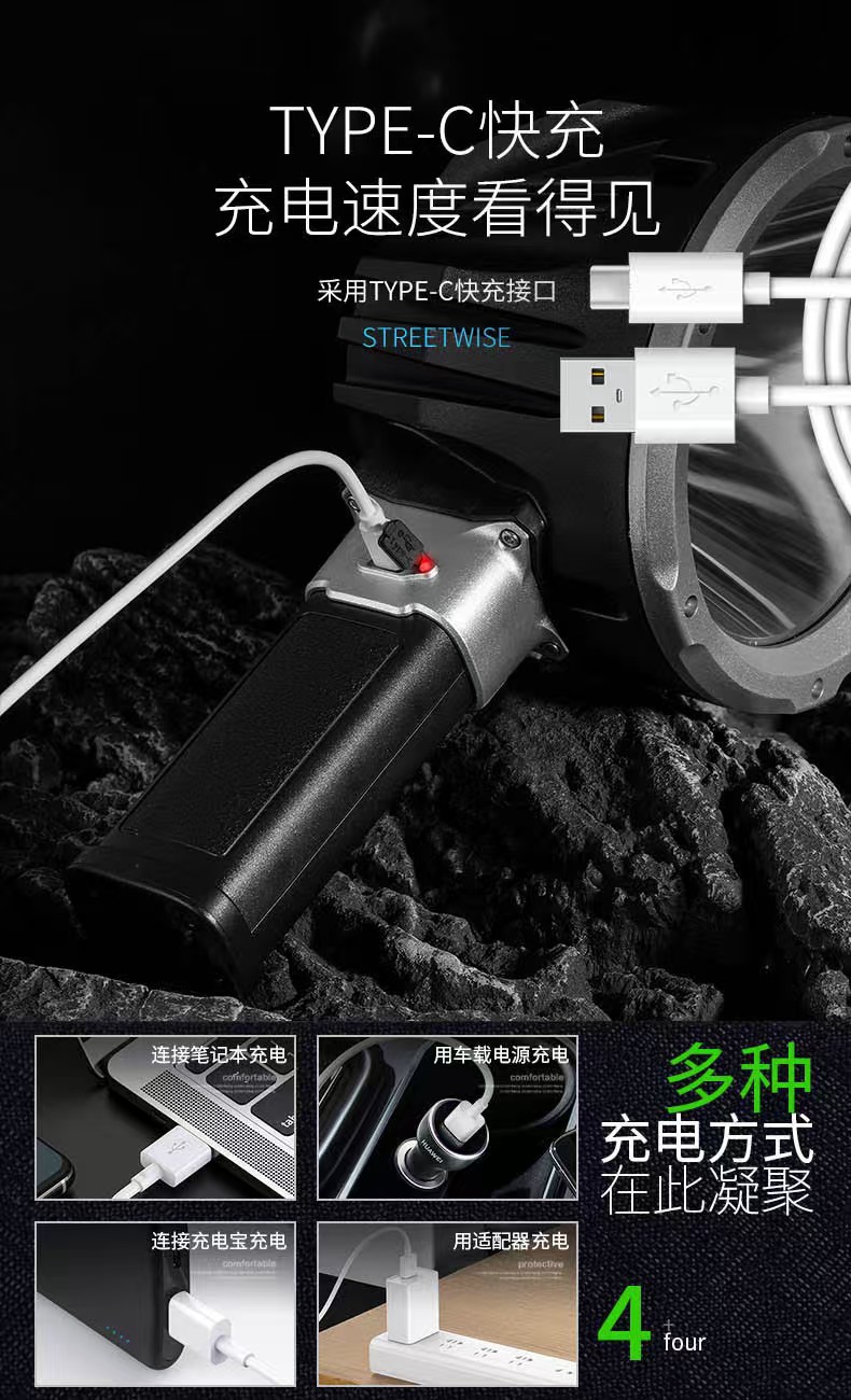 XHP70 강한 빛 손전등 긴 배터리 수명 고출력 대형 라이트 컵 장거리 서치 야외 충전식 작업 조명스토어 가기