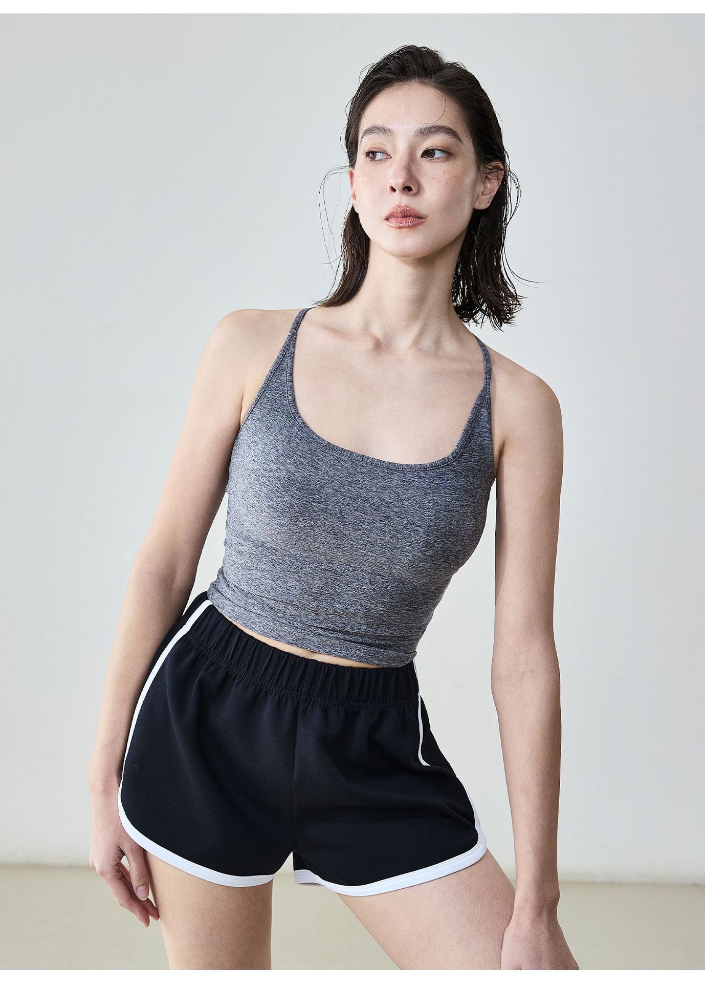 여름 알몸 스포츠 속옷 여성의 얇은 어깨 스트랩 스퀘어 칼라 요가 슬링 외부 착용 I-Back 야외 피트니스 조끼스토어 가기