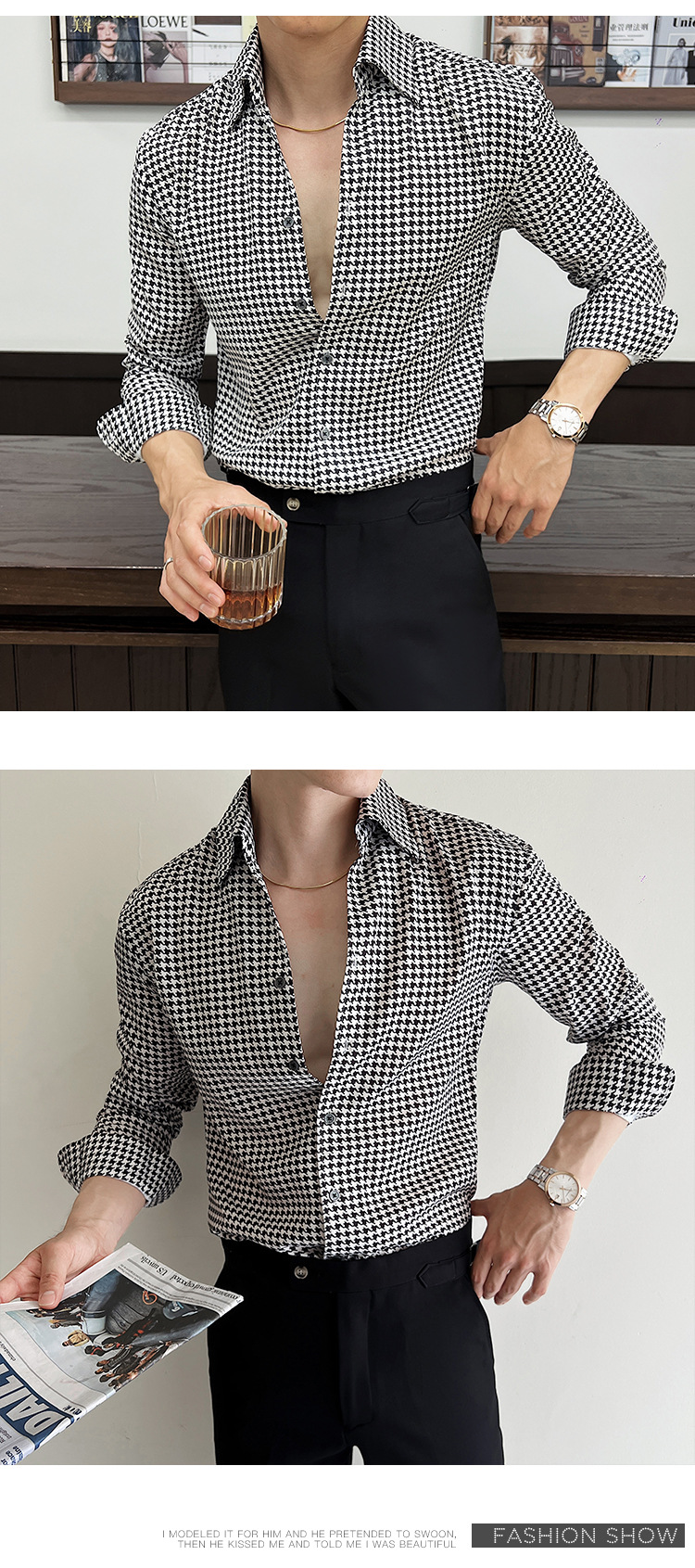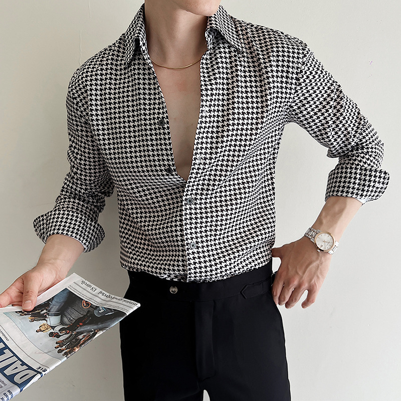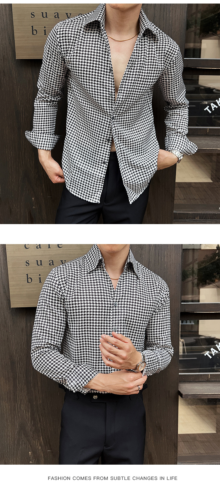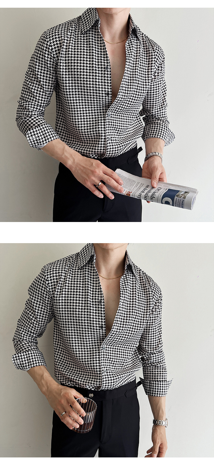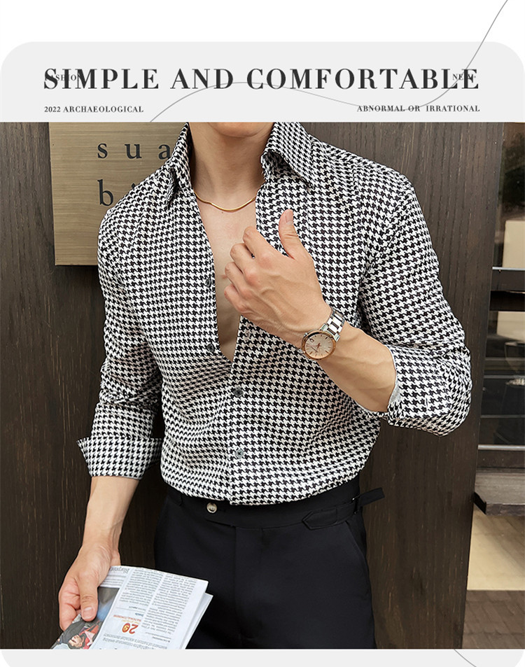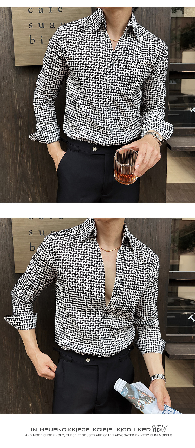 2025 봄/여름 신상 남성 하운드투스 셔츠 핏 좋은 스타일, 성숙한 데일리룩, 긴팔 셔츠 도매 유행