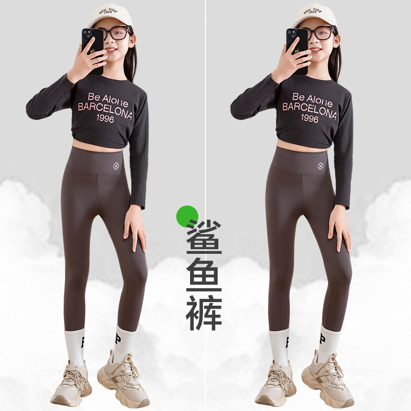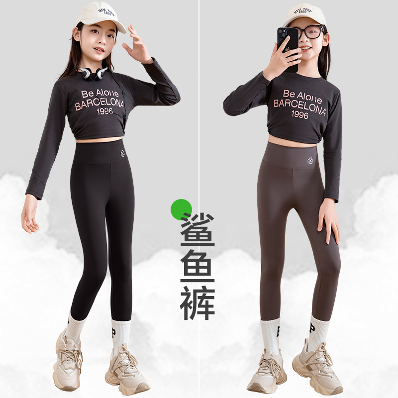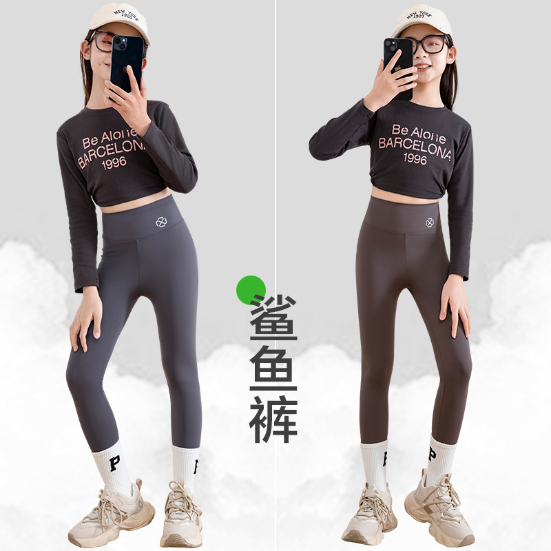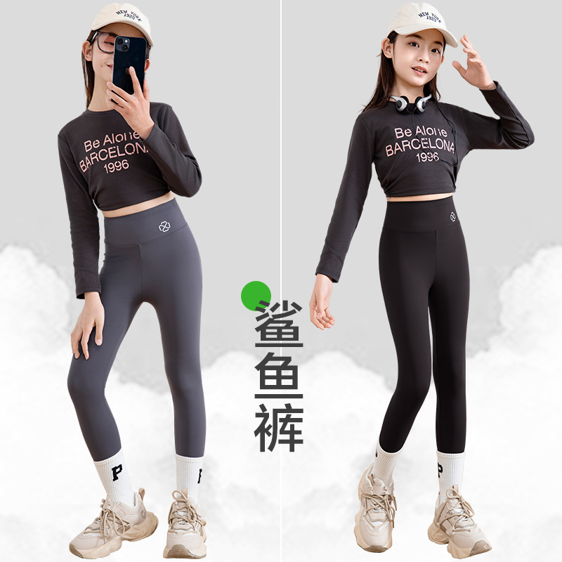 여아 레깅스 봄가을용 하이웨이스트 신축성 아동용 중대형 어린이 스포츠 요가 바비팬츠 샤크팬츠 얇은