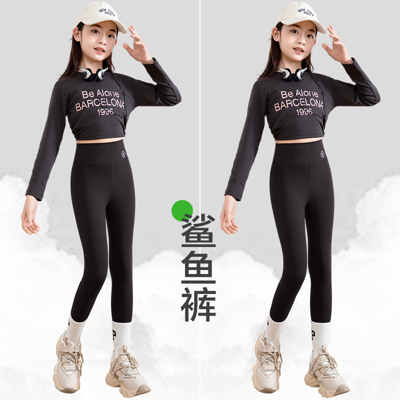 순면 여아 레깅스, 봄, 가을 아우터, 하이웨이스트 신축성, 중대형 아동 스포츠 바지, 요가 바비 팬츠, 얇은스토어 가기