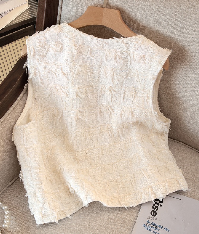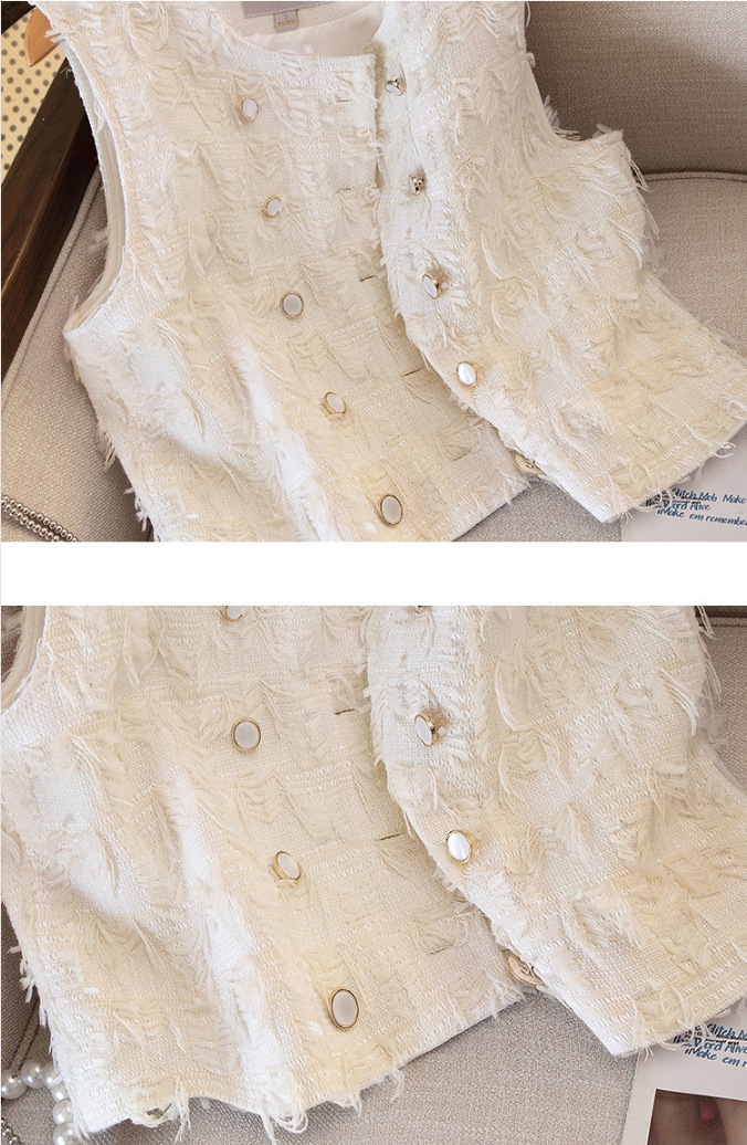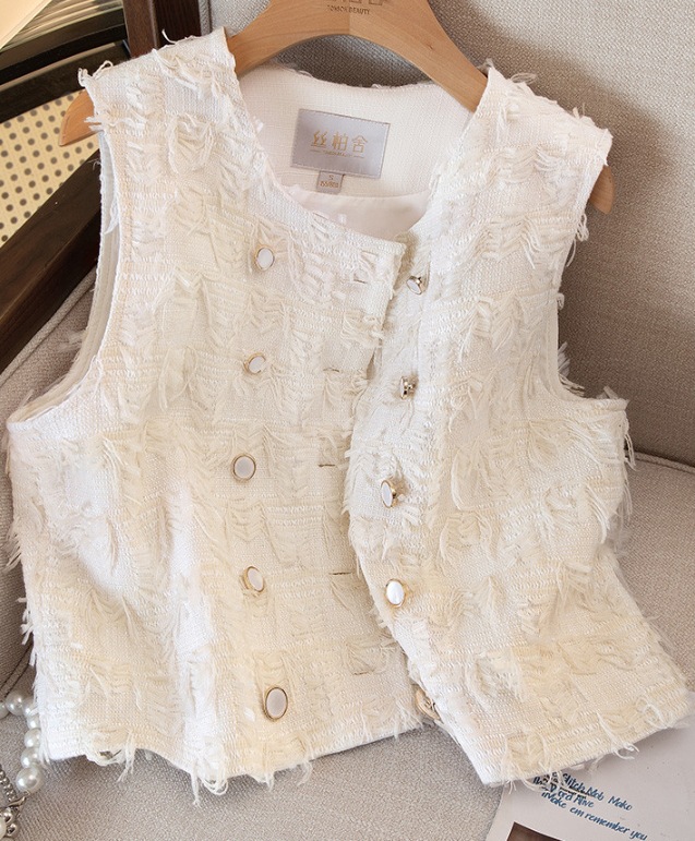 2025 봄과 가을 우아한 레이디 작은 향기 스타일 흰색 조끼 여성 디자인 민소매 조끼 조끼 패션 짧은 스타일