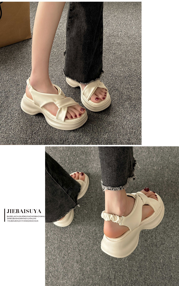 샌들 여성 여름 2025 새로운 두꺼운 밑창 캐주얼 비치 슈즈 하이 엔드 프랑스 스타일 스커트 로마 슈즈스토어 가기