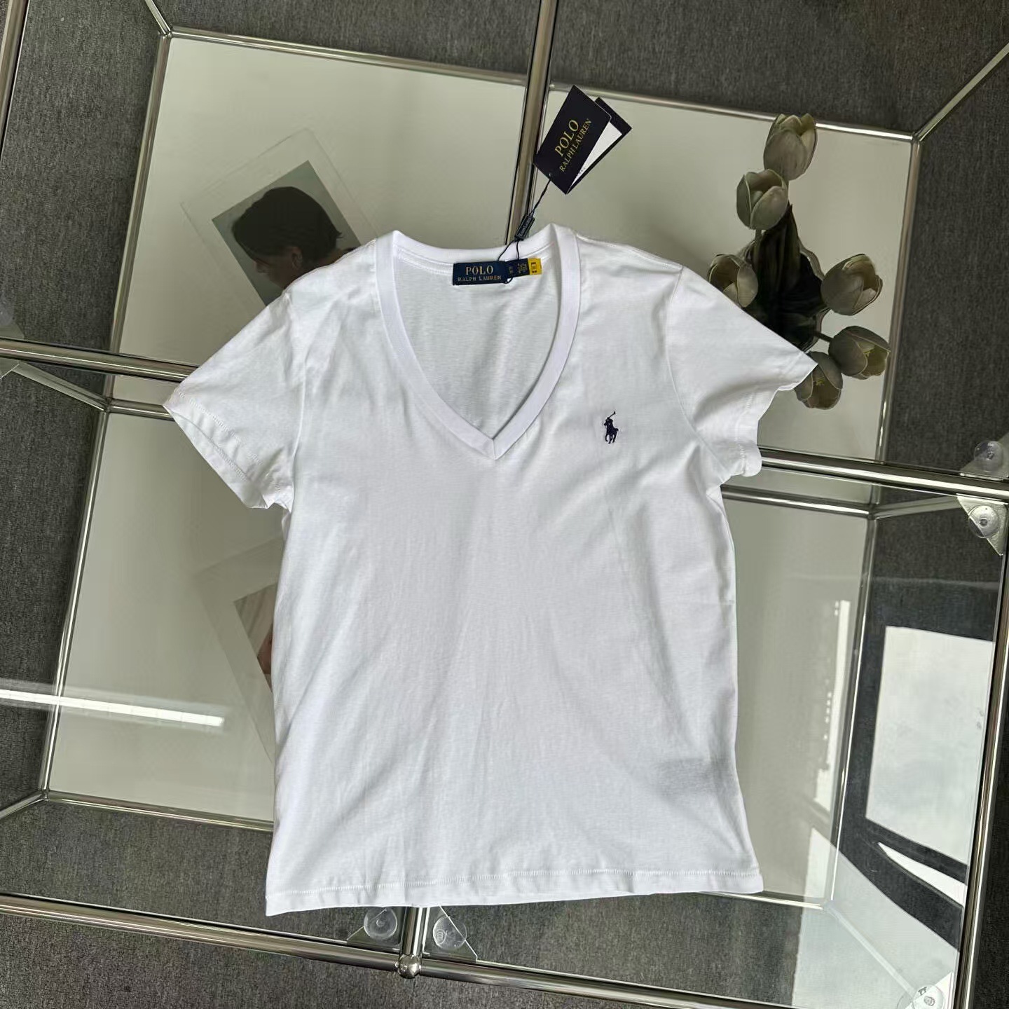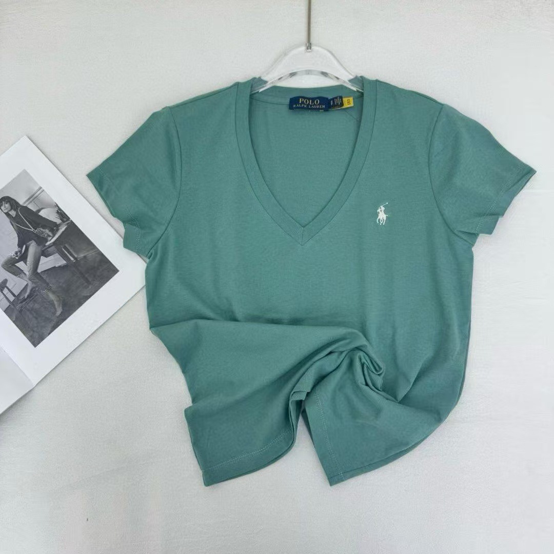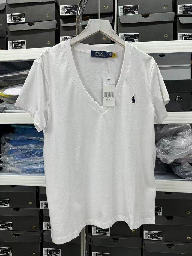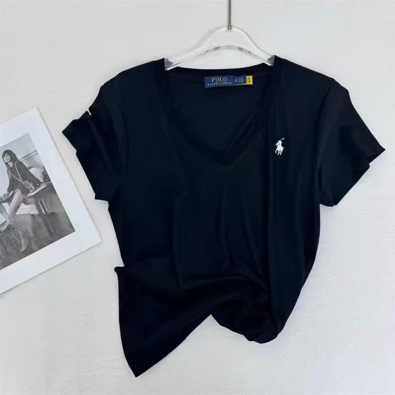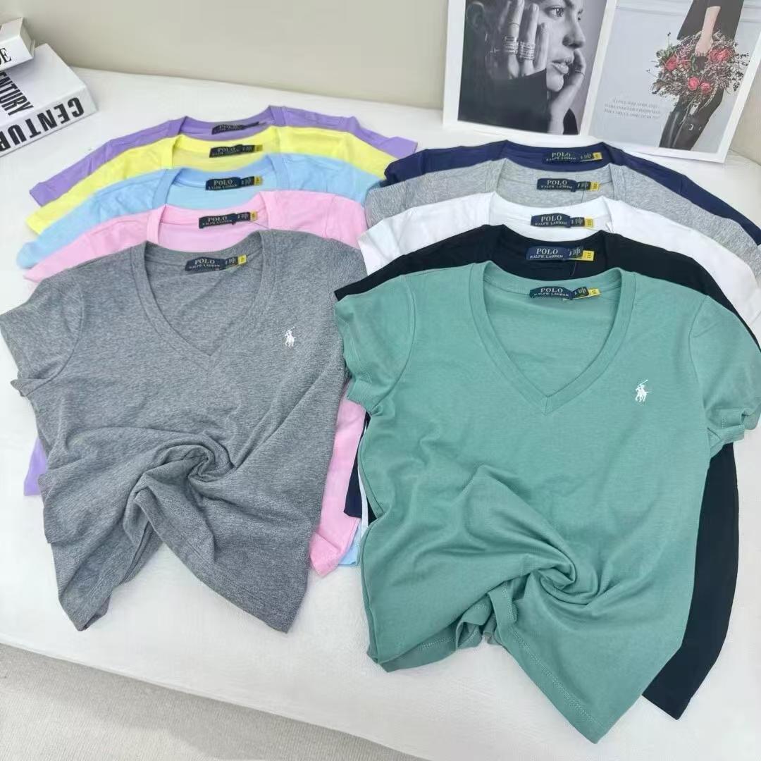 스윕 사이즈 RL 러프 오리지널 대외 무역 여자 여름 올 매치 얇은 코튼 자수 포니 V 넥 반팔 티셔츠